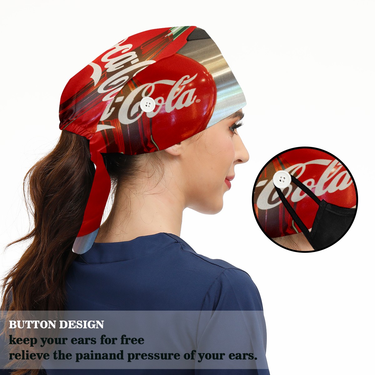 <p>Women and Mens head cover with Sweatband and Button</p><p>Material&nbsp;: 50% cotton+50% polyester</p><p>Size:&nbsp;One size fits most,&nbsp;suitable for both men and women.</p><p>Working Cap with Buttons Design:special&nbsp;design with buttons to protect ears for those who are wearing ma-sk. These new styles hats will allow you to put the straps around the buttons instead of your ears, make you feel more comfortable.</p><p>Sweat-absorbent towel cloth inside: Built-in&nbsp;100% cotton sweatband, keep the forehead clean after long time working.</p><p>Widely occasion: Widely used in beauty spa, house cleaning, cooking, sleeping, or for cos-play&nbsp;party.</p><p>Lovely pattern: lovely&nbsp;3D printed&nbsp;pattern,&nbsp;it's perfect for gift to you family&nbsp;and friends.</p>