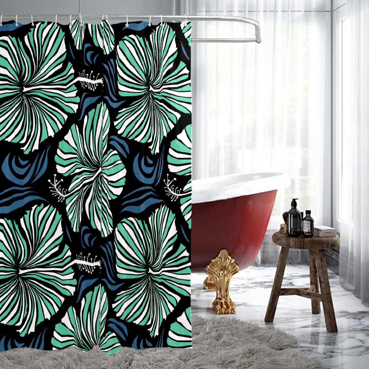 Shower Curtains for Bathroom Vintage Tropical Flowers Hibiscus Leaves Waterproof Polyester Fabric 60 x 72 inches Decor Bathroom Curtains for Girls Boys with 12 Hooks