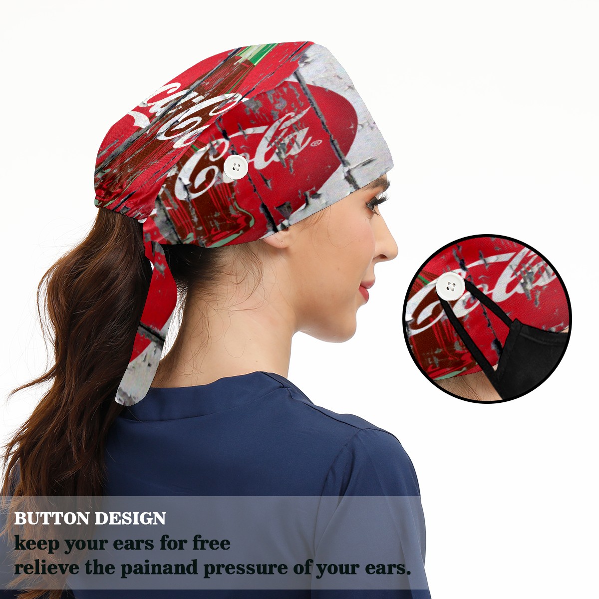<p>Women and Mens head cover with Sweatband and Button</p><p>Material&nbsp;: 50% cotton+50% polyester</p><p>Size:&nbsp;One size fits most,&nbsp;suitable for both men and women.</p><p>Working Cap with Buttons Design:special&nbsp;design with buttons to protect ears for those who are wearing ma-sk. These new styles hats will allow you to put the straps around the buttons instead of your ears, make you feel more comfortable.</p><p>Sweat-absorbent towel cloth inside: Built-in&nbsp;100% cotton sweatband, keep the forehead clean after long time working.</p><p>Widely occasion: Widely used in beauty spa, house cleaning, cooking, sleeping, or for cos-play&nbsp;party.</p><p>Lovely pattern: lovely&nbsp;3D printed&nbsp;pattern,&nbsp;it's perfect for gift to you family&nbsp;and friends.</p>