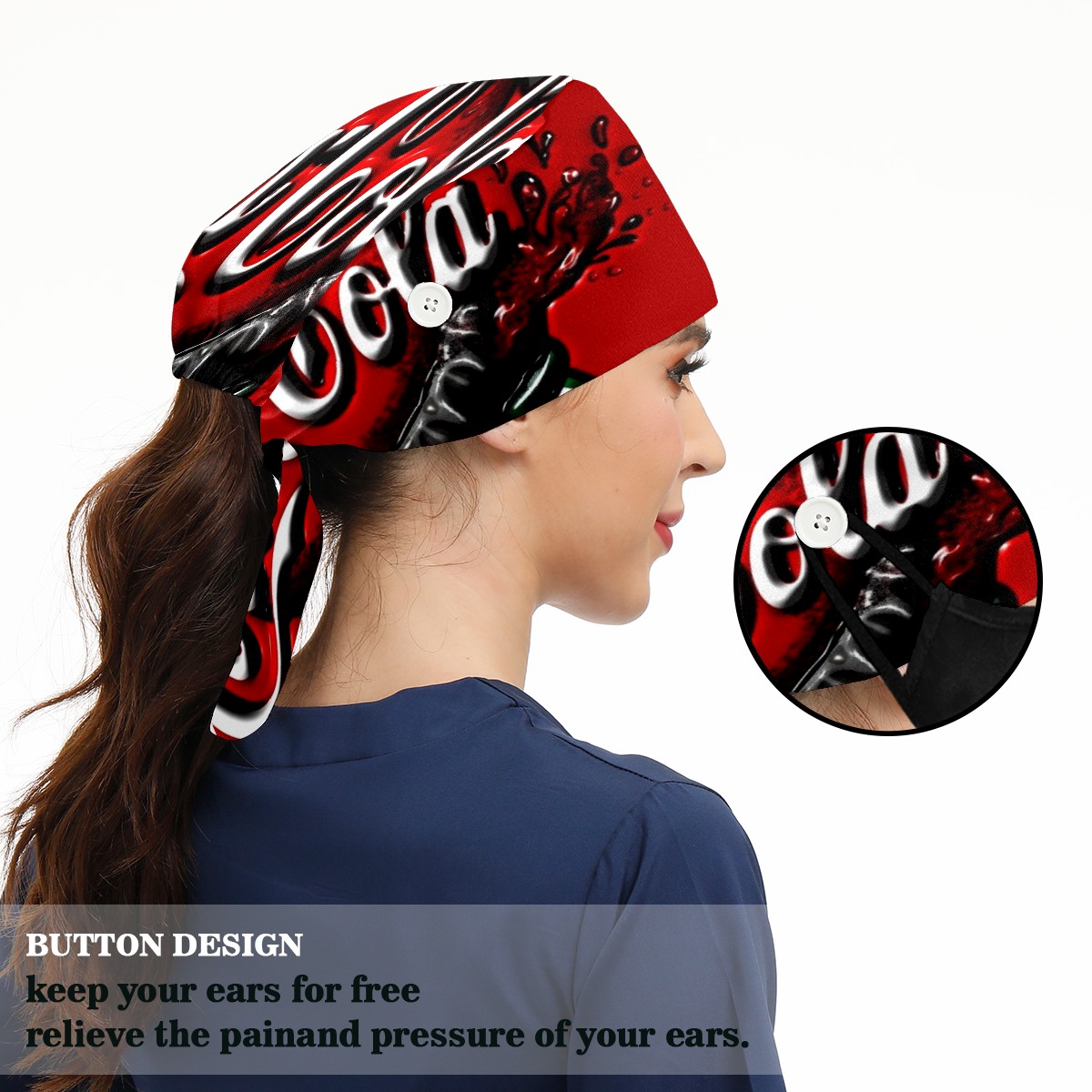 • <p>Women and Mens head cover with Sweatband and Button</p><p>Material&nbsp;: 50% cotton+50% polyester</p><p>Size:&nbsp;One size fits most,&nbsp;suitable for both men and women.</p><p>Working Cap with Buttons Design:special&nbsp;design with buttons to protect ears for those who are wearing ma-sk. These new styles hats will allow you to put the straps around the buttons instead of your ears, make you feel more comfortable.</p><p>Sweat-absorbent towel cloth inside: Built-in&nbsp;100% cotton sweatband, keep the forehead clean after long time working.</p><p>Widely occasion: Widely used in beauty spa, house cleaning, cooking, sleeping, or for cos-play&nbsp;party.</p><p>Lovely pattern: lovely&nbsp;3D printed&nbsp;pattern,&nbsp;it's perfect for gift to you family&nbsp;and friends.</p>