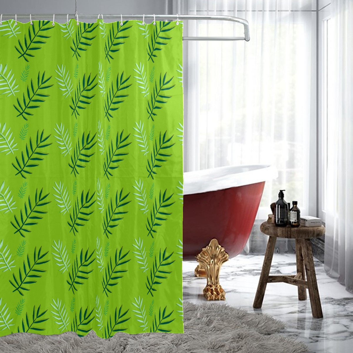 Shower Curtains for Bathroom Tropical Plant Green Leaves Pattern Waterproof Polyester Fabric 60 x 72 inches Decor Bathroom Curtains for Girls Boys with 12 Hooks