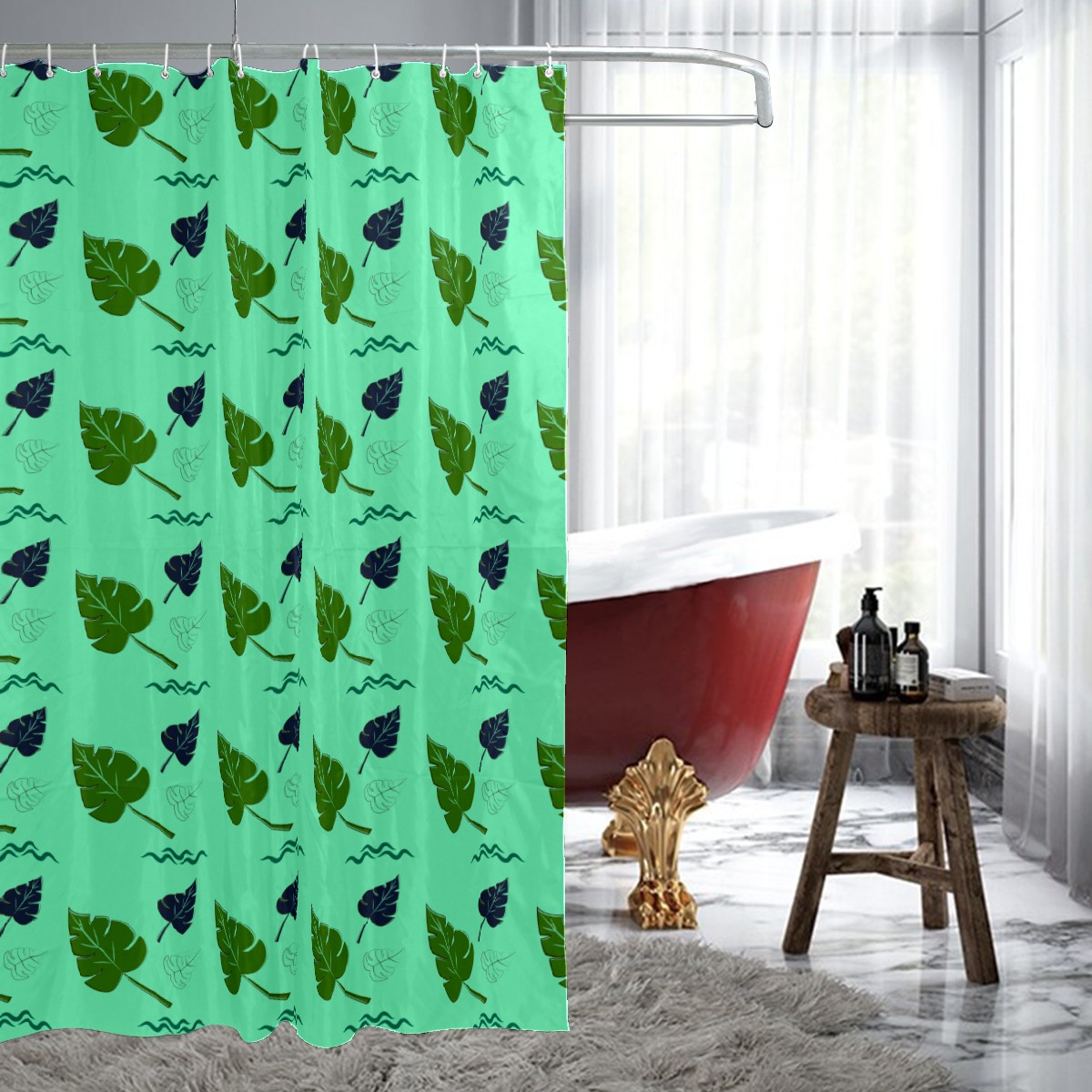 Shower Curtains for Bathroom Tropical Plant Green Leaves Exotic Waterproof Polyester Fabric 60 x 72 inches Decor Bathroom Curtains for Girls Boys with 12 Hooks