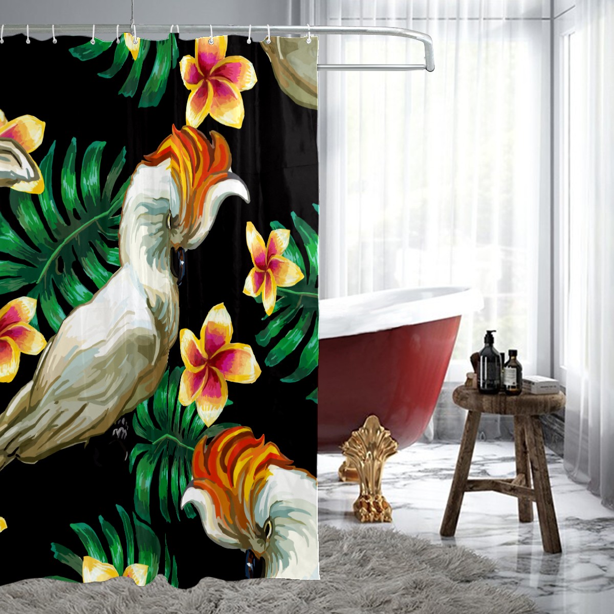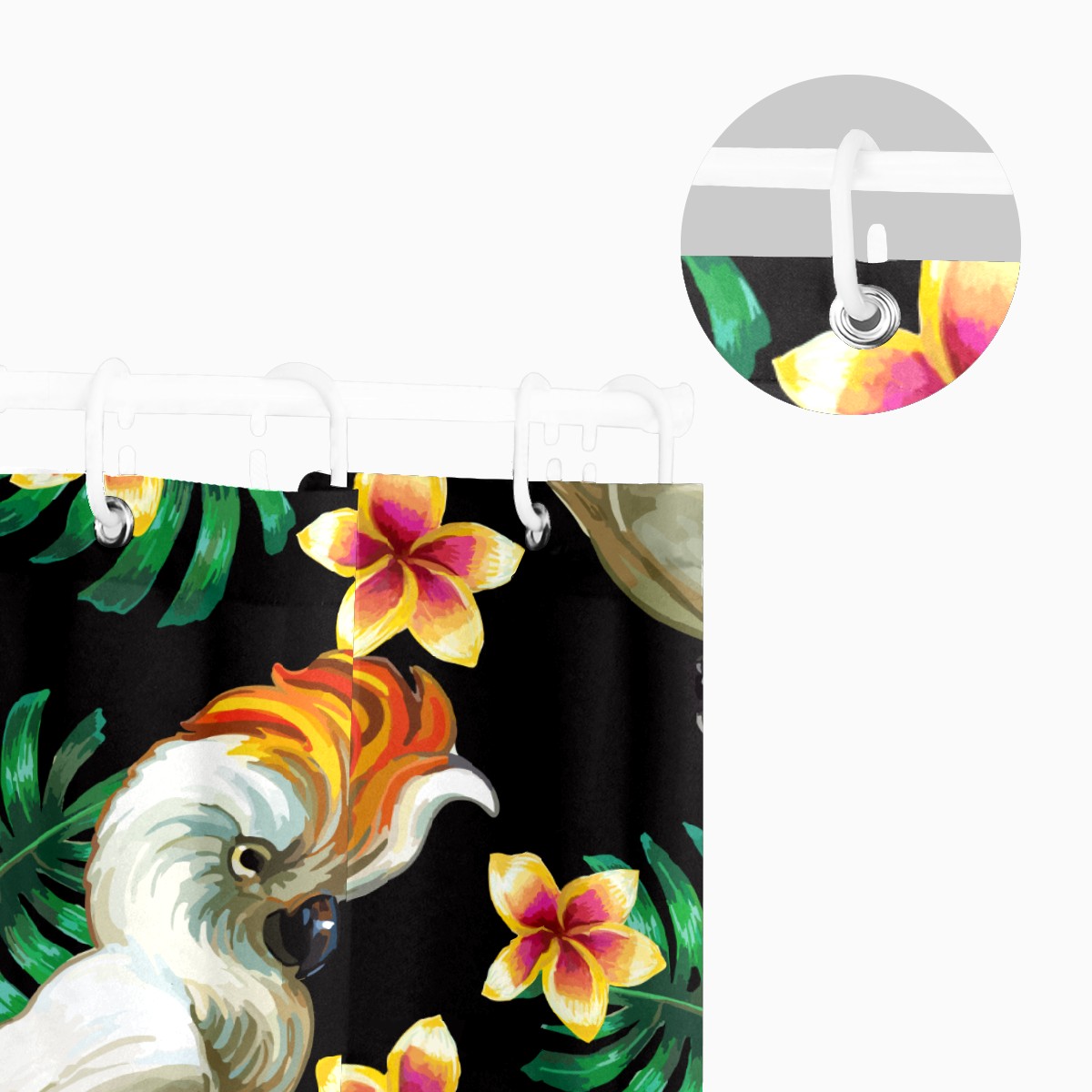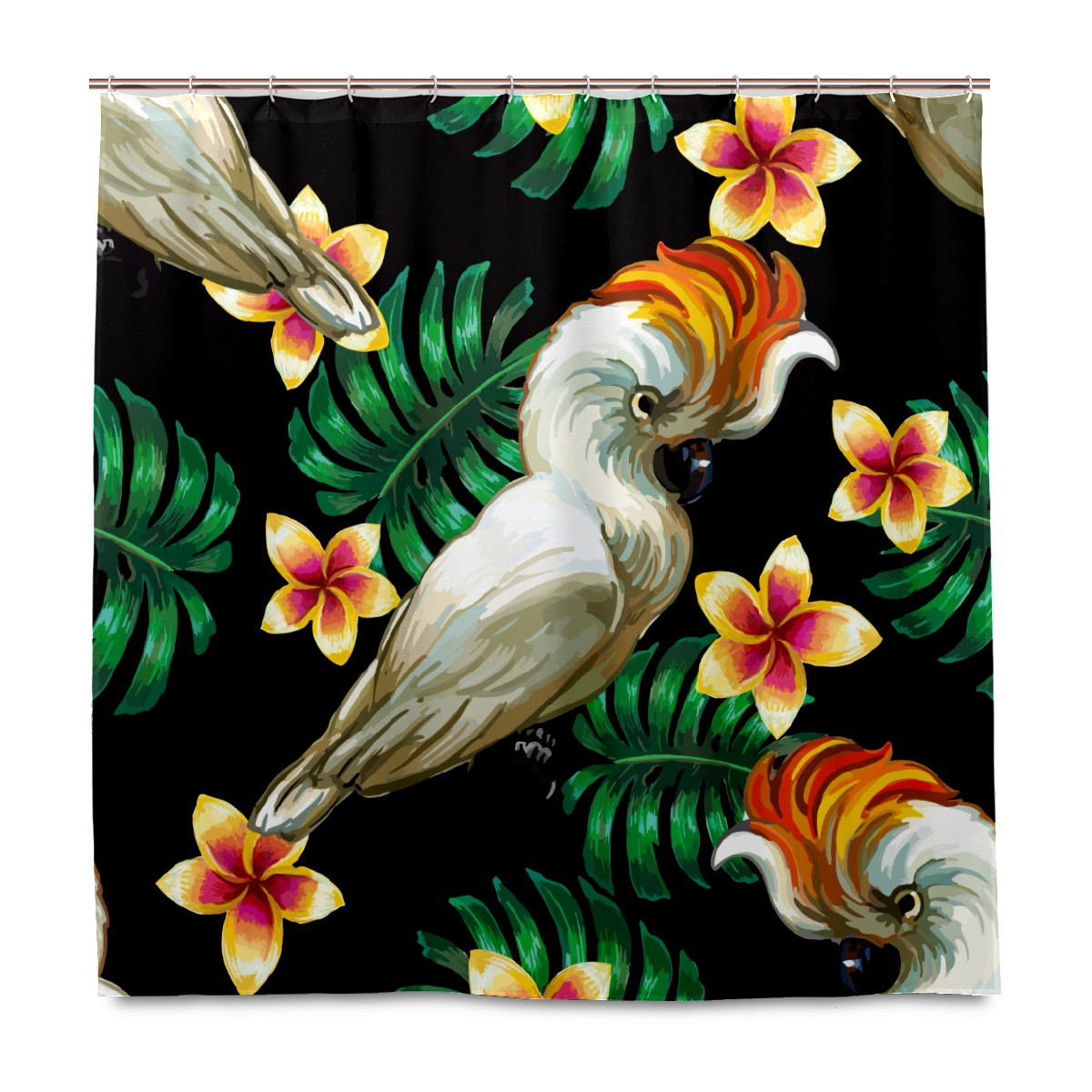 Shower Curtains for Bathroom Tropical Palm Parrot Bird Floral Waterproof Polyester Fabric 60 x 72 inches Decor Bathroom Curtains for Girls Boys with 12 Hooks