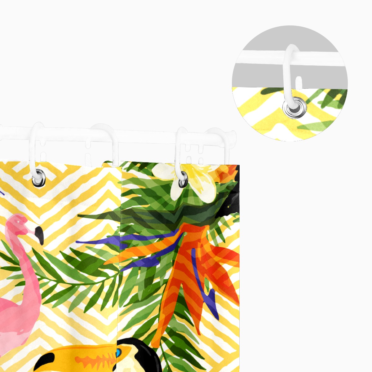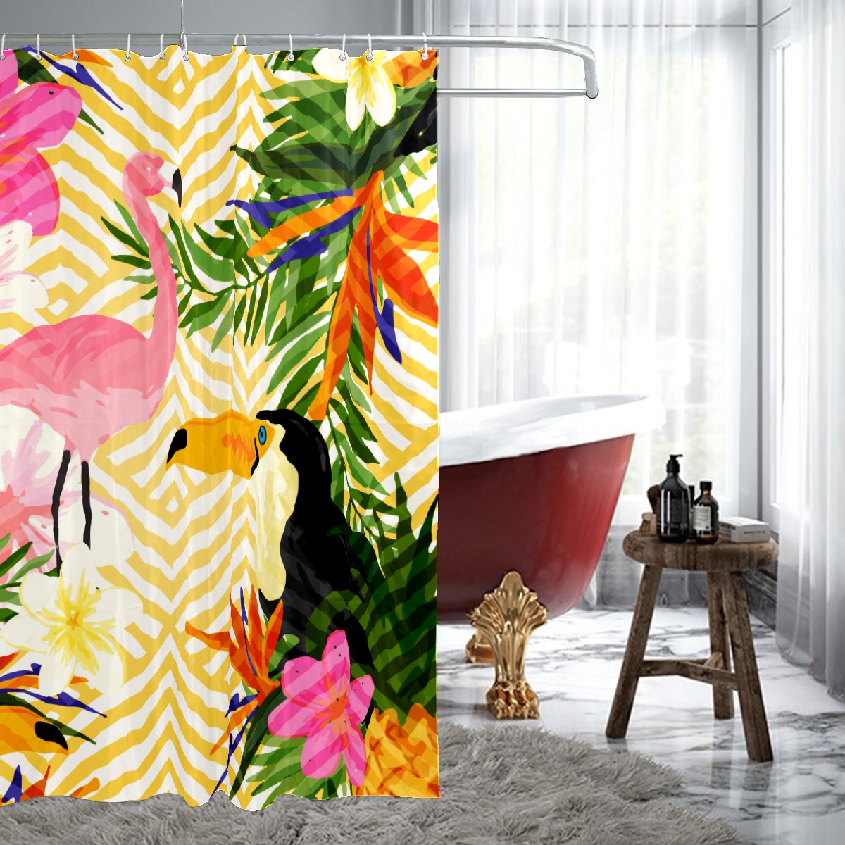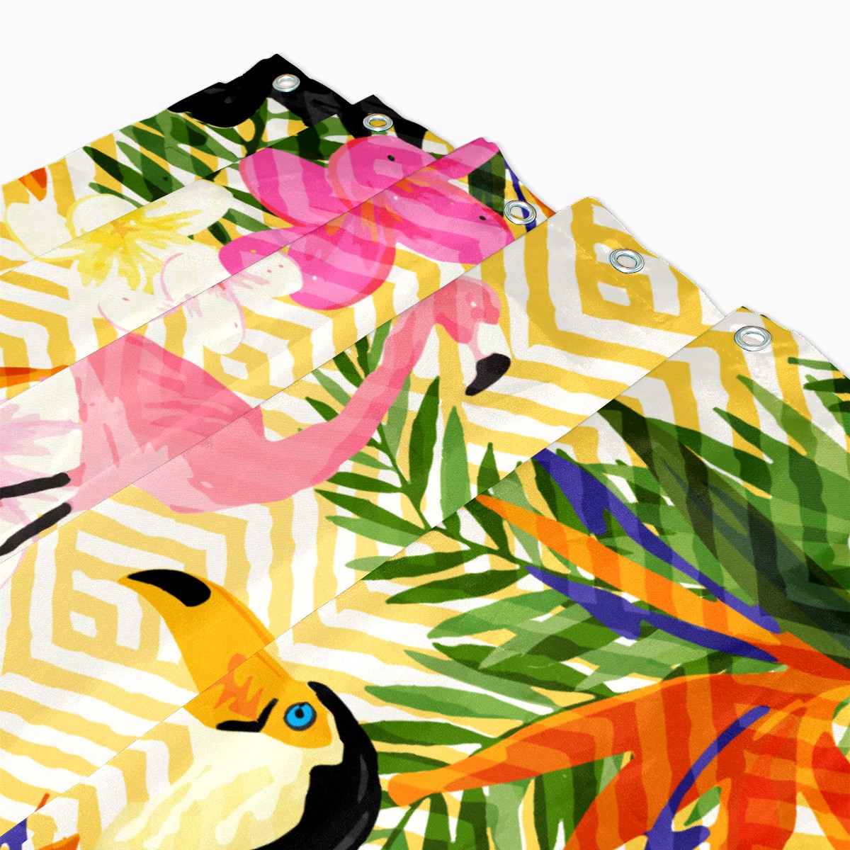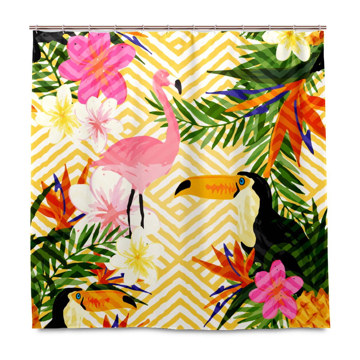 Shower Curtains for Bathroom Tropical Palm Flamingo Toucan Bird Pineapple Waterproof Polyester Fabric 60 x 72 inches Decor Bathroom Curtains for Girls Boys with 12 Hooks