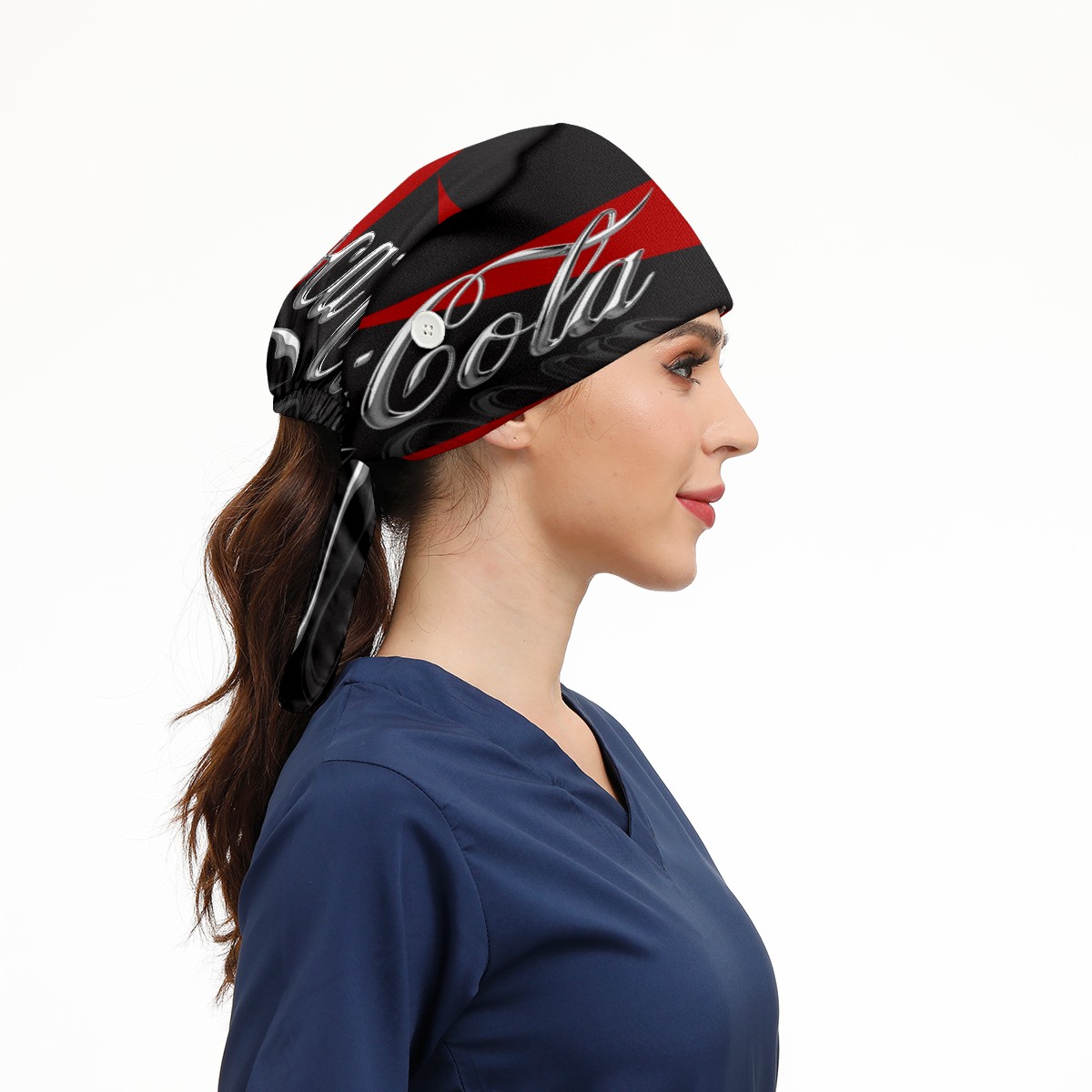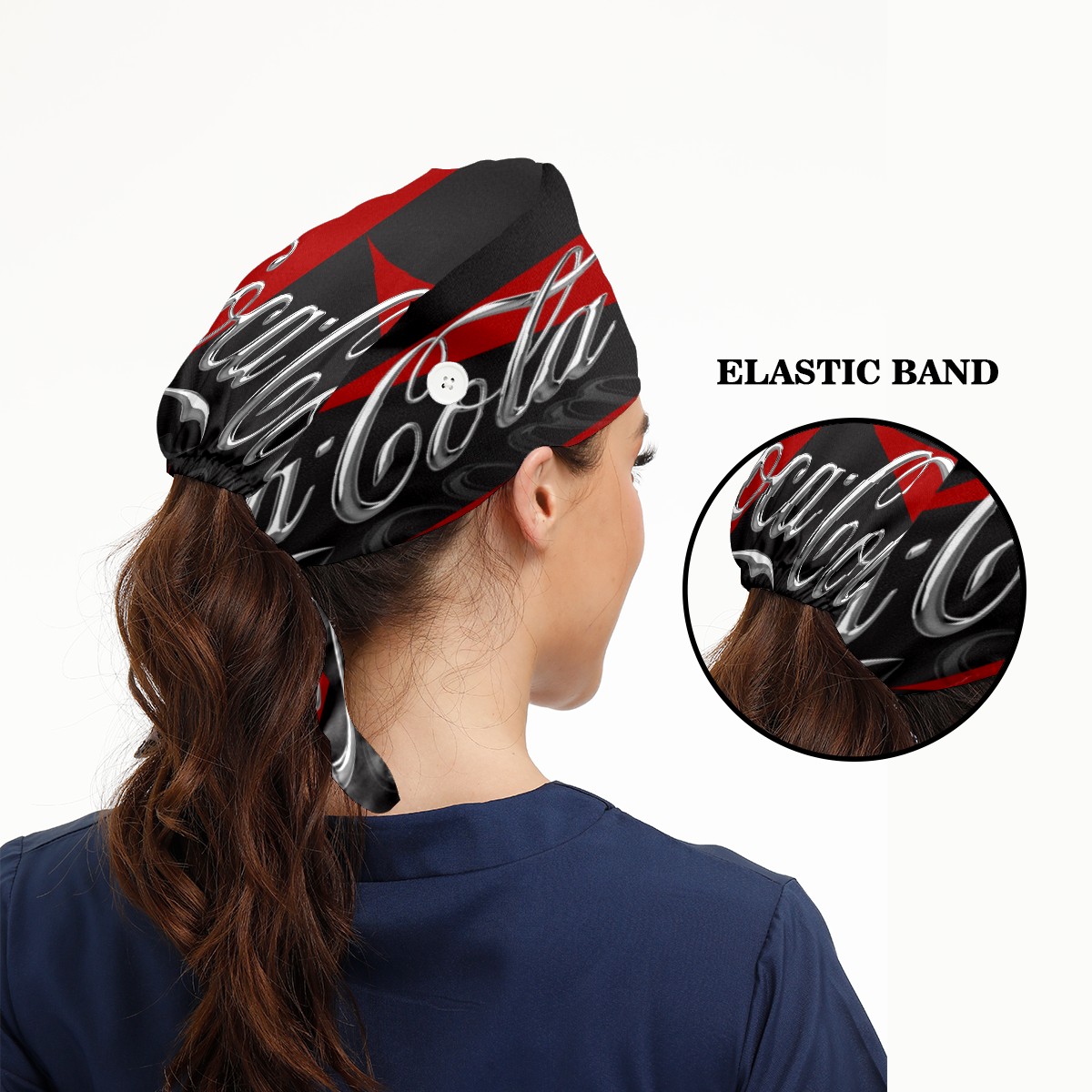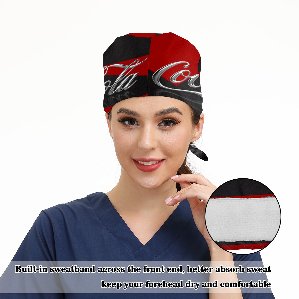 Fashion Working Cap Button and Sweatband Adjustable Elastic Coca Cola Red Black Head Cover Hair Tie Back Work Hats for Women Men