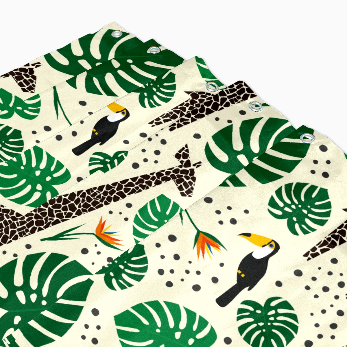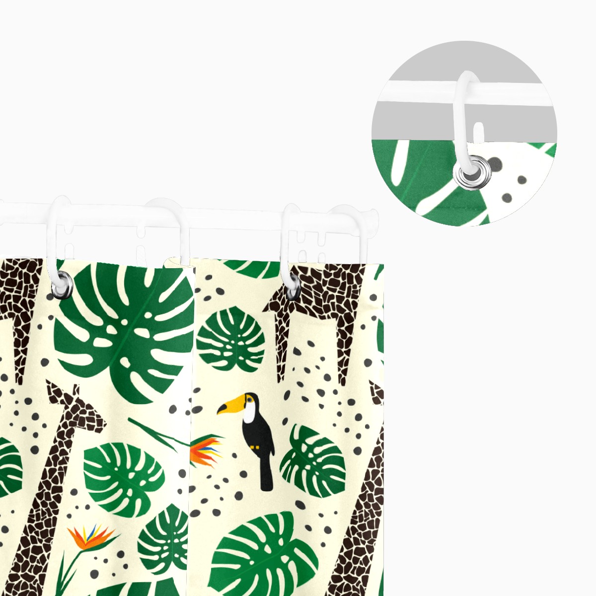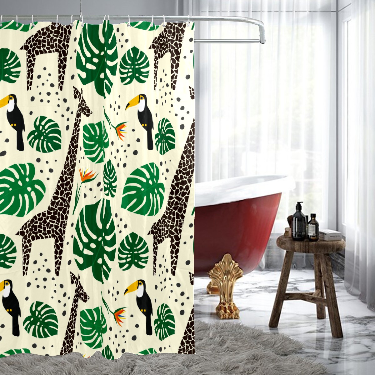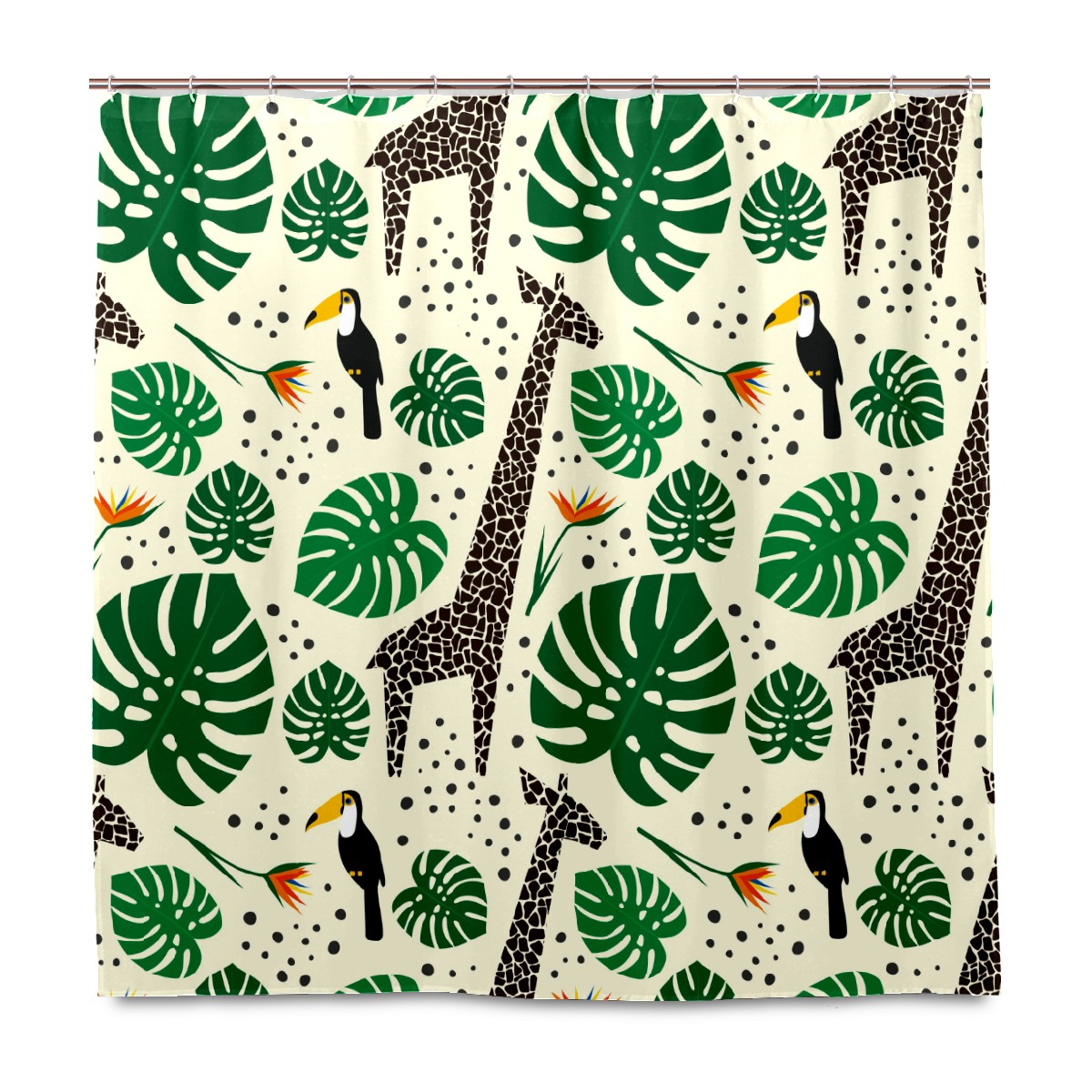 Shower Curtains for Bathroom Tropical Jungle Palm Giraffe Toucan Waterproof Polyester Fabric 60 x 72 inches Decor Bathroom Curtains for Girls Boys with 12 Hooks