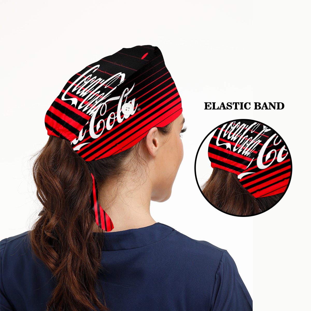 Fashion Working Cap Button and Sweatband Adjustable Elastic Coca Cola Red Black Stripes Head Cover Hair Tie Back Work Hats for Women Men