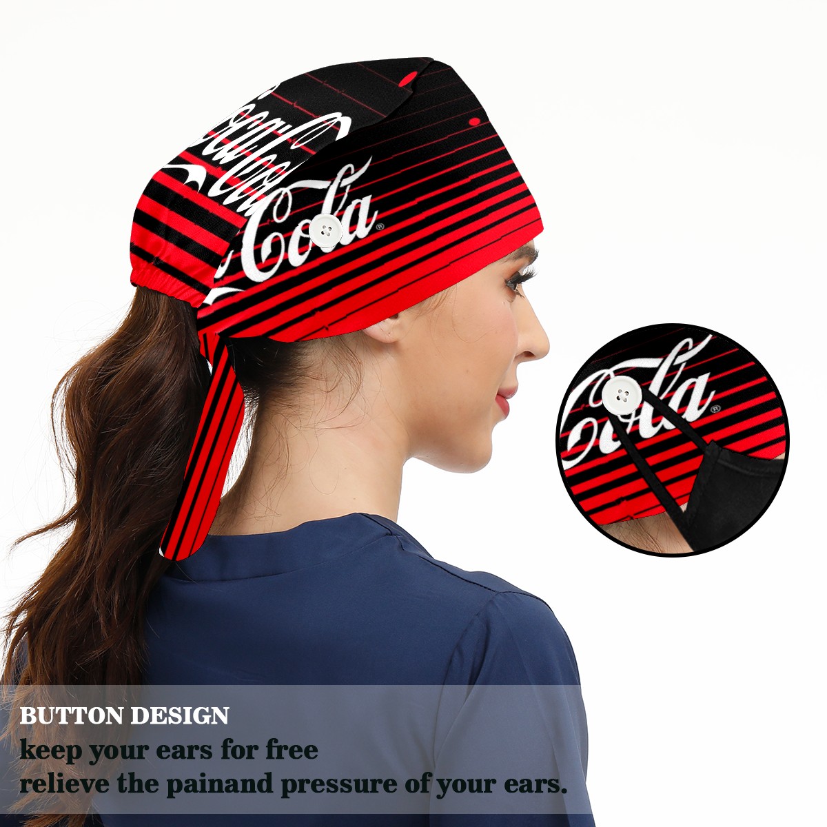 <p>Women and Mens head cover with Sweatband and Button</p><p>Material&nbsp;: 50% cotton+50% polyester</p><p>Size:&nbsp;One size fits most,&nbsp;suitable for both men and women.</p><p>Working Cap with Buttons Design:special&nbsp;design with buttons to protect ears for those who are wearing ma-sk. These new styles hats will allow you to put the straps around the buttons instead of your ears, make you feel more comfortable.</p><p>Sweat-absorbent towel cloth inside: Built-in&nbsp;100% cotton sweatband, keep the forehead clean after long time working.</p><p>Widely occasion: Widely used in beauty spa, house cleaning, cooking, sleeping, or for cos-play&nbsp;party.</p><p>Lovely pattern: lovely&nbsp;3D printed&nbsp;pattern,&nbsp;it's perfect for gift to you family&nbsp;and friends.</p>