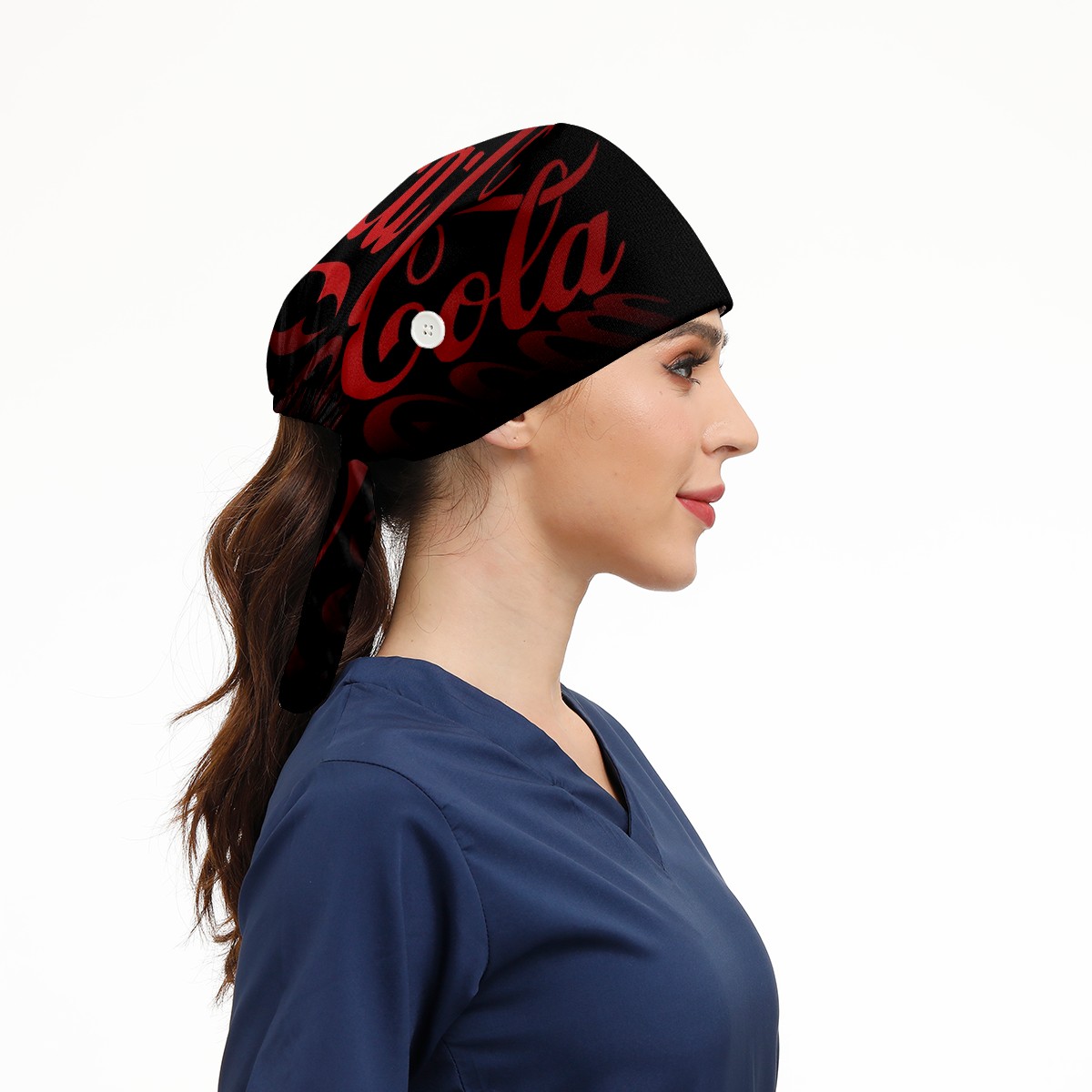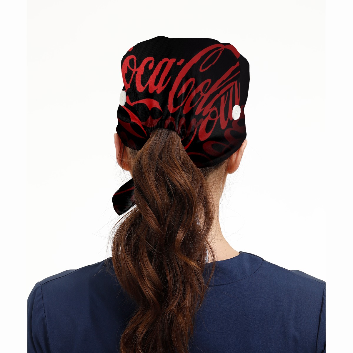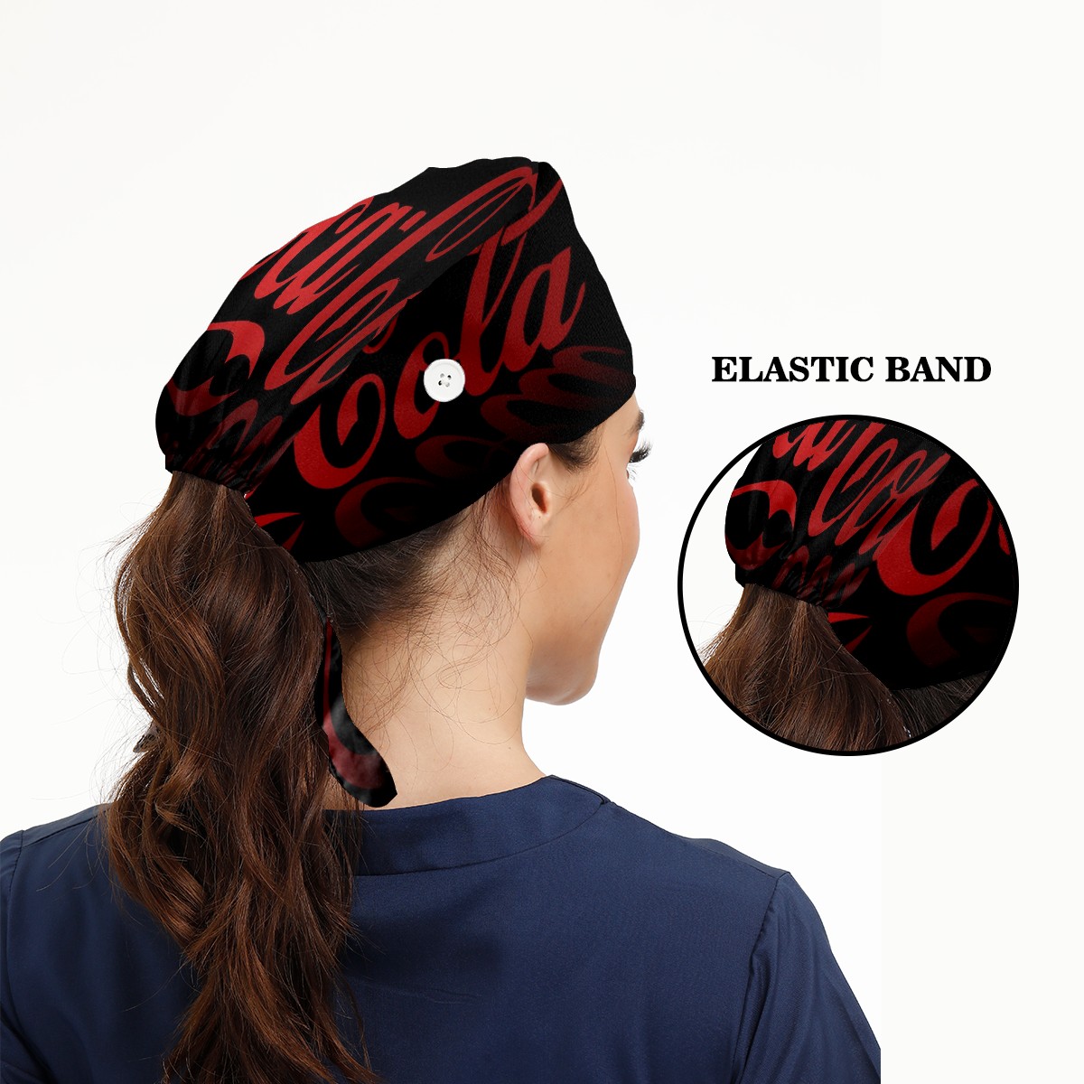 Fashion Working Cap Button and Sweatband Adjustable Elastic Classic Coca Cola On Black Head Cover Hair Tie Back Work Hats for Women Men