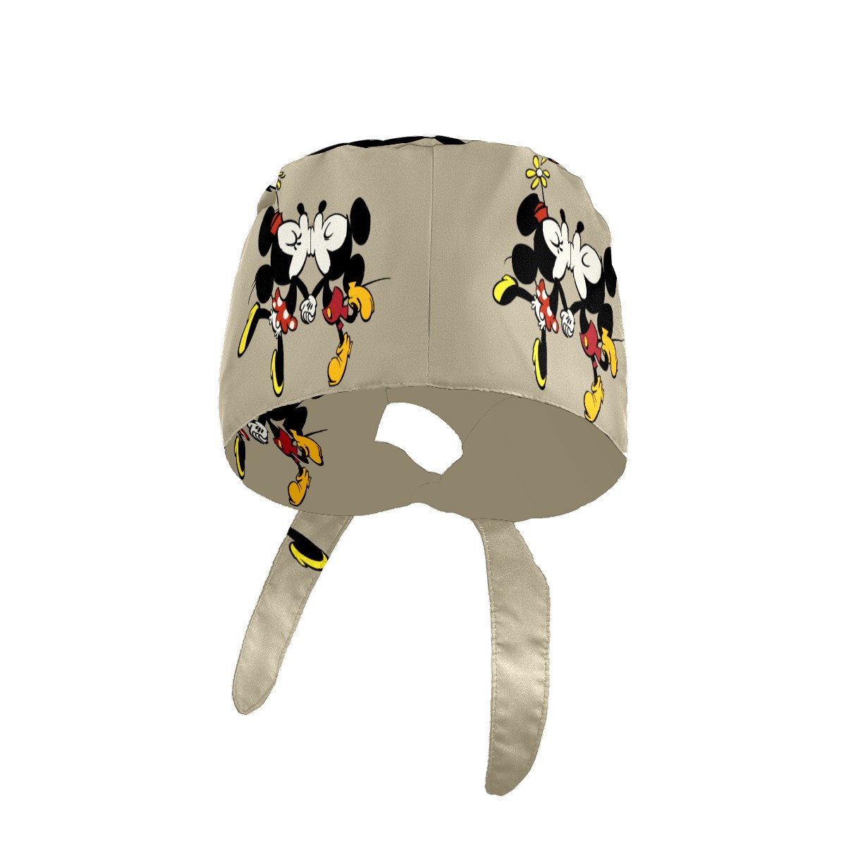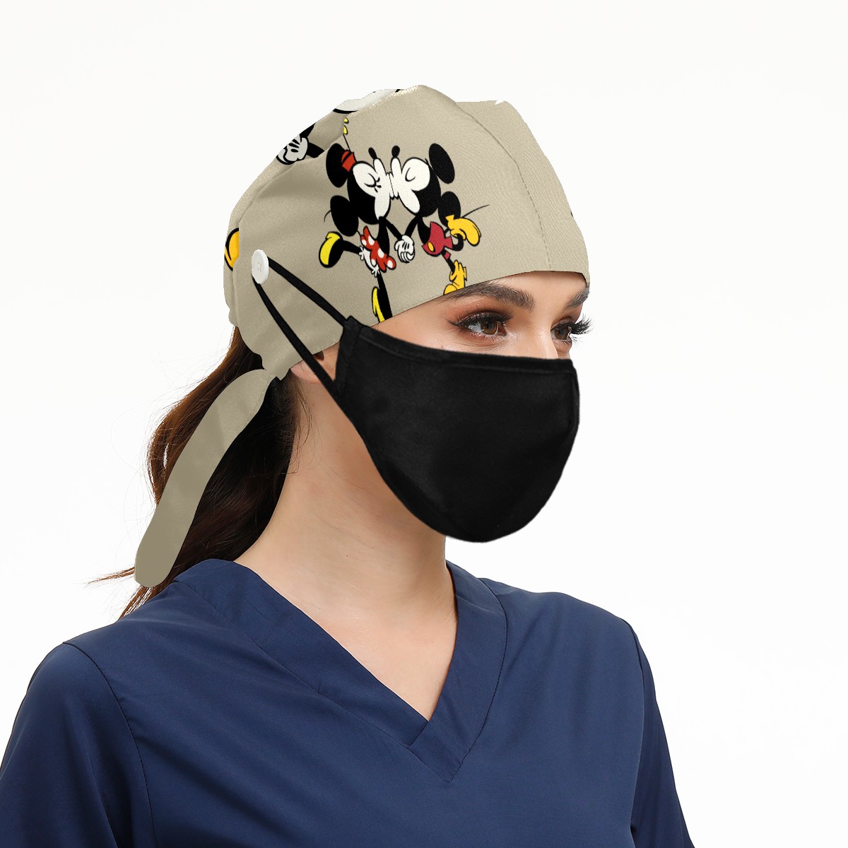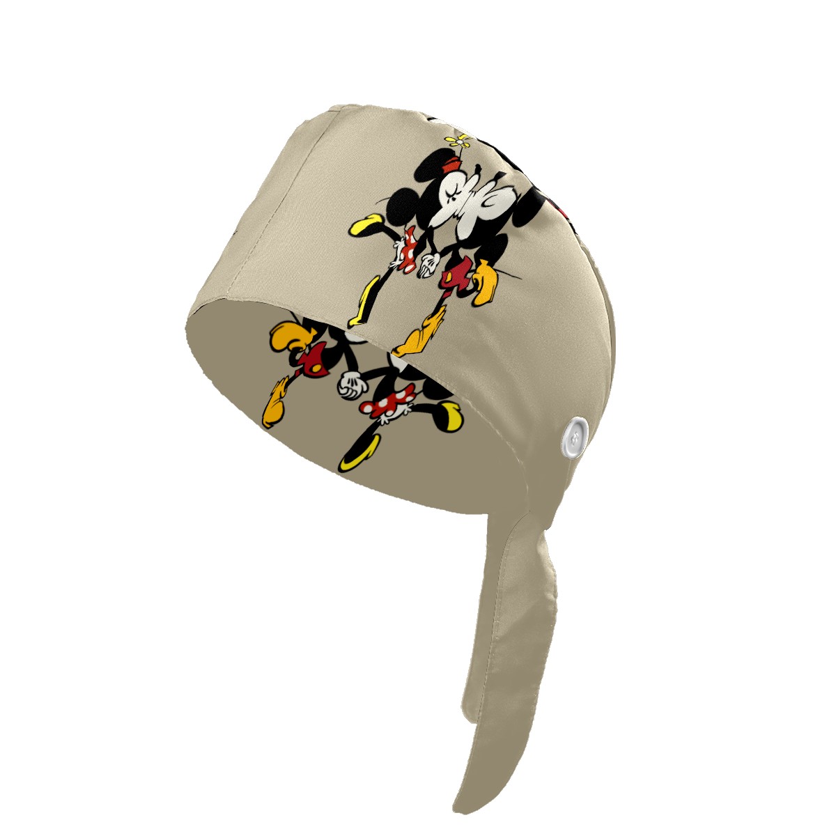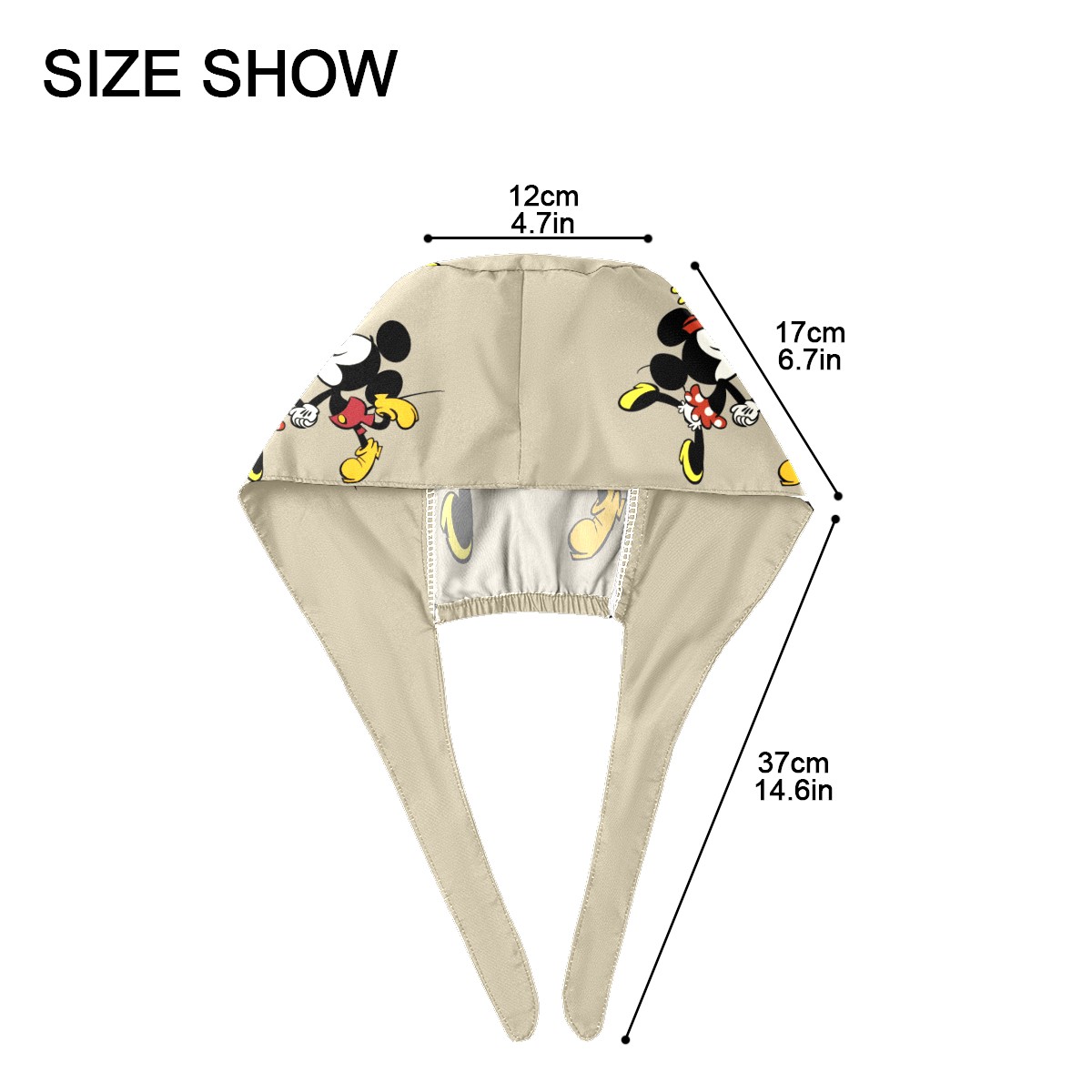 Fashion Working Cap Button and Sweatband Adjustable Elastic Cartoon Minnie Kissing Mickey Mouse Head Cover Hair Tie Back Work Hats for Women Men