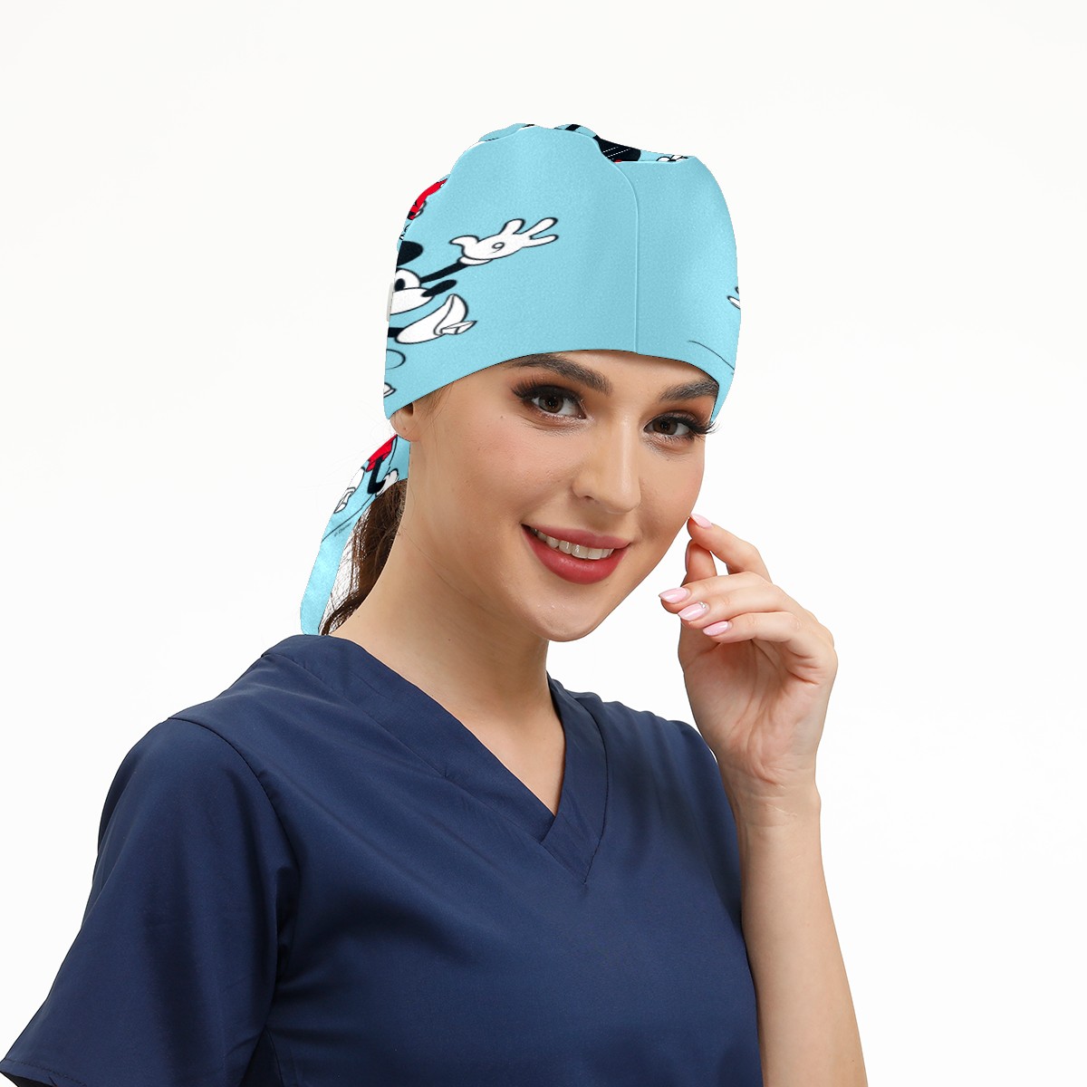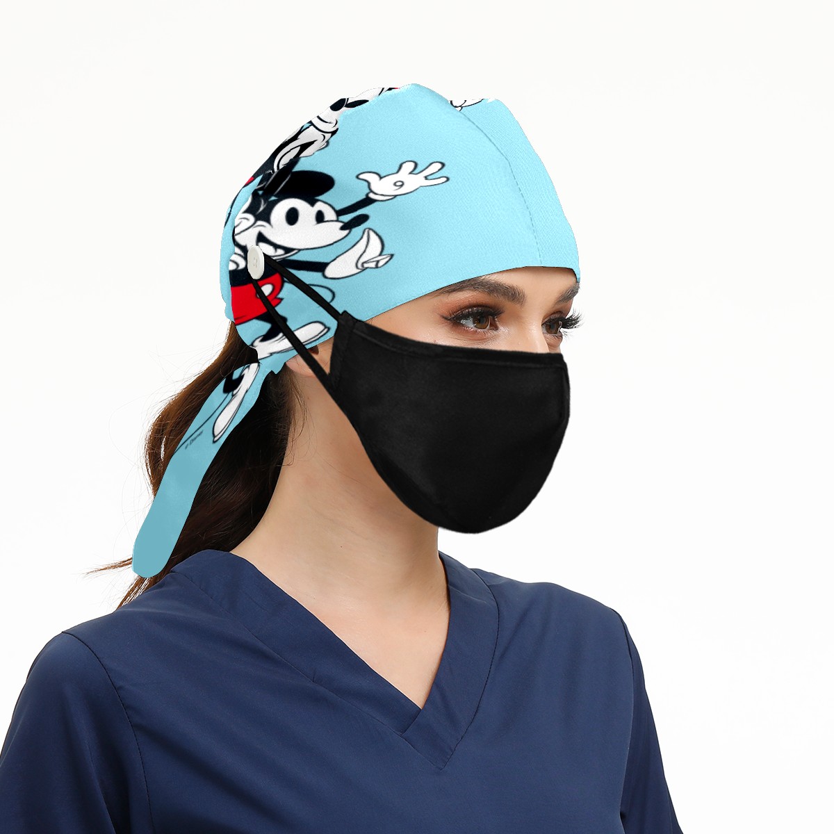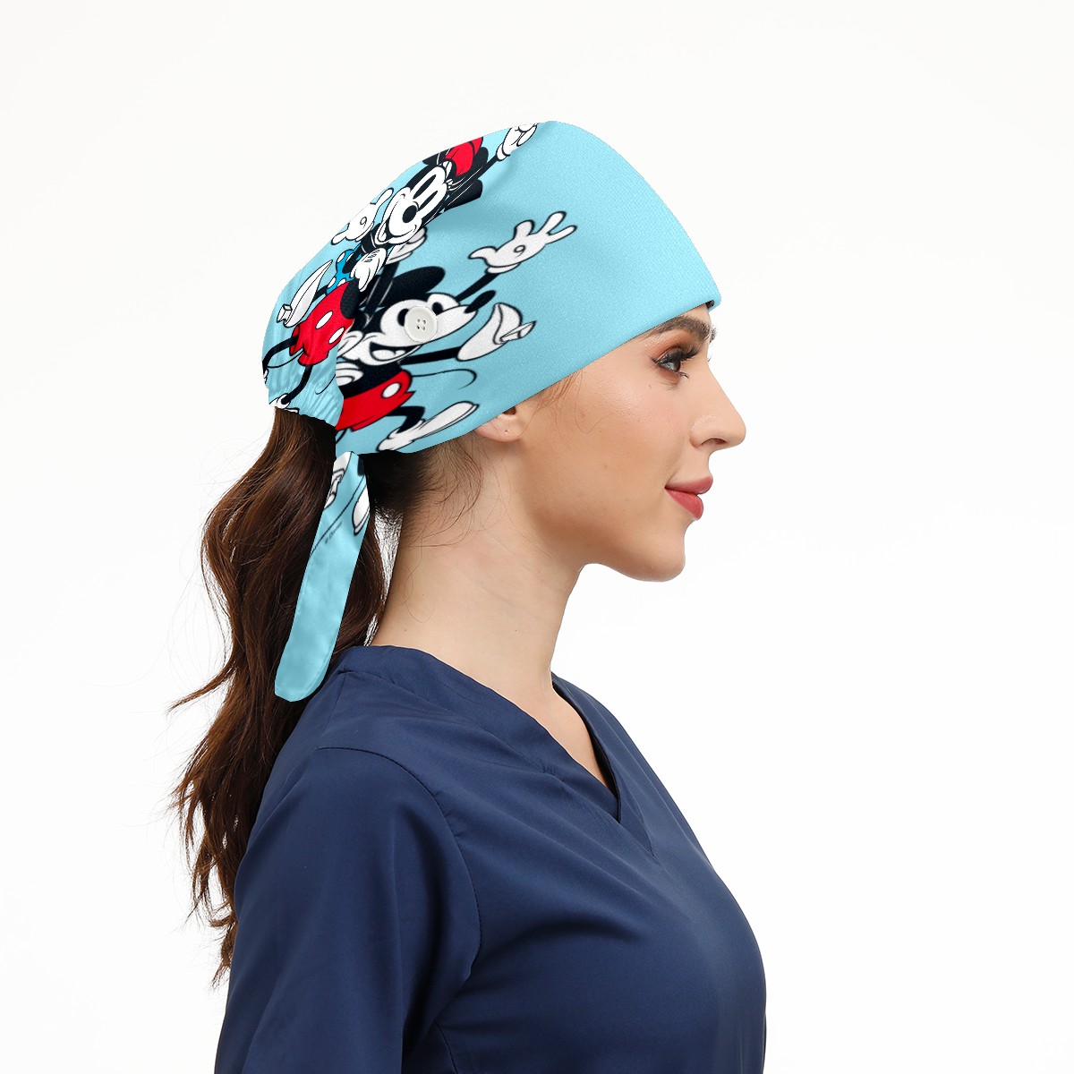 Fashion Working Cap Button and Sweatband Adjustable Elastic Blue Minnie Mickey Mouse Pattern Head Cover Hair Tie Back Work Hats for Women Men