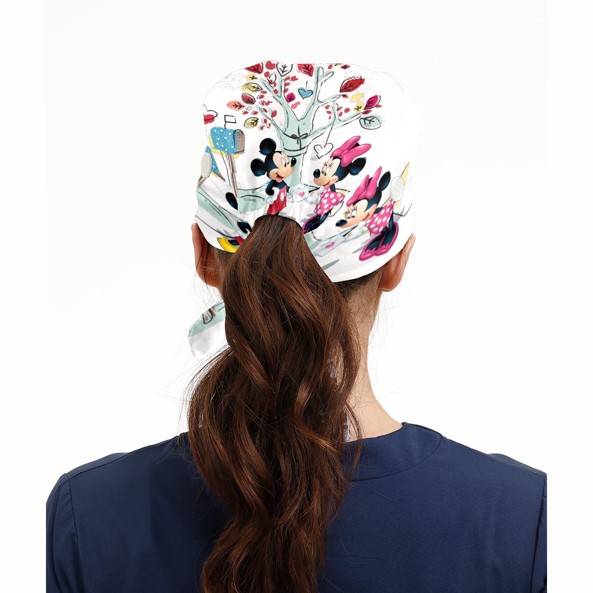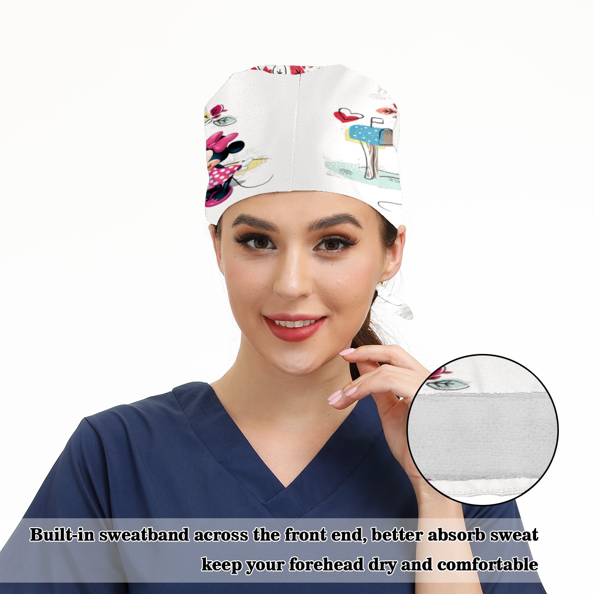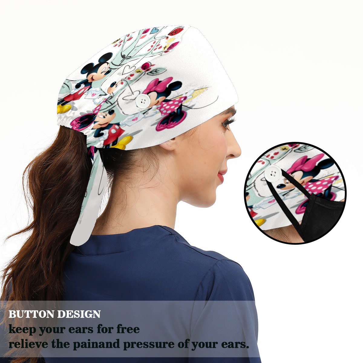 Fashion Working Cap Button and Sweatband Adjustable Elastic Mickey Mouse Minnie Valentine's Day Head Cover Hair Tie Back Work Hats for Women Men