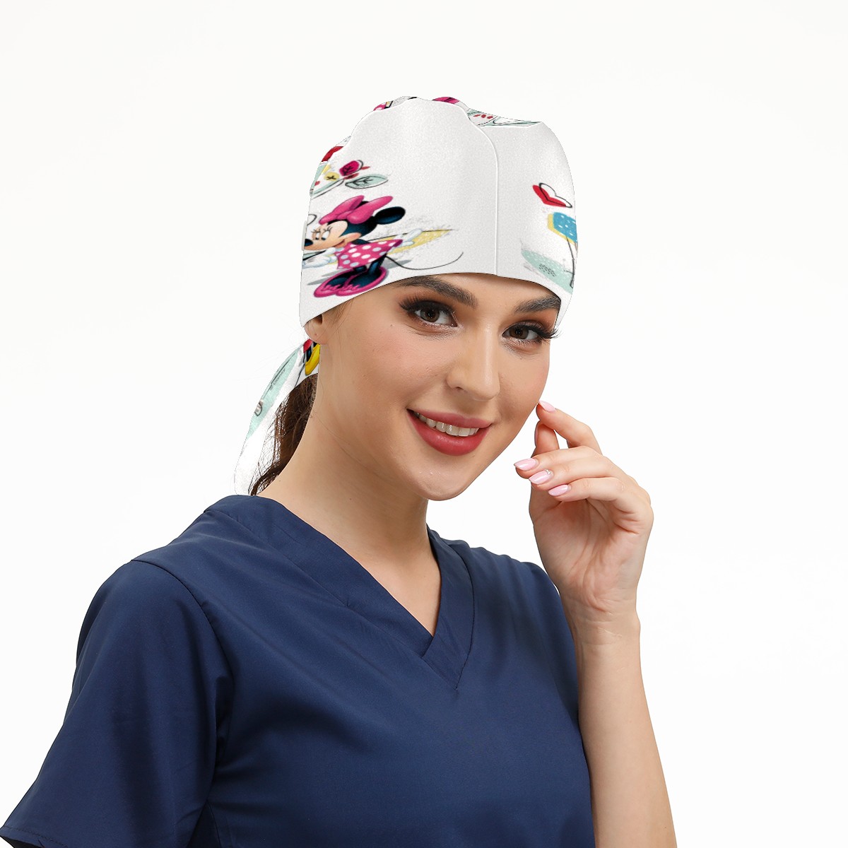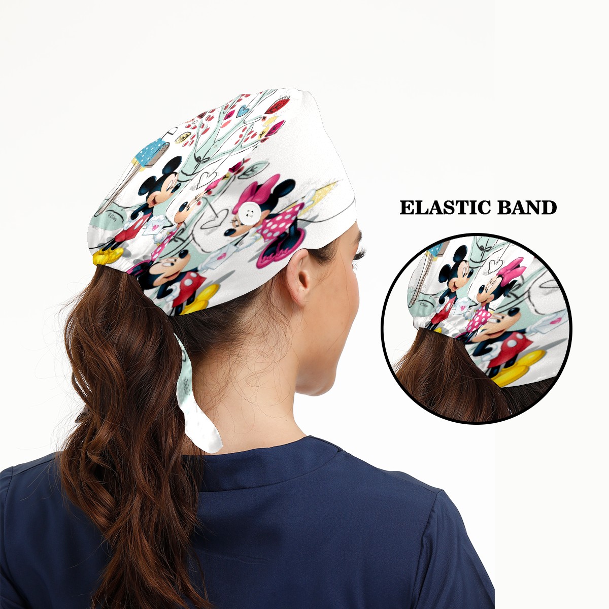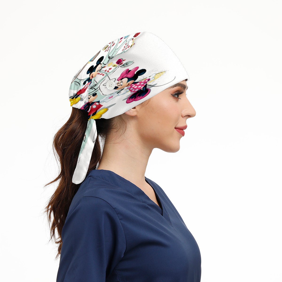 Fashion Working Cap Button and Sweatband Adjustable Elastic Mickey Mouse Minnie Valentine's Day Head Cover Hair Tie Back Work Hats for Women Men