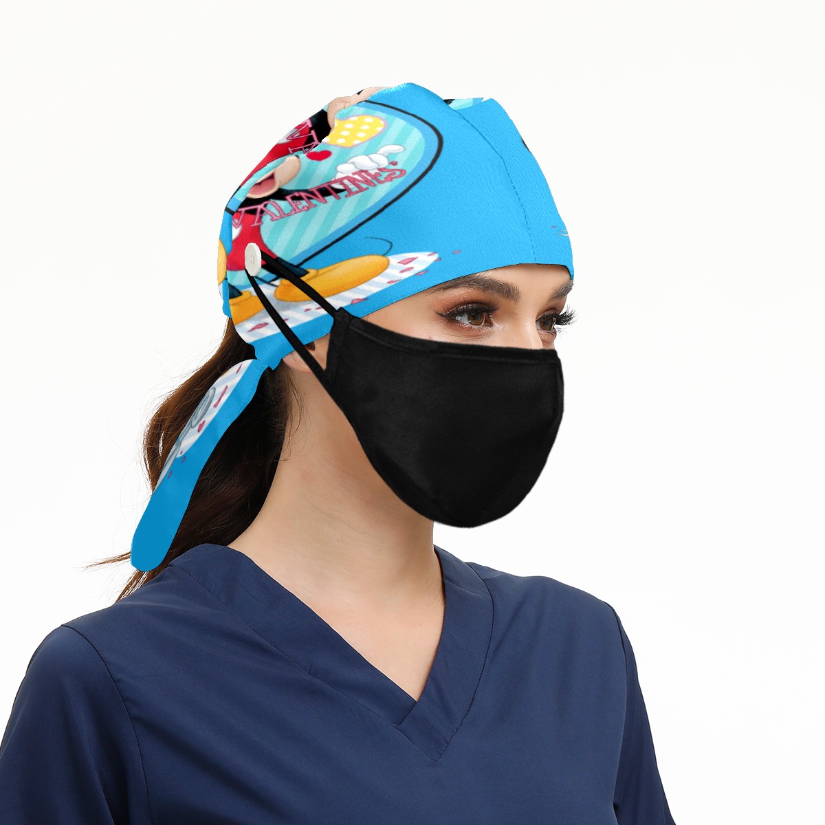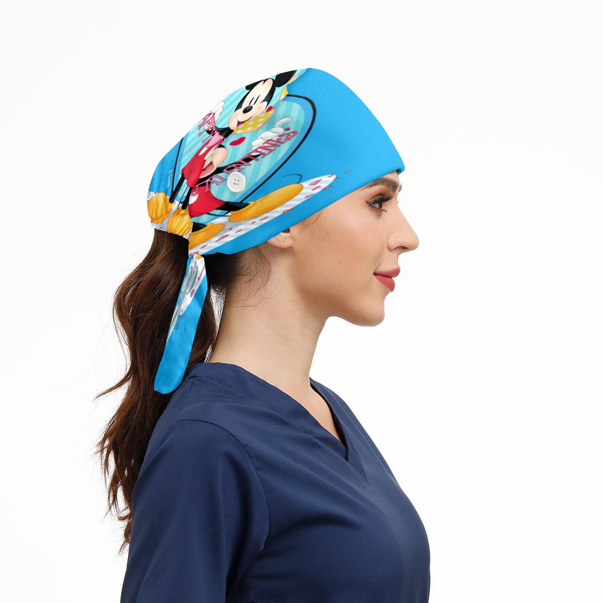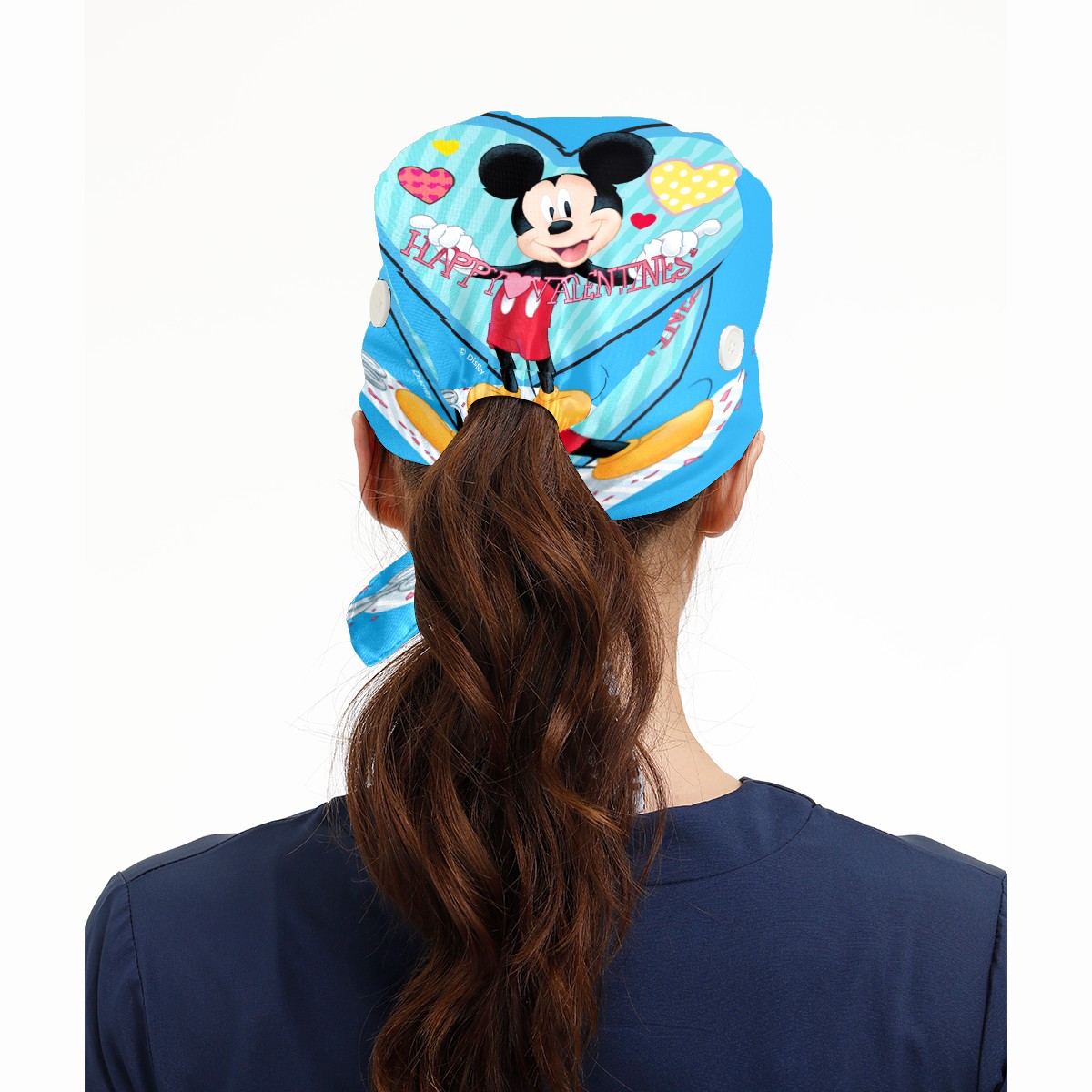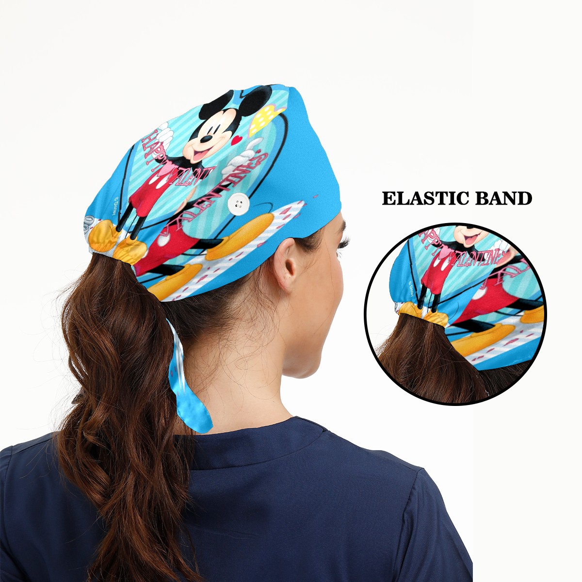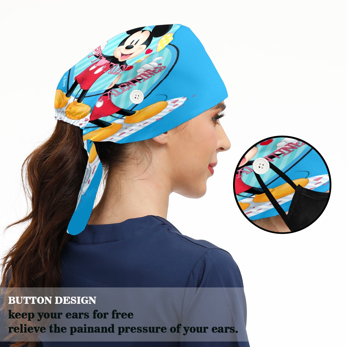 Fashion Working Cap Button and Sweatband Adjustable Elastic Mickey Mouse Happy Valentines Day Head Cover Hair Tie Back Work Hats for Women Men