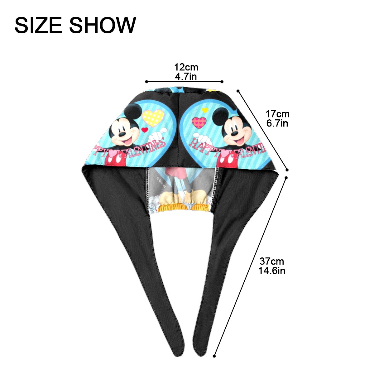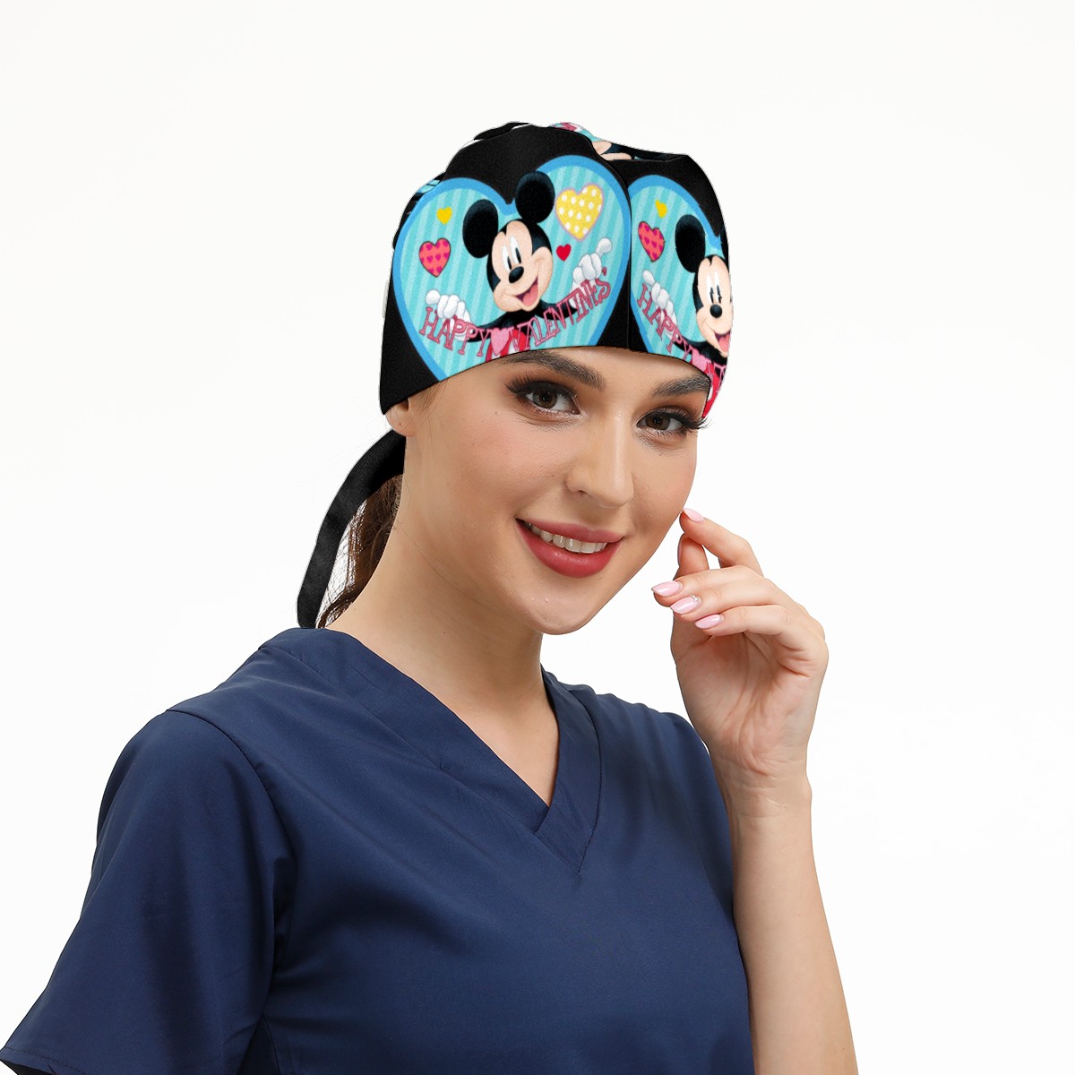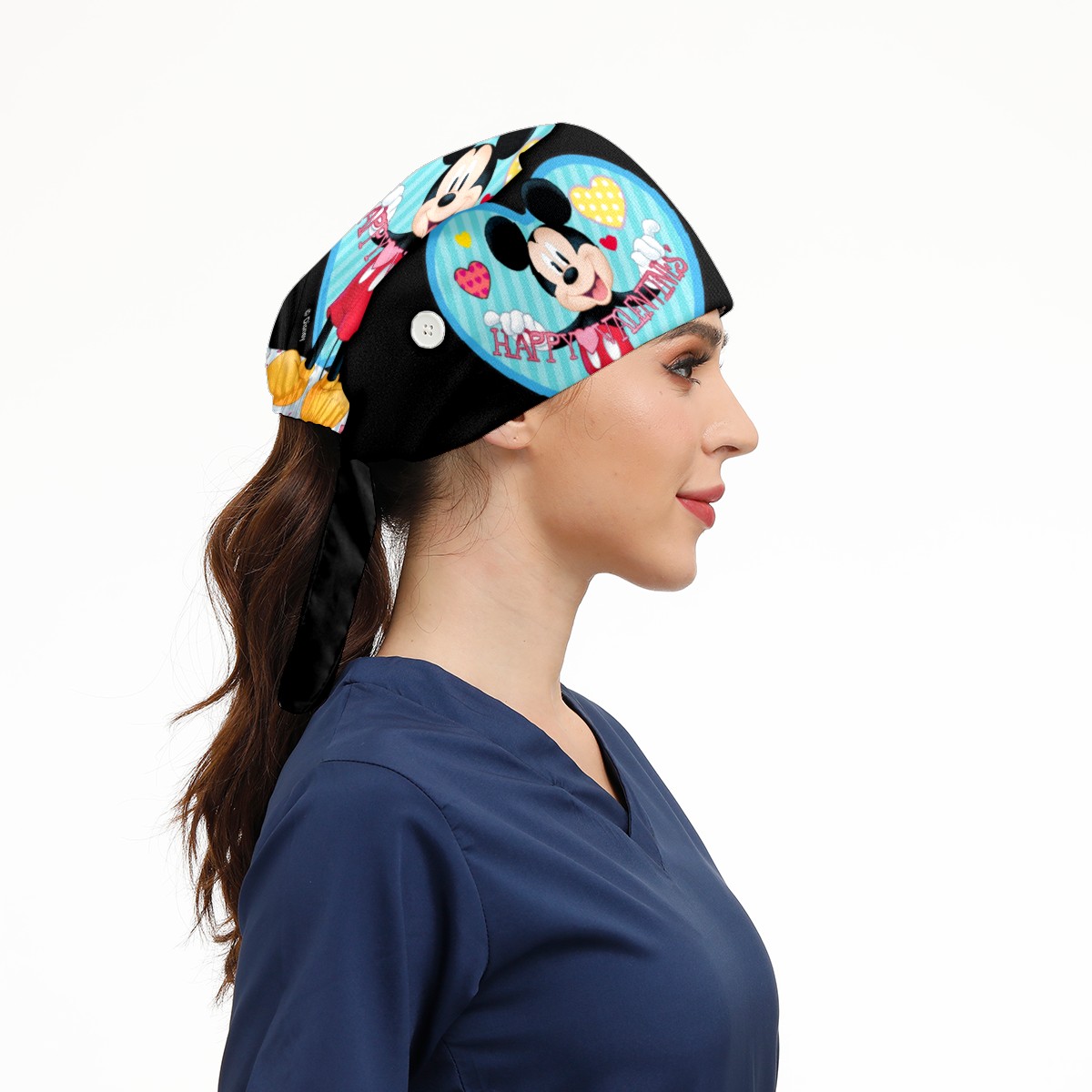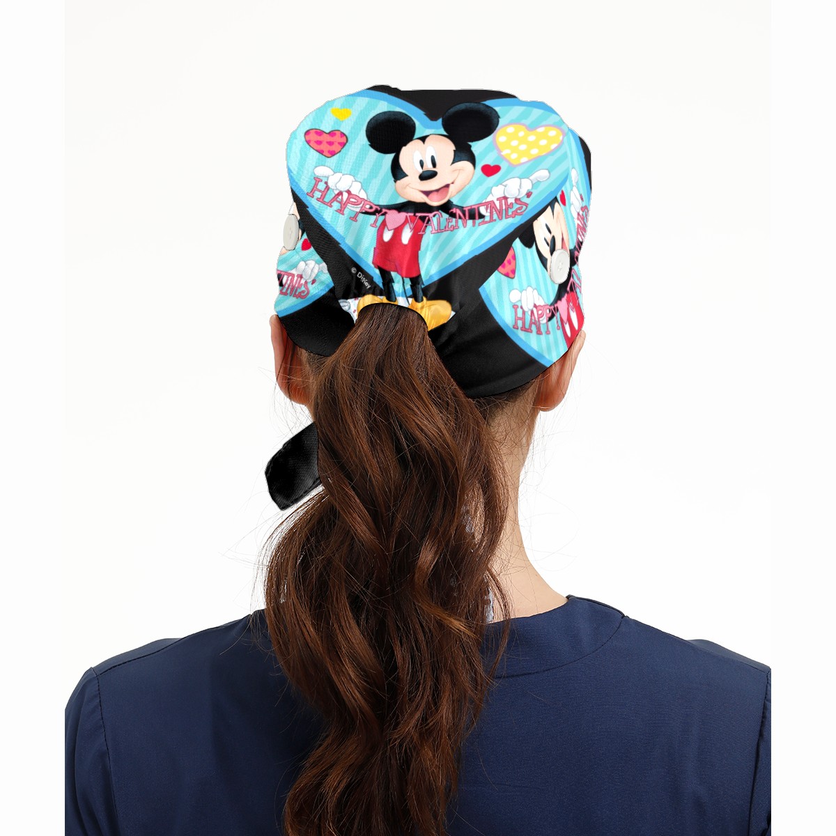 Fashion Working Cap Button and Sweatband Adjustable Elastic Mickey Mouse Happy Valentines Day Black Head Cover Hair Tie Back Work Hats for Women Men