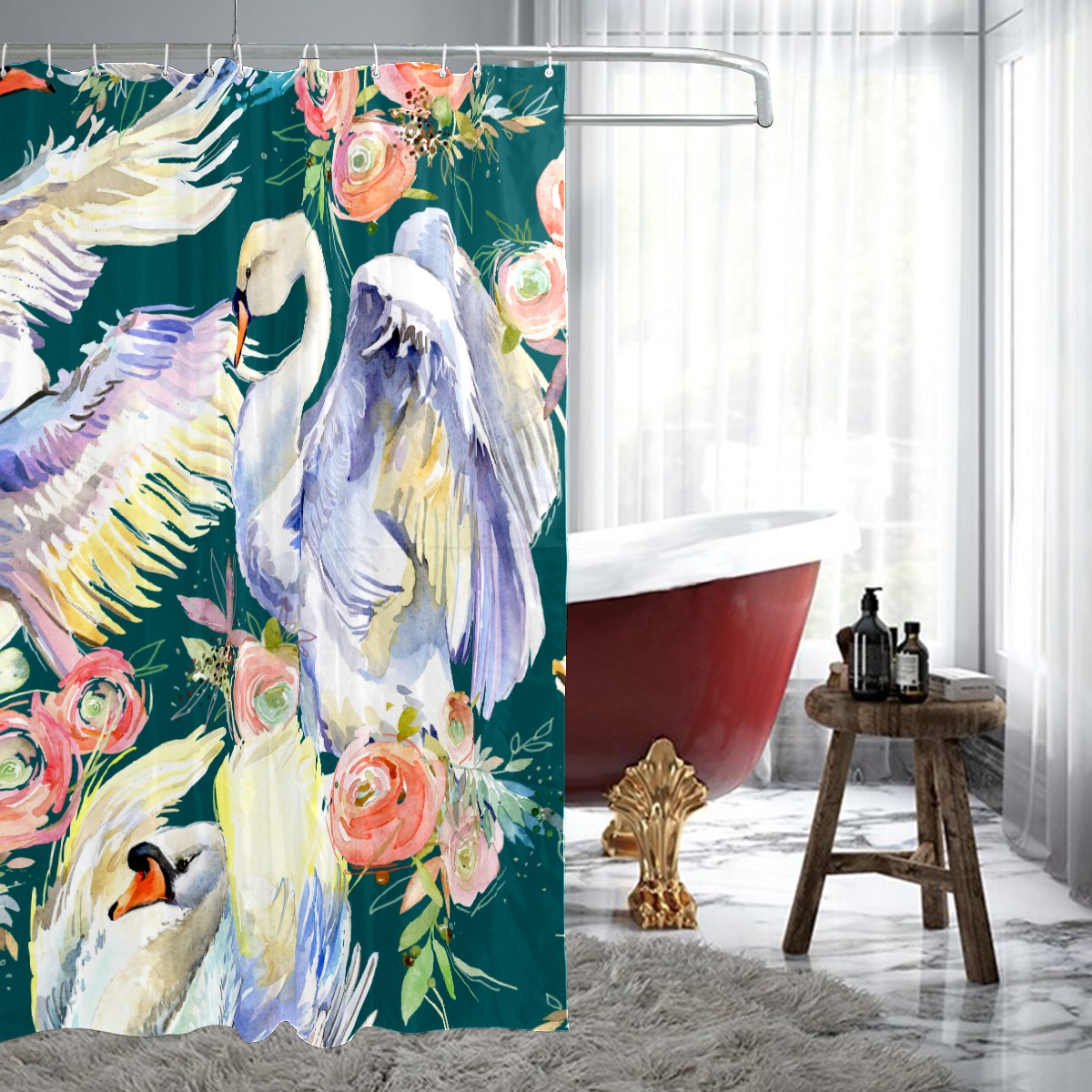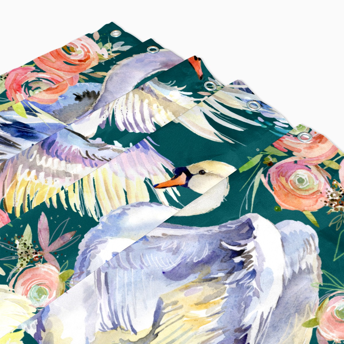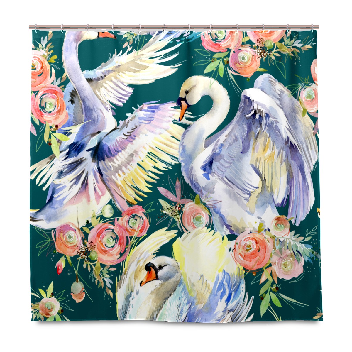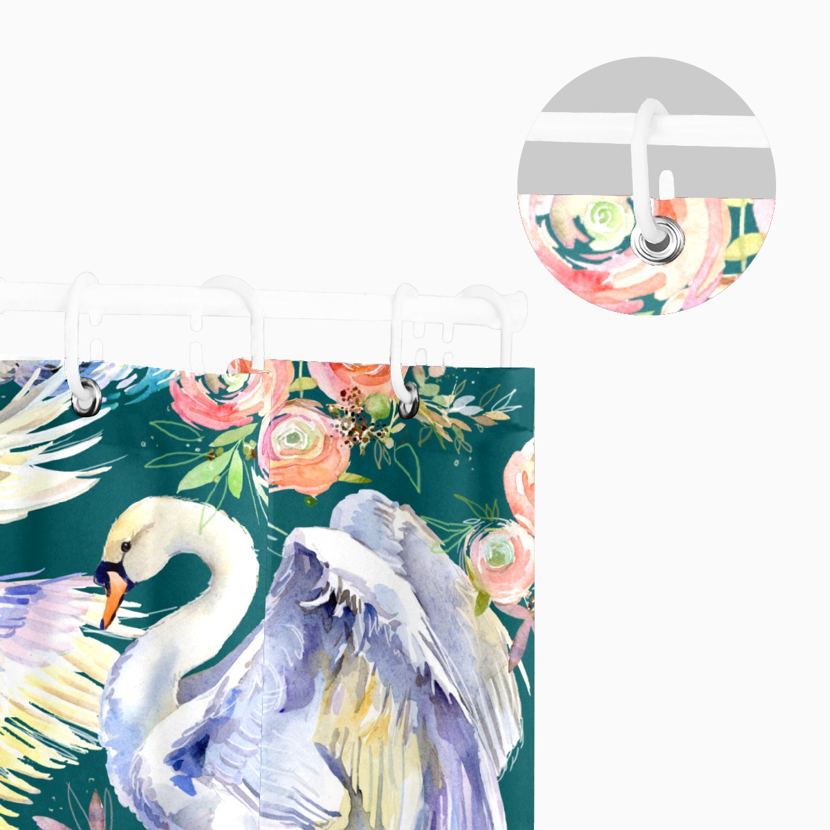 Shower Curtains for Bathroom Watercolor Swan Rose Floral Waterproof Polyester Fabric 60 x 72 inches Decor Bathroom Curtains for Girls Boys with 12 Hooks