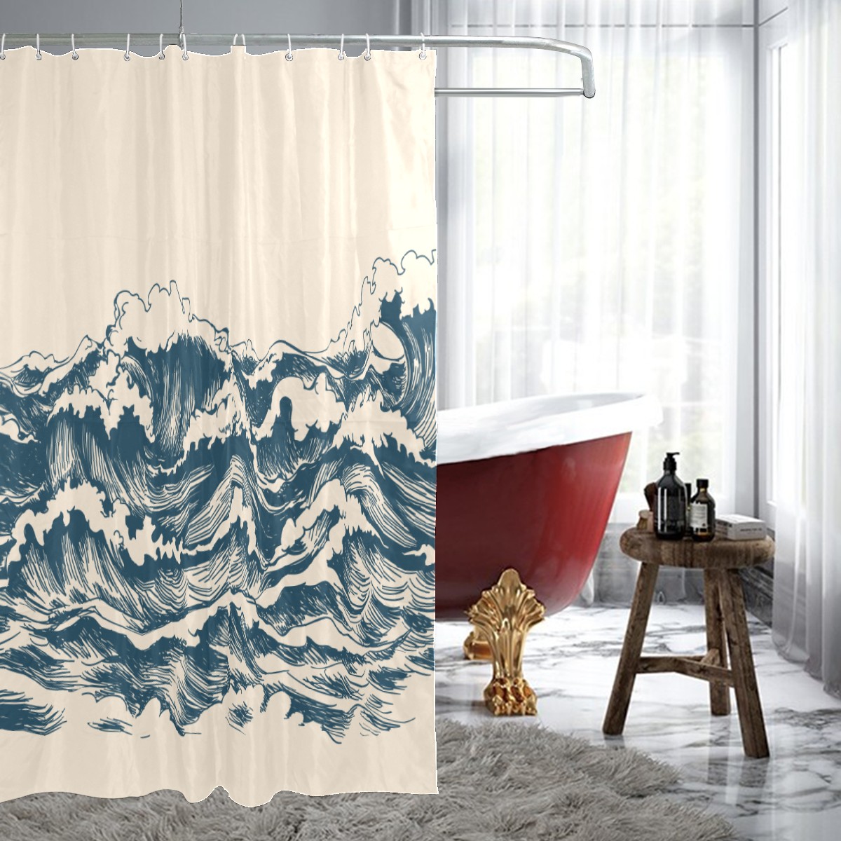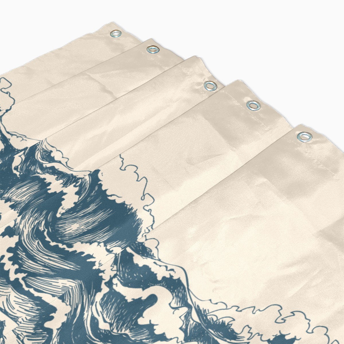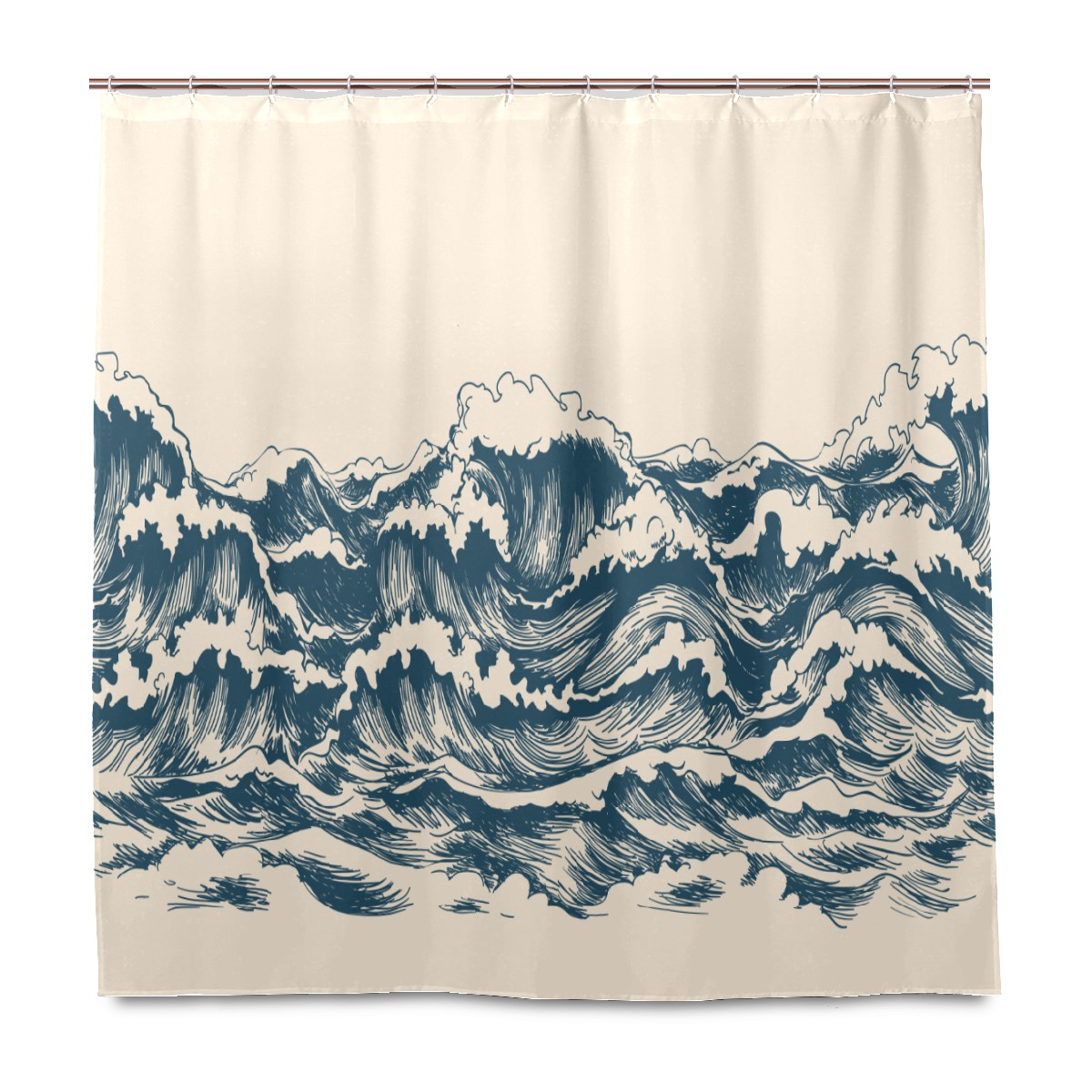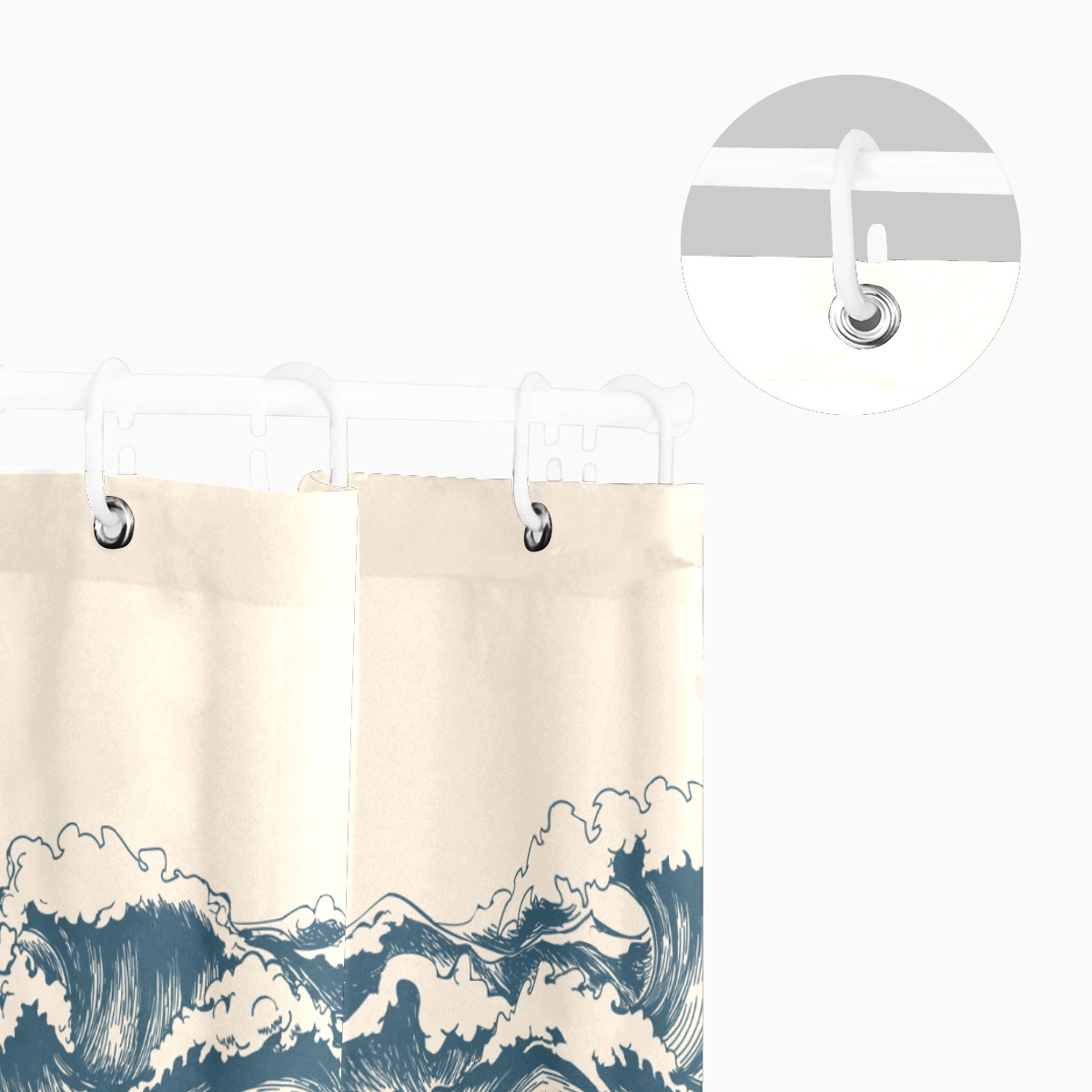 Shower Curtains for Bathroom Vintage Japanese Ocean Wave Waterproof Polyester Fabric 60 x 72 inches Decor Bathroom Curtains for Girls Boys with 12 Hooks