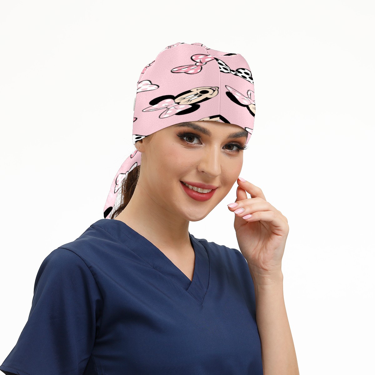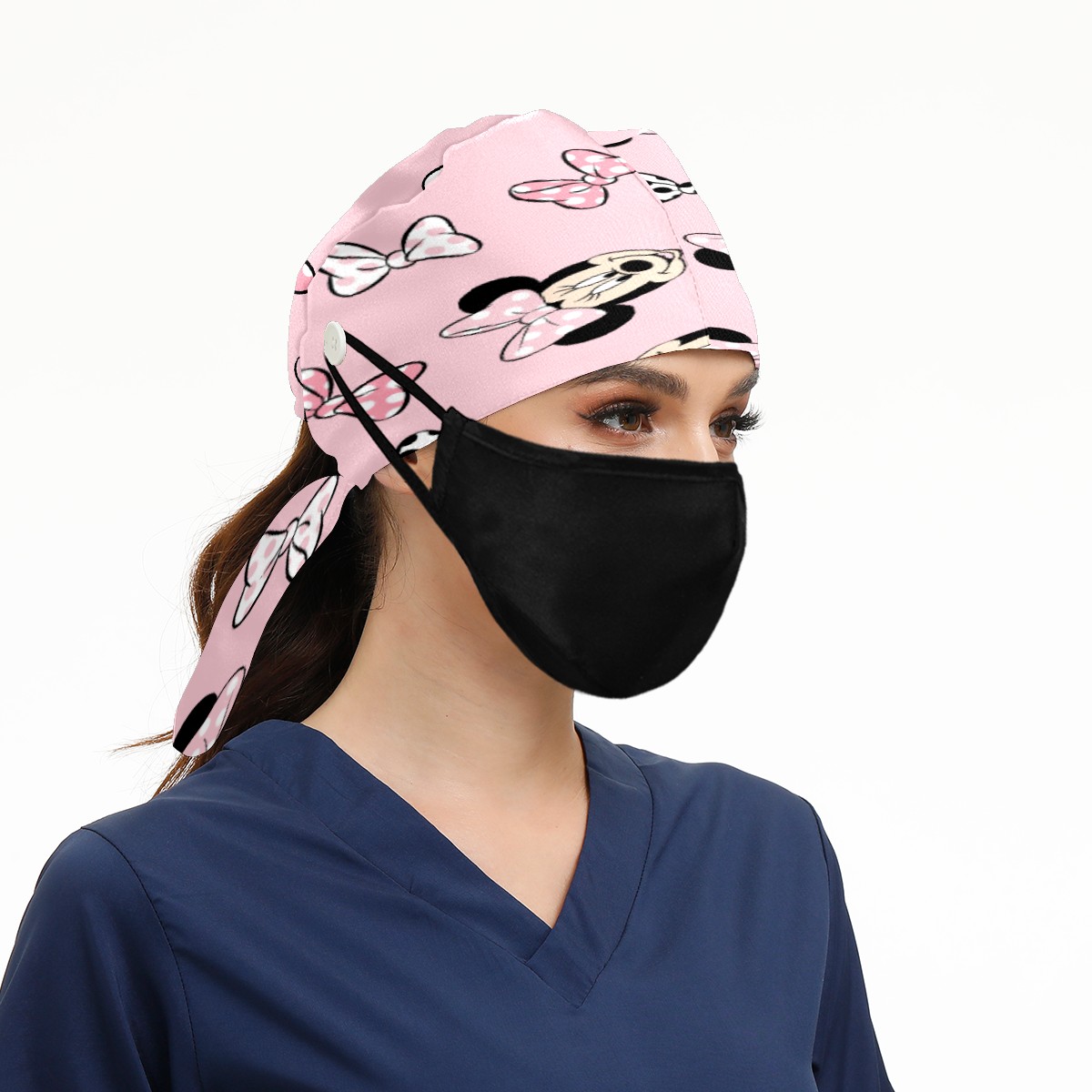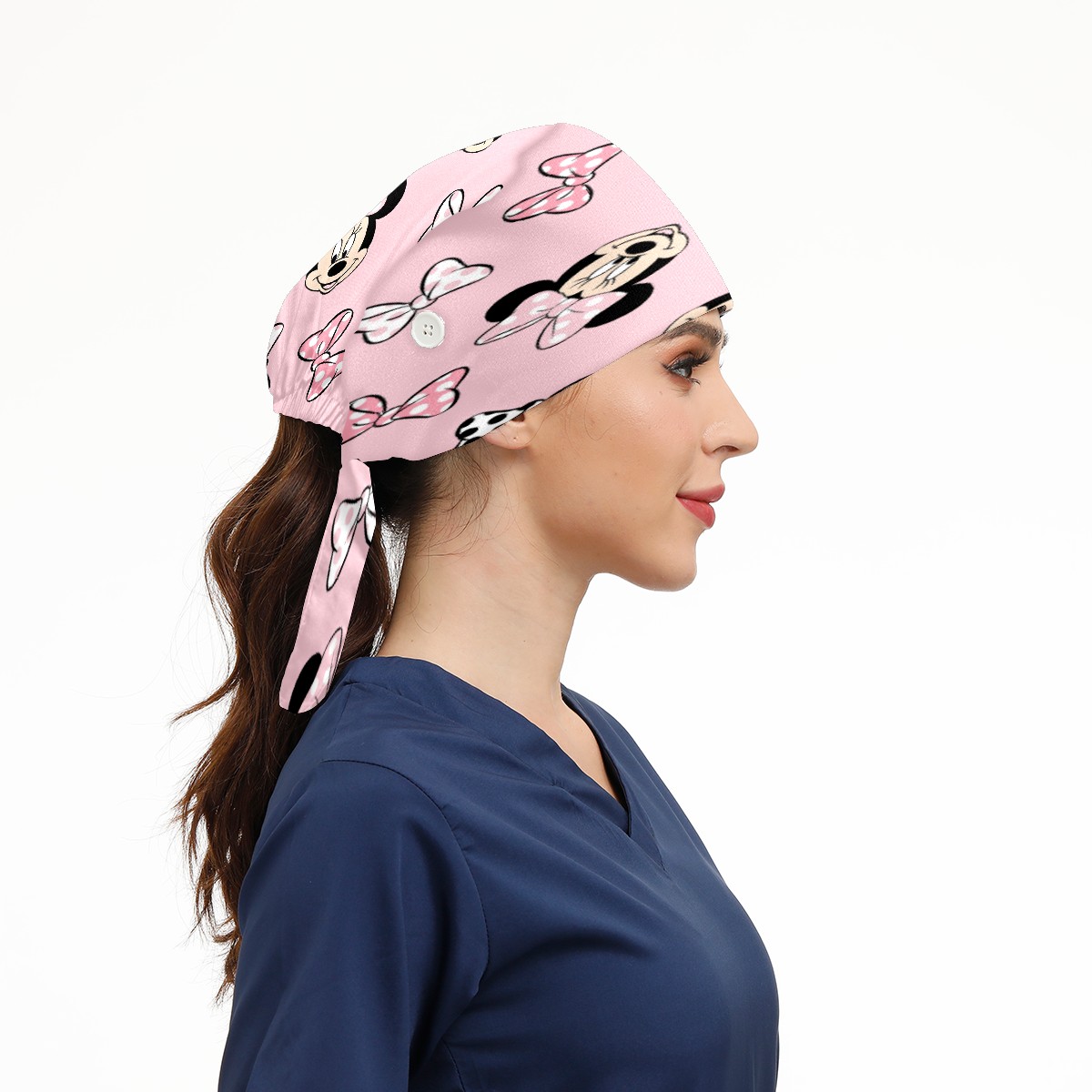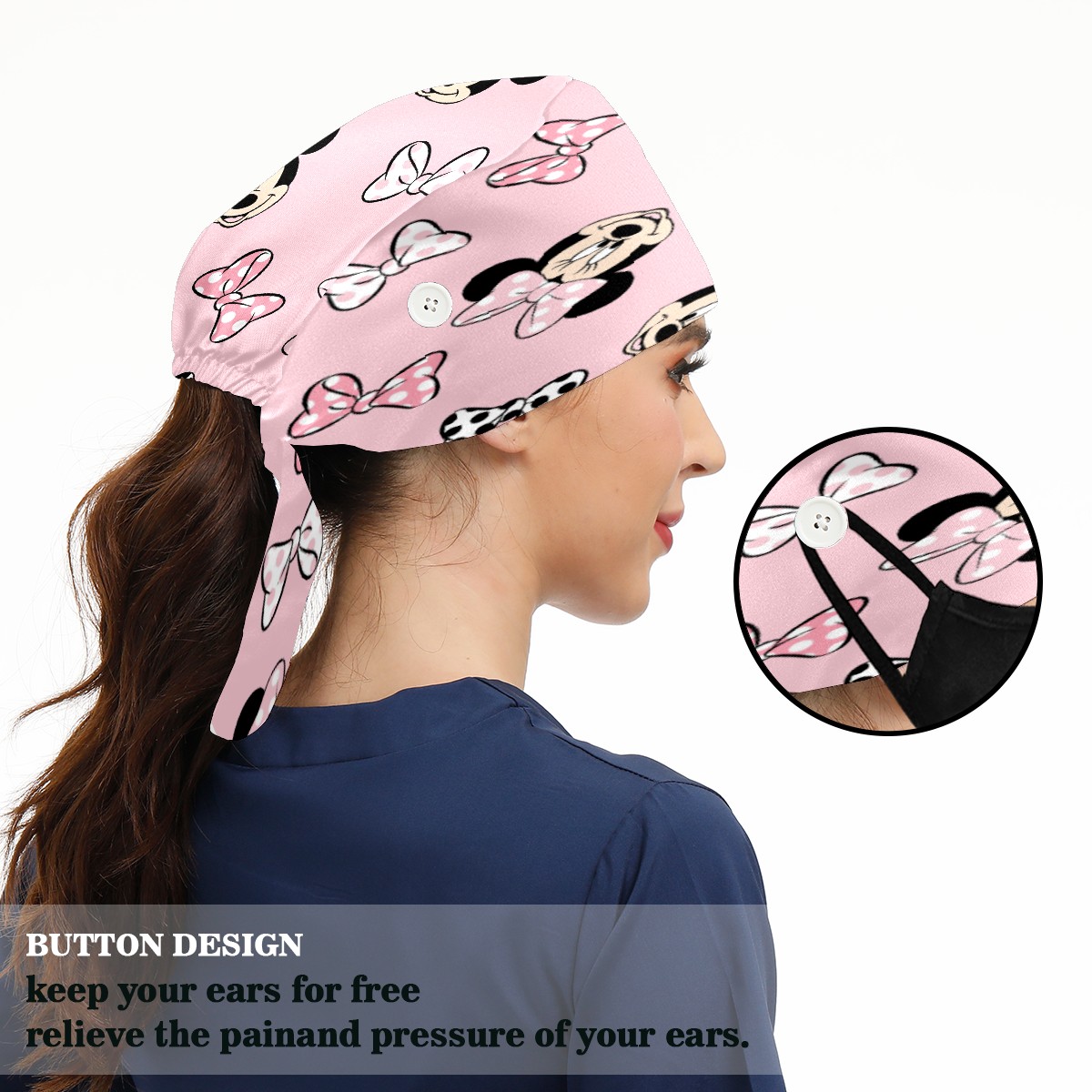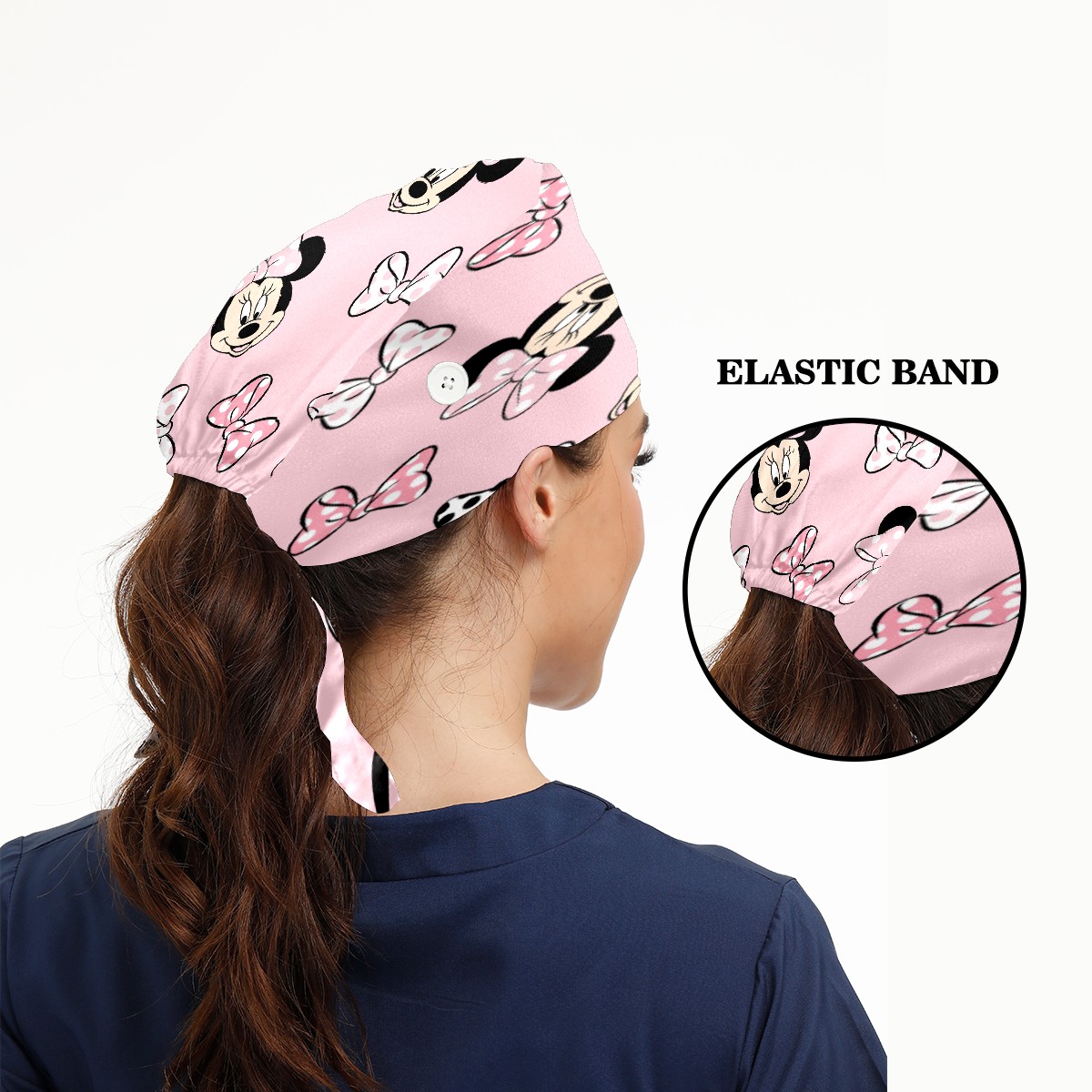 Fashion Working Cap Button and Sweatband Adjustable Elastic Mickey Mouse Minnie Pink Background Head Cover Hair Tie Back Work Hats for Women Men