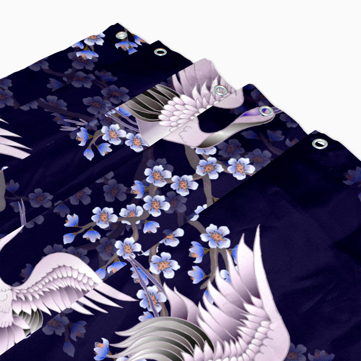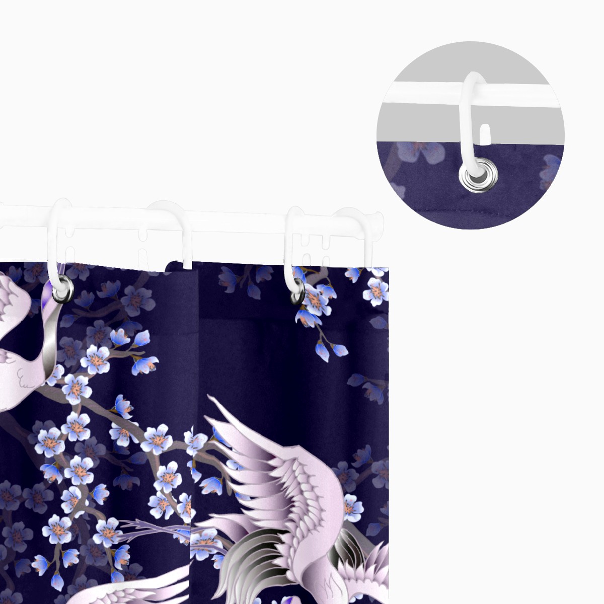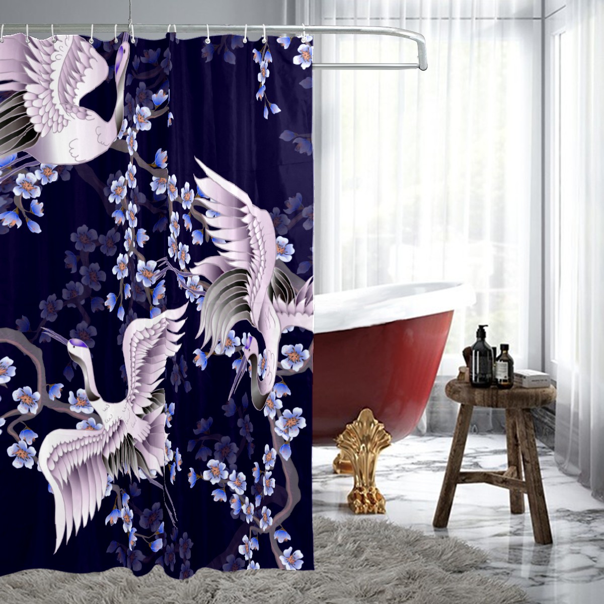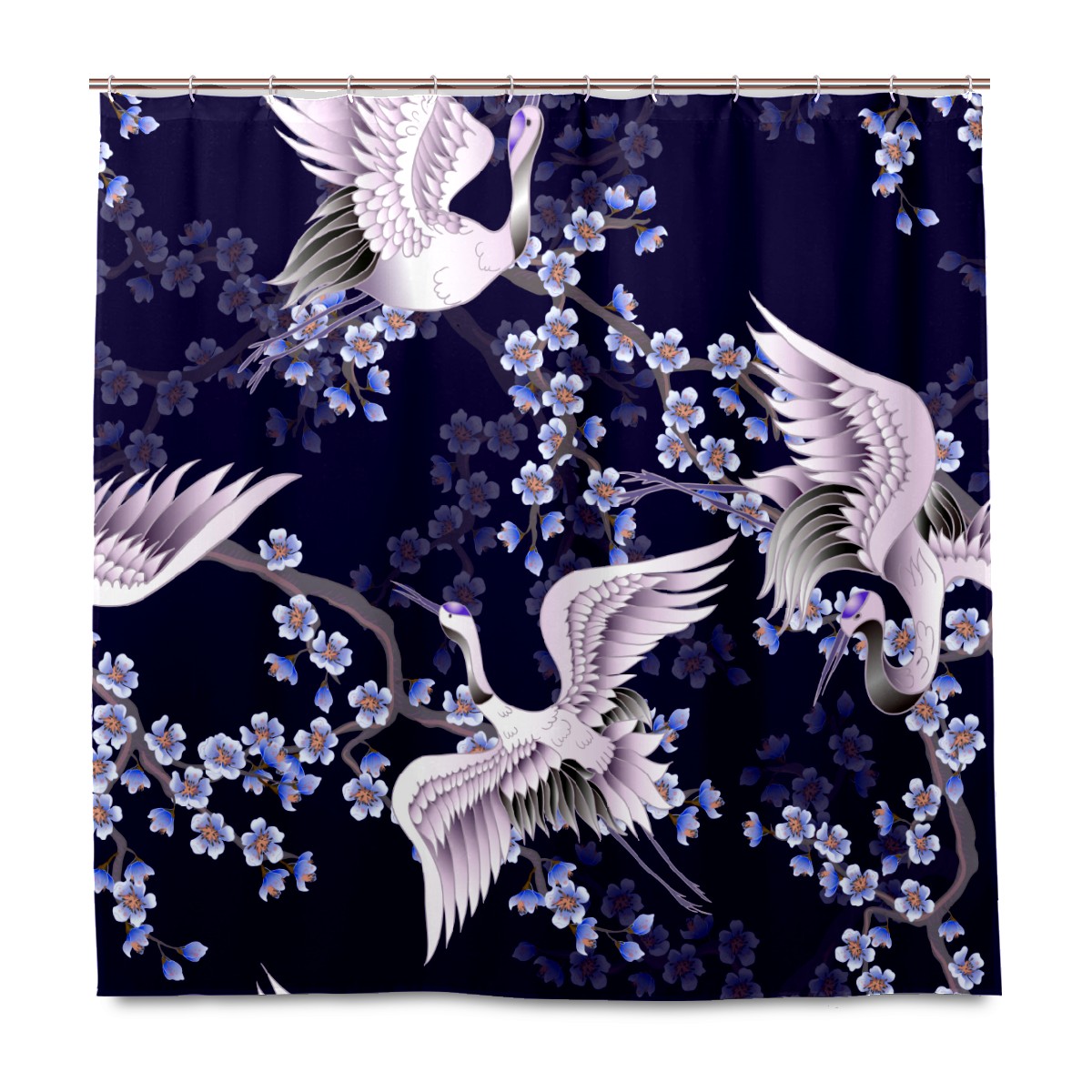 Shower Curtains for Bathroom Vintage Crane Cherry Blossom Pattern Waterproof Polyester Fabric 60 x 72 inches Decor Bathroom Curtains for Girls Boys with 12 Hooks