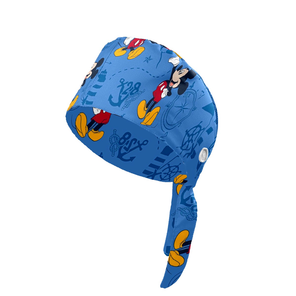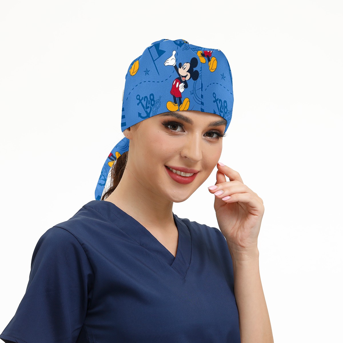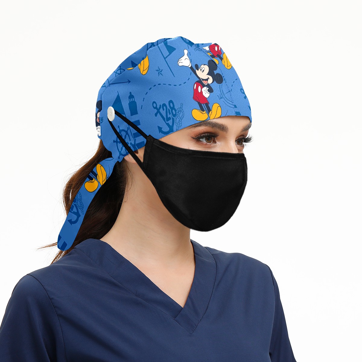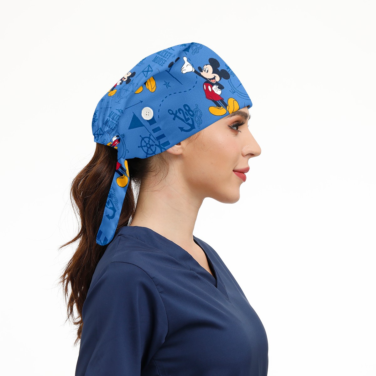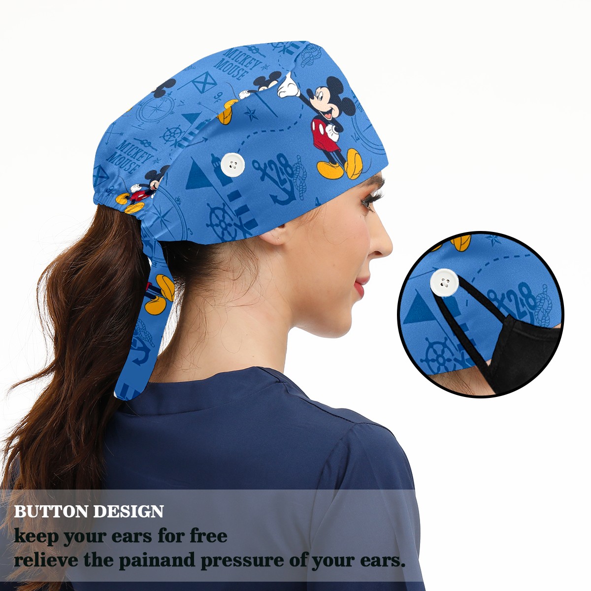 Fashion Working Cap Button and Sweatband Adjustable Elastic Mickey Mouse Captain Head Cover Hair Tie Back Work Hats for Women Men