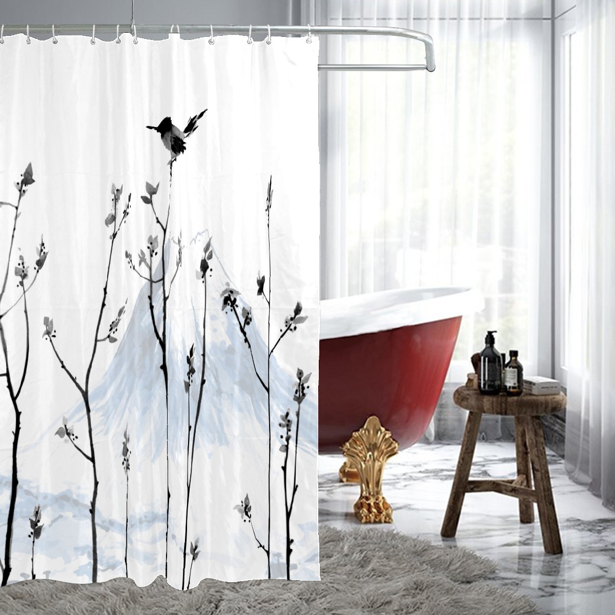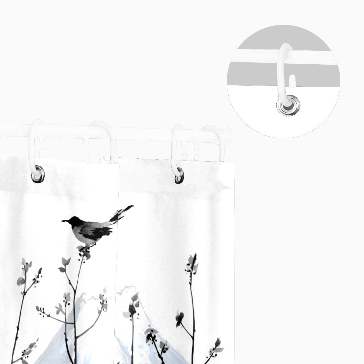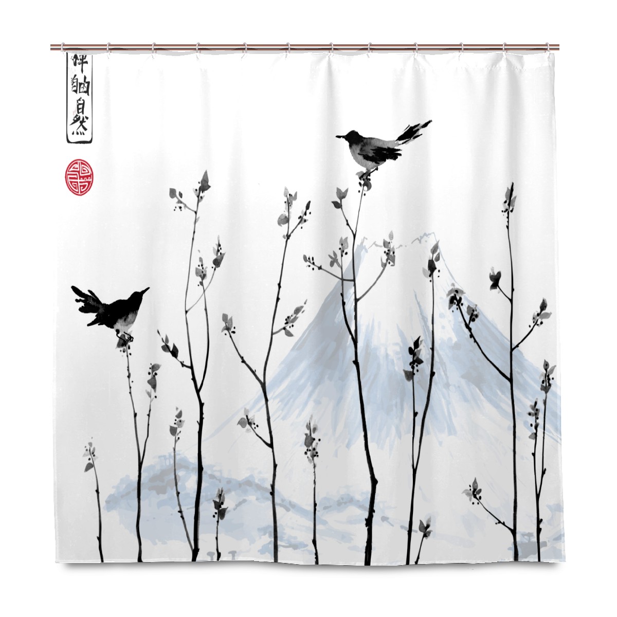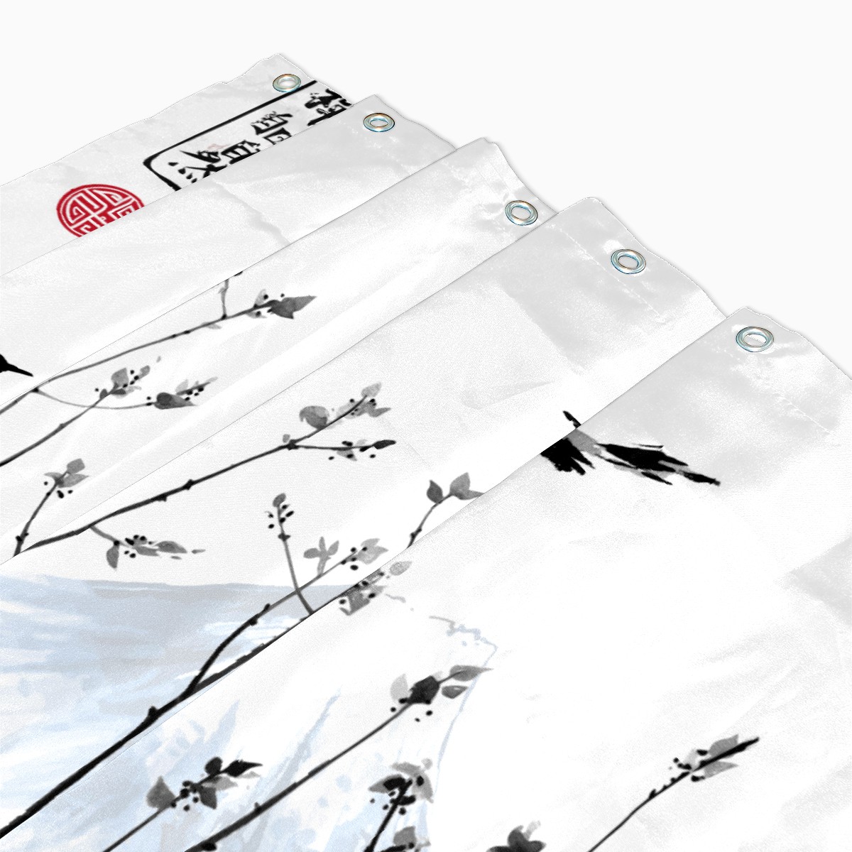 Shower Curtains for Bathroom Vintage Chinese Bird Moutain Tree Landscape Waterproof Polyester Fabric 60 x 72 inches Decor Bathroom Curtains for Girls Boys with 12 Hooks