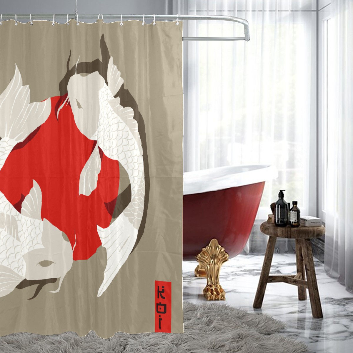 Shower Curtains for Bathroom Traditional Japanese Koi Fish Waterproof Polyester Fabric 60 x 72 inches Decor Bathroom Curtains for Girls Boys with 12 Hooks