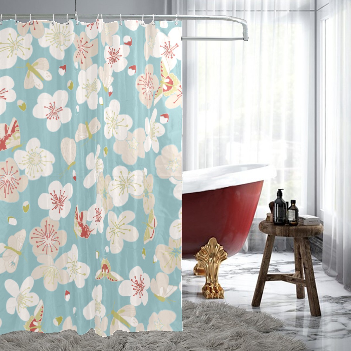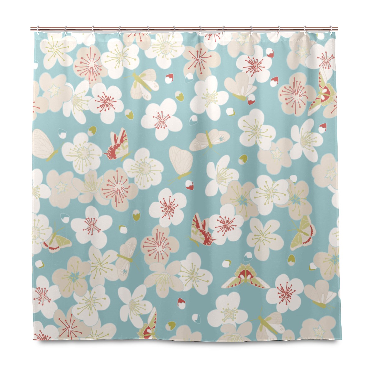 Shower Curtains for Bathroom Retro Japanse Style Cherry Blosooms Pattern Waterproof Polyester Fabric 60 x 72 inches Decor Bathroom Curtains for Girls Boys with 12 Hooks