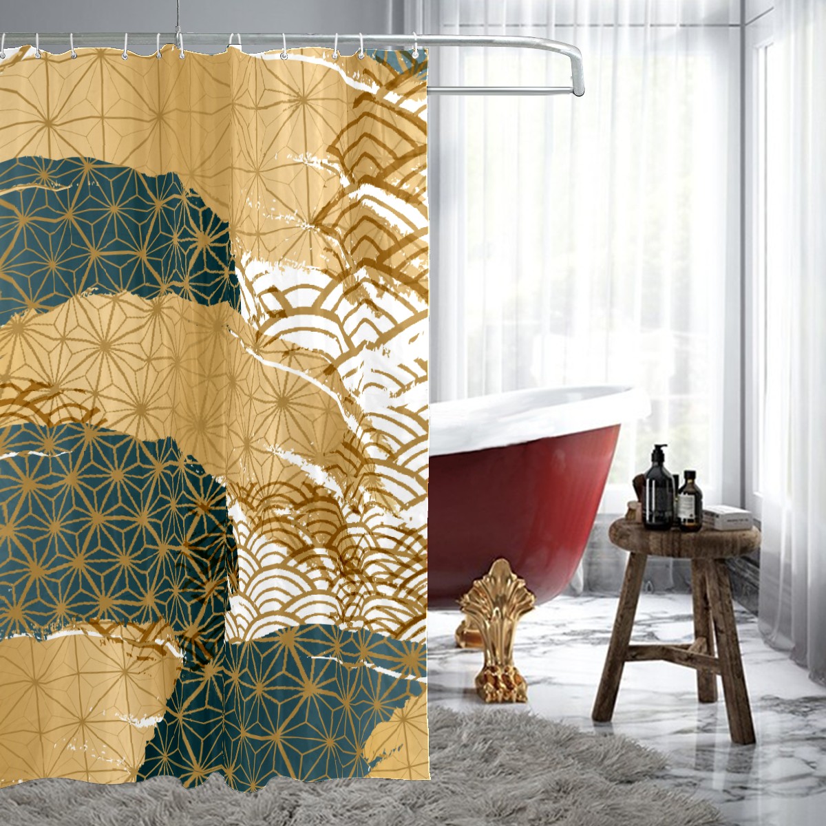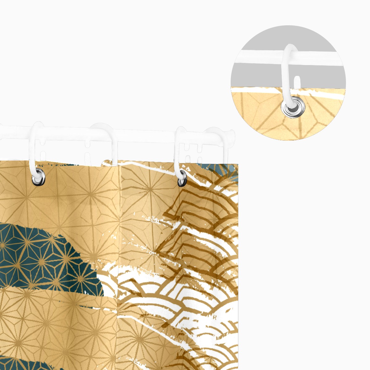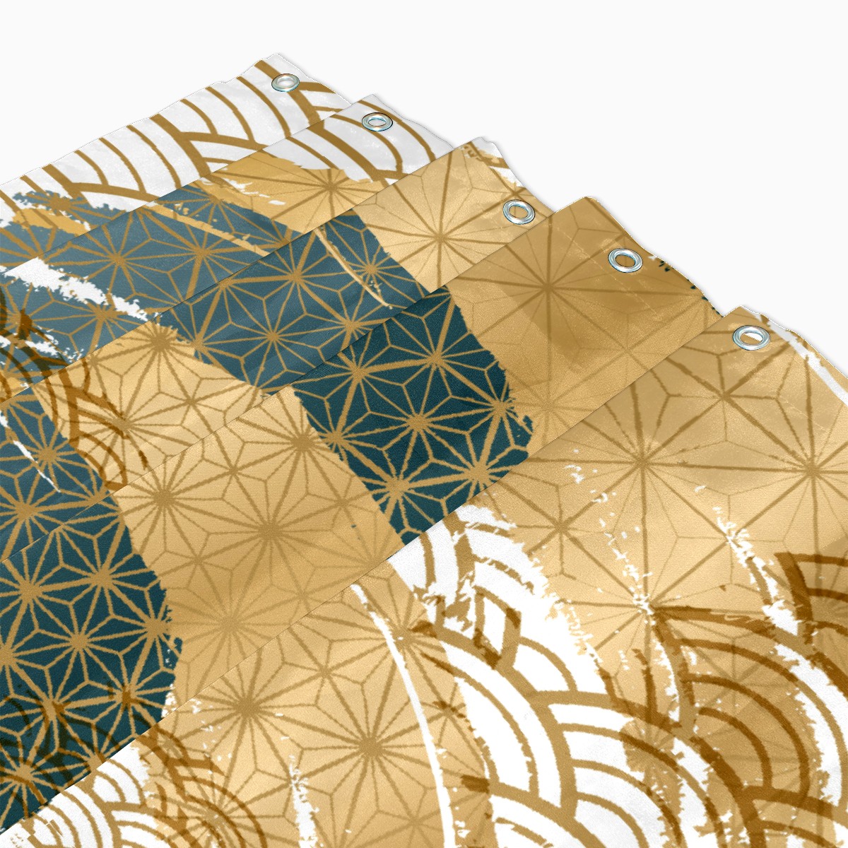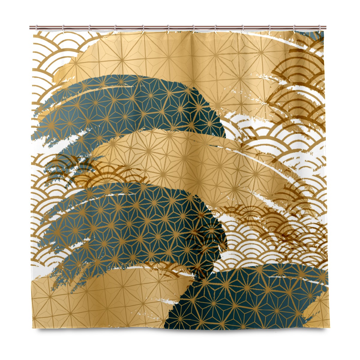 Shower Curtains for Bathroom Retro Japanese Wave Fish Scale Waterproof Polyester Fabric 60 x 72 inches Decor Bathroom Curtains for Girls Boys with 12 Hooks