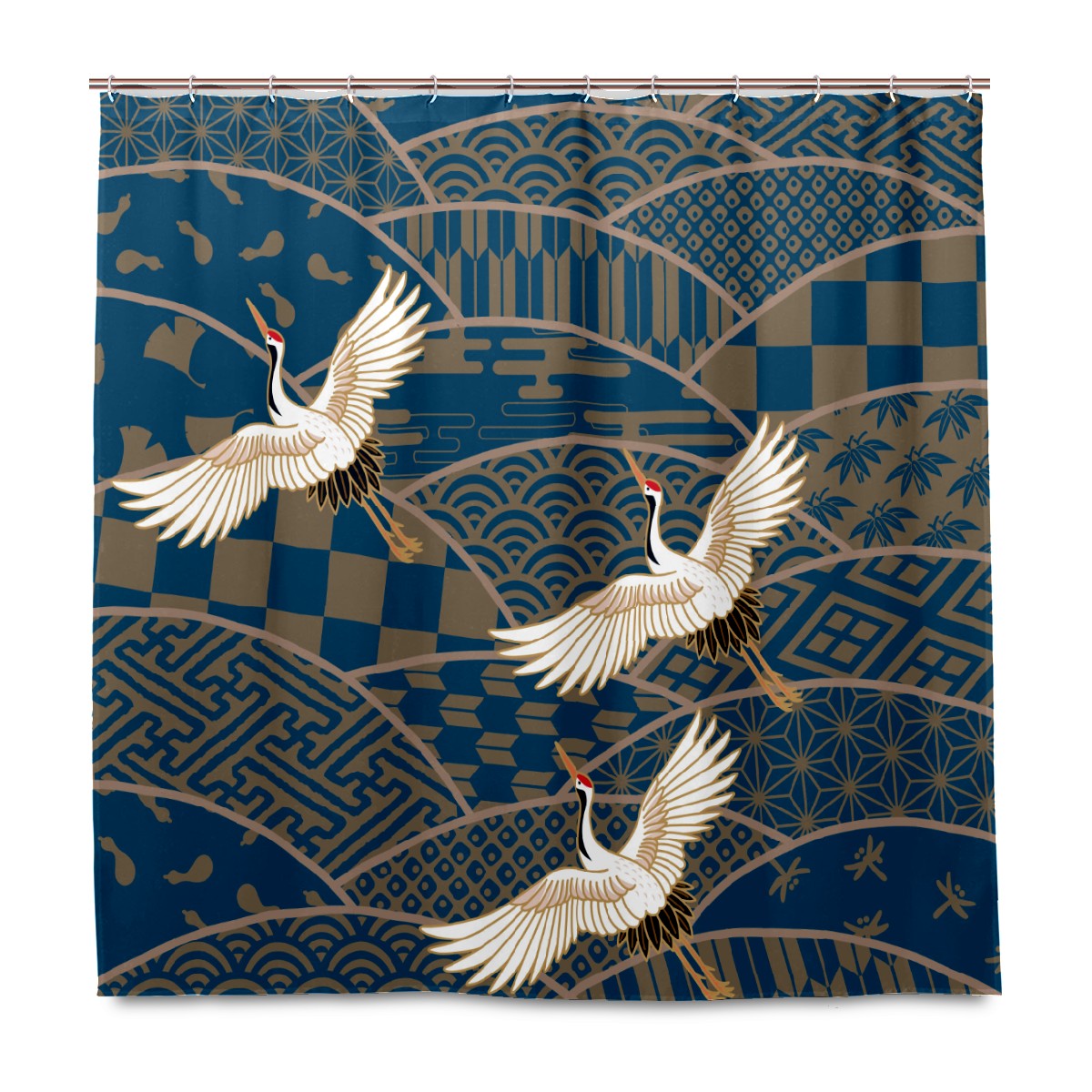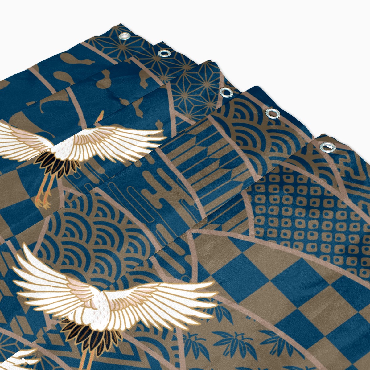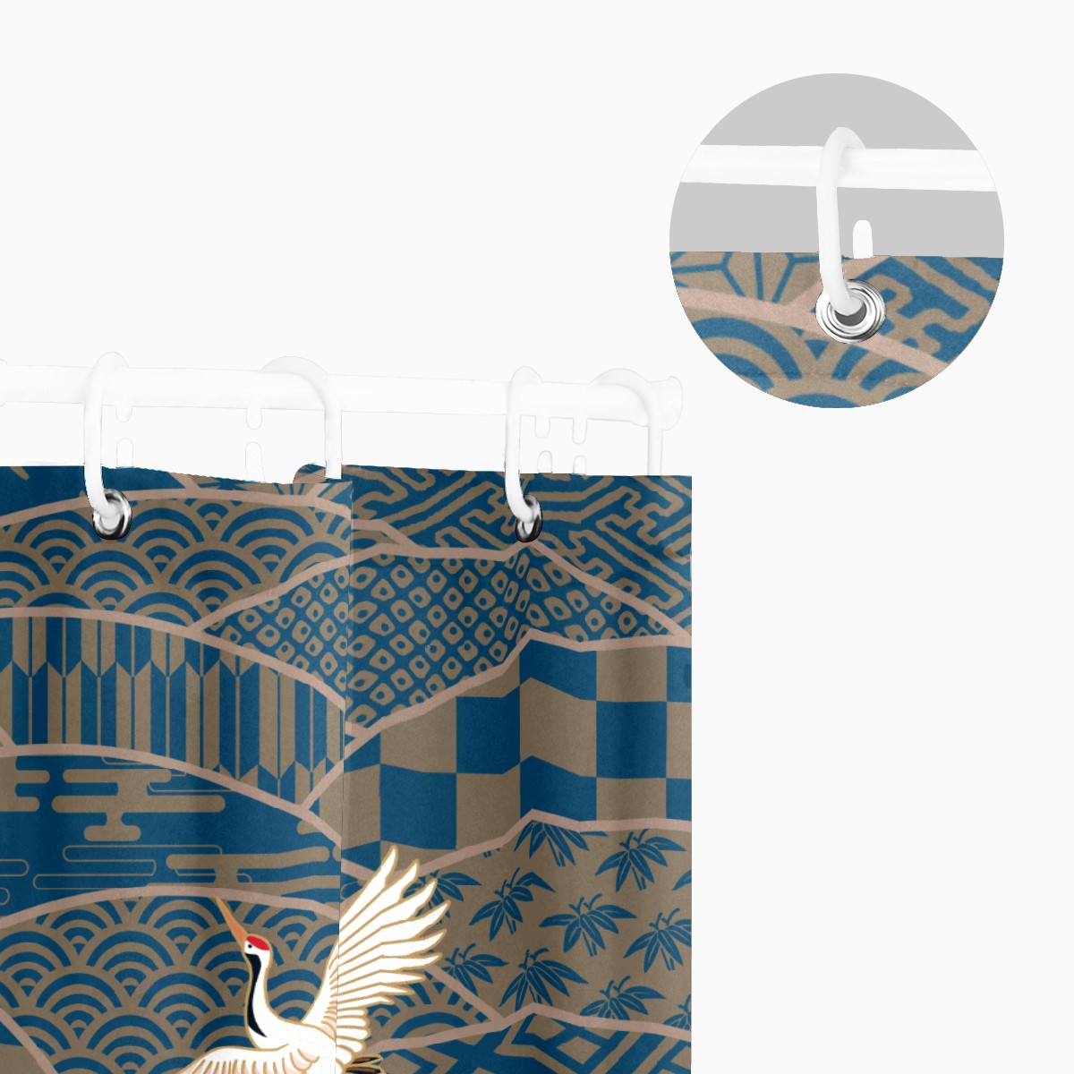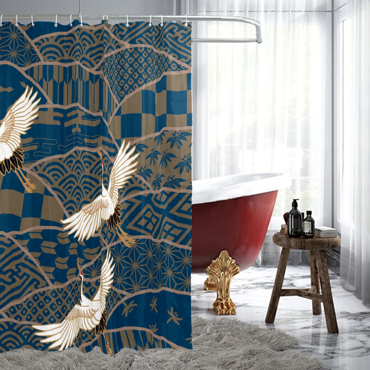 Shower Curtains for Bathroom Retro Japanese Crane Blue Waterproof Polyester Fabric 60 x 72 inches Decor Bathroom Curtains for Girls Boys with 12 Hooks