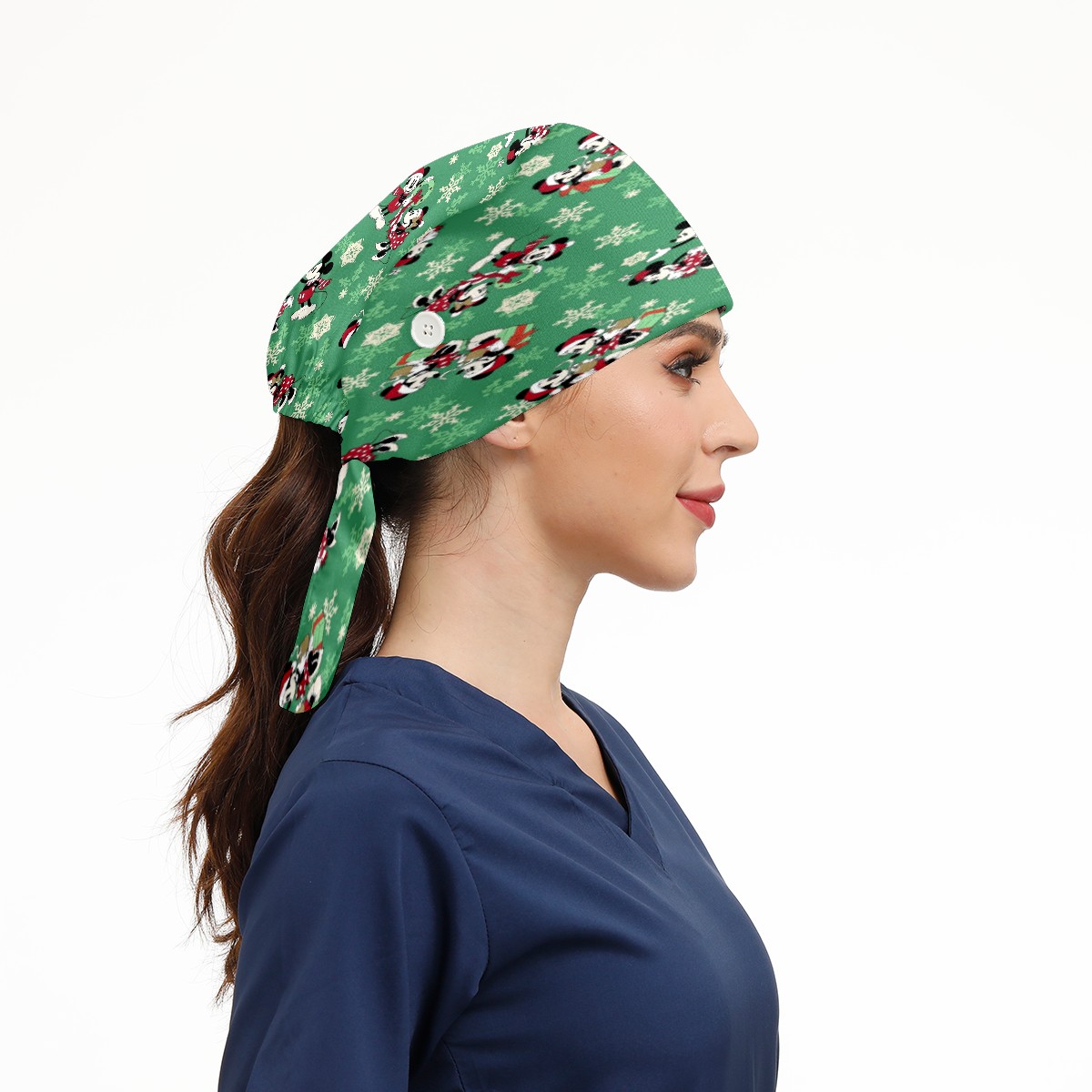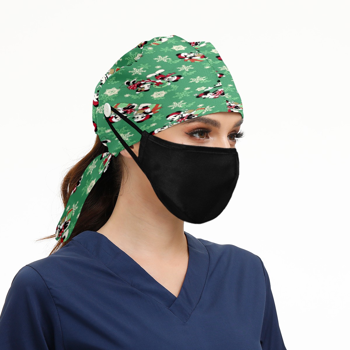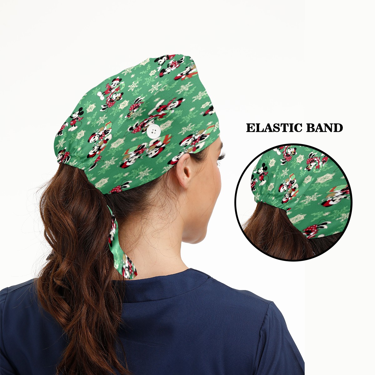 Fashion Working Cap Button and Sweatband Adjustable Elastic Christmas Mickey Mouse Minnie Head Cover Hair Tie Back Work Hats for Women Men