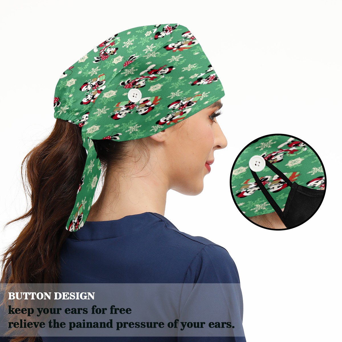 <p>Women and Mens head cover with Sweatband and Button</p><p>Material&nbsp;: 50% cotton+50% polyester</p><p>Size:&nbsp;One size fits most,&nbsp;suitable for both men and women.</p><p>Working Cap with Buttons Design:special&nbsp;design with buttons to protect ears for those who are wearing ma-sk. These new styles hats will allow you to put the straps around the buttons instead of your ears, make you feel more comfortable.</p><p>Sweat-absorbent towel cloth inside: Built-in&nbsp;100% cotton sweatband, keep the forehead clean after long time working.</p><p>Widely occasion: Widely used in beauty spa, house cleaning, cooking, sleeping, or for cos-play&nbsp;party.</p><p>Lovely pattern: lovely&nbsp;3D printed&nbsp;pattern,&nbsp;it's perfect for gift to you family&nbsp;and friends.</p>