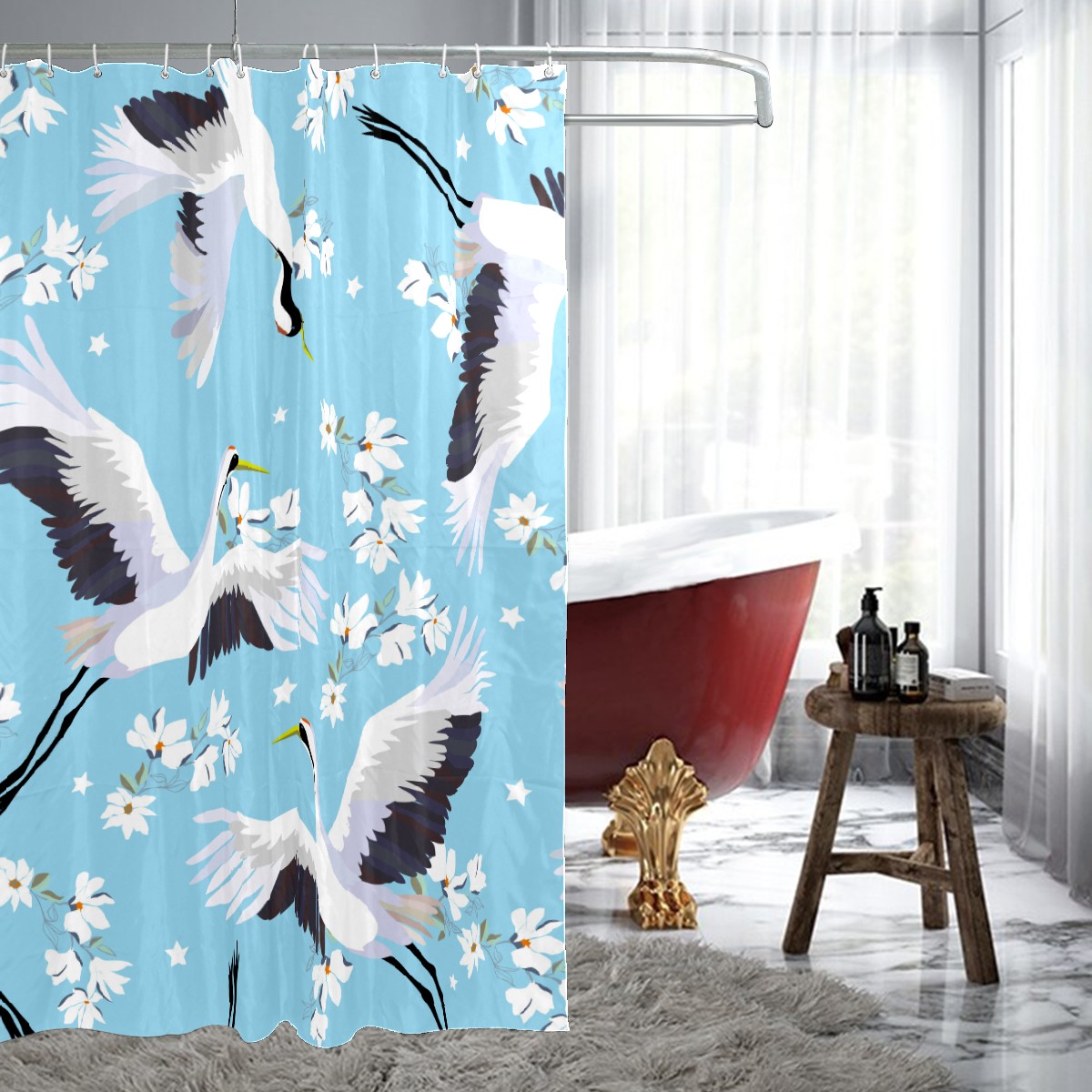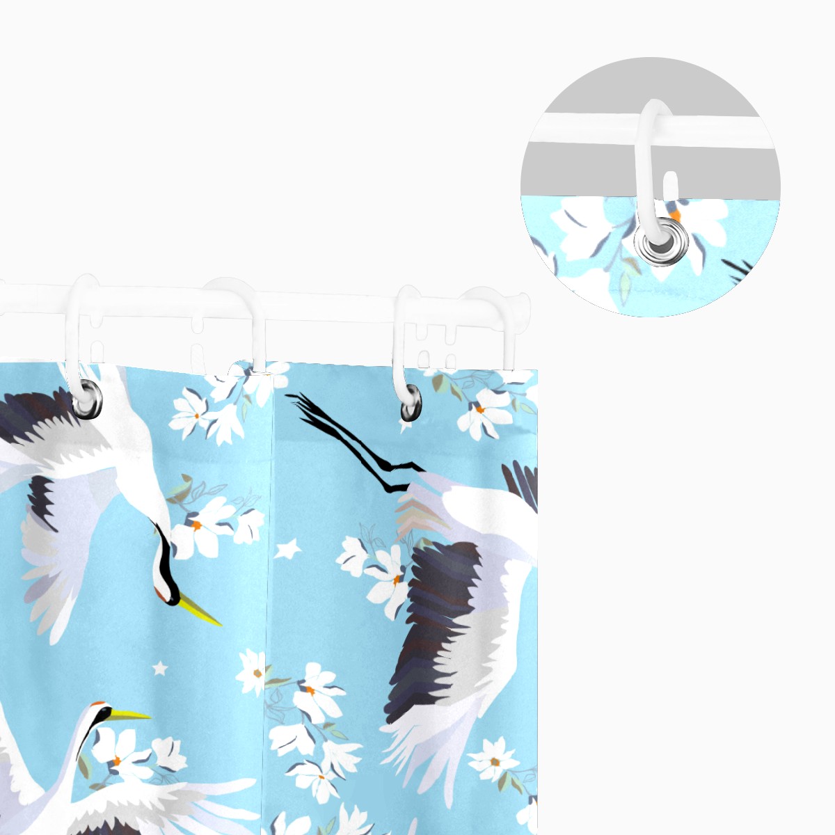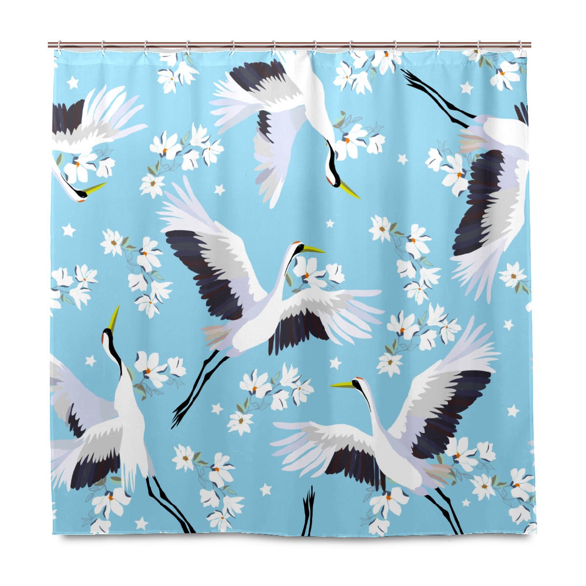 Shower Curtains for Bathroom Retro Crane Cherry Blossom Pattern Waterproof Polyester Fabric 60 x 72 inches Decor Bathroom Curtains for Girls Boys with 12 Hooks