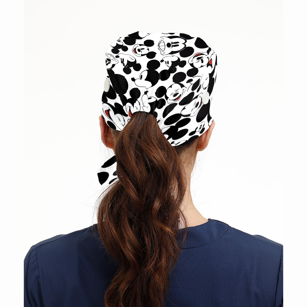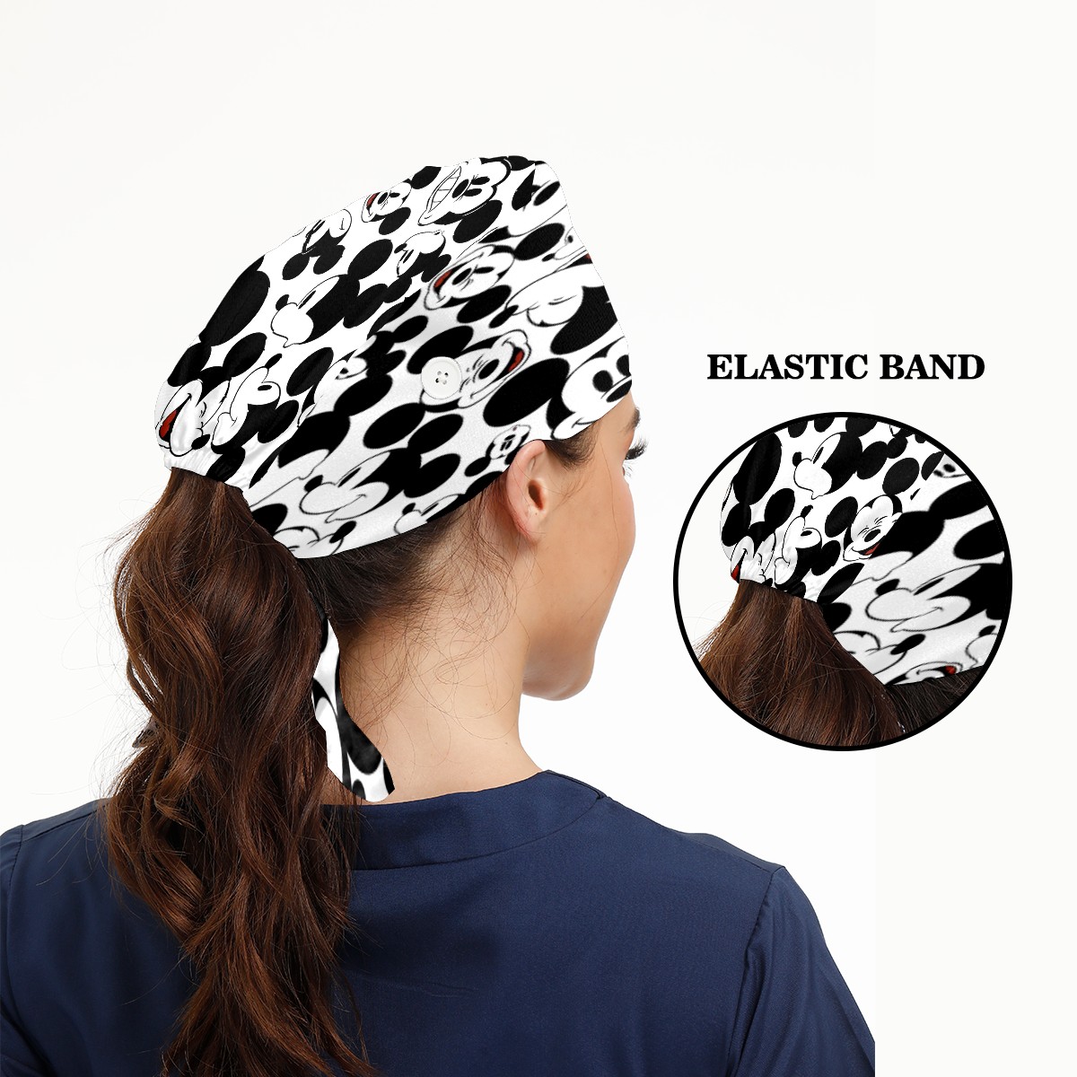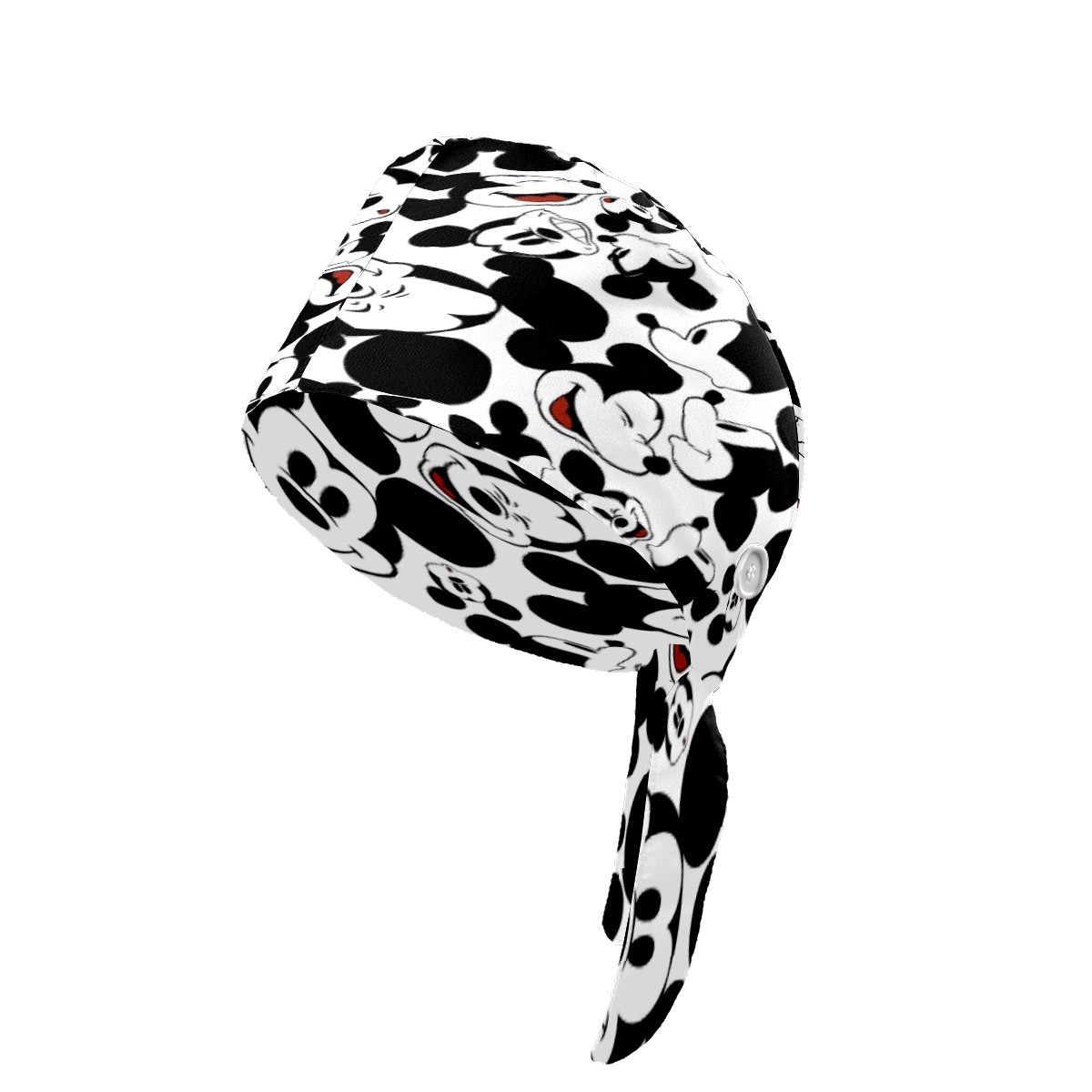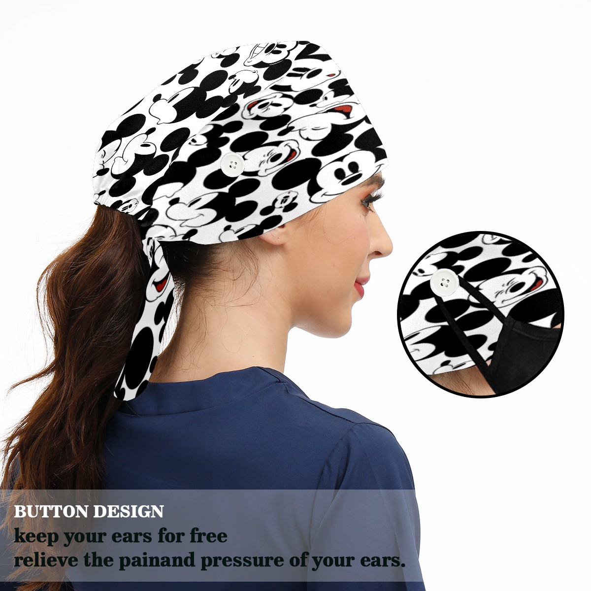 Fashion Working Cap Button and Sweatband Adjustable Elastic Happy Mickey Mouse Black White Head Cover Hair Tie Back Work Hats for Women Men