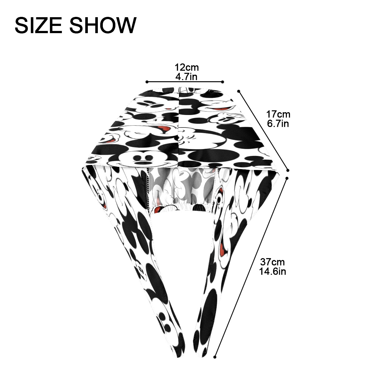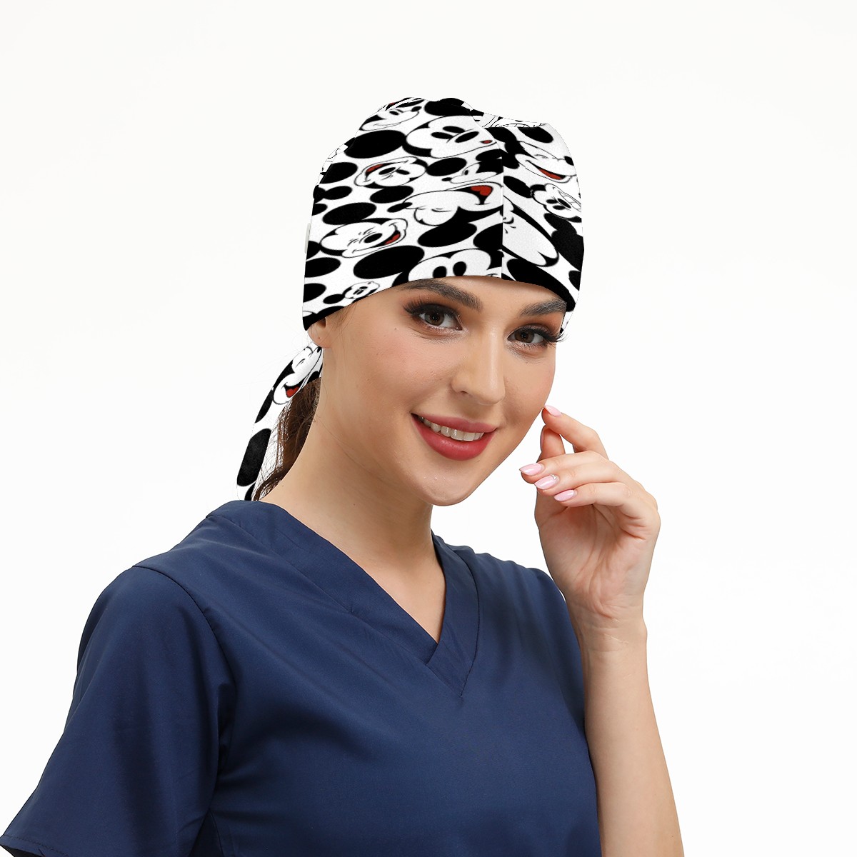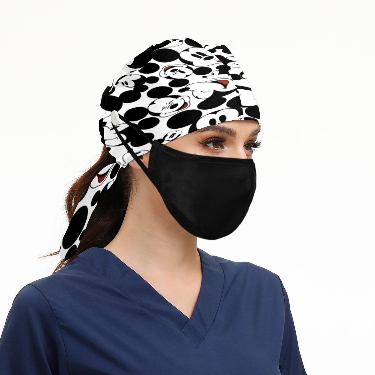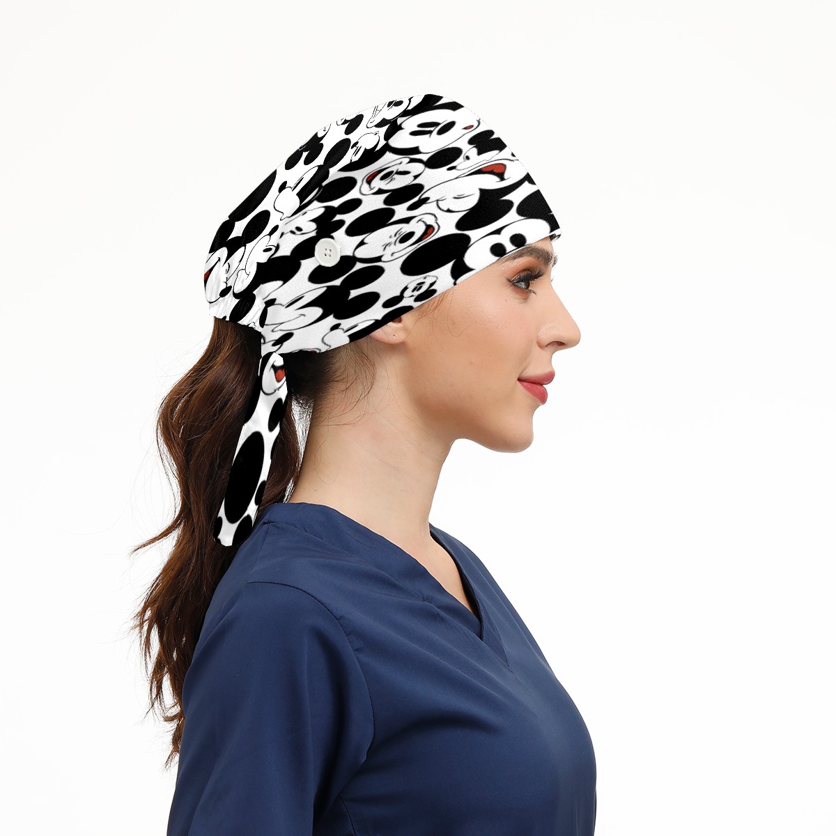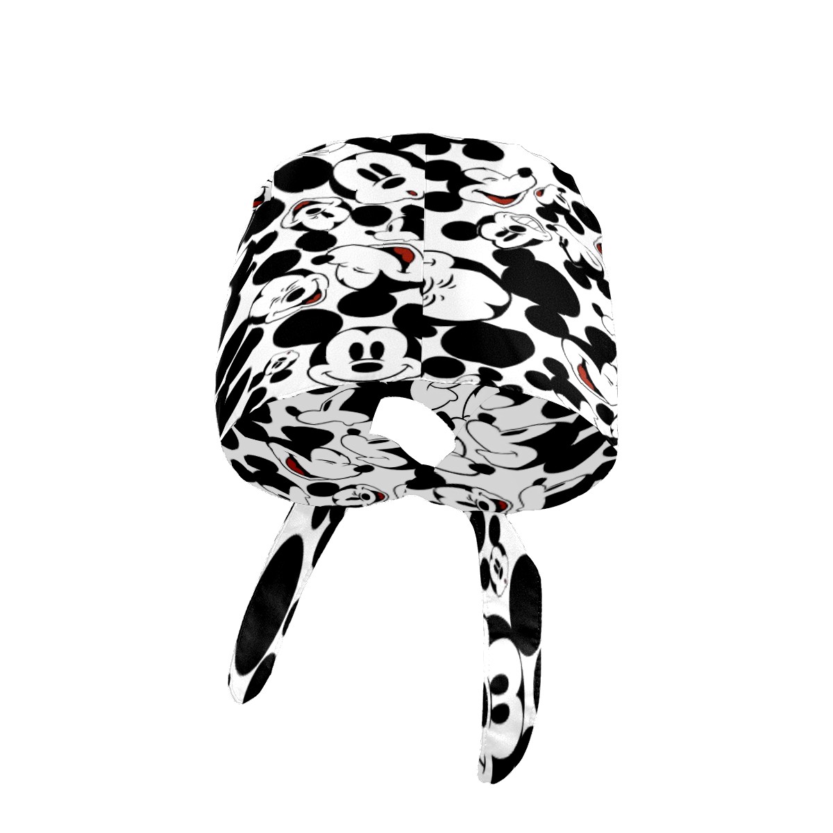Fashion Working Cap Button and Sweatband Adjustable Elastic Happy Mickey Mouse Black White Head Cover Hair Tie Back Work Hats for Women Men