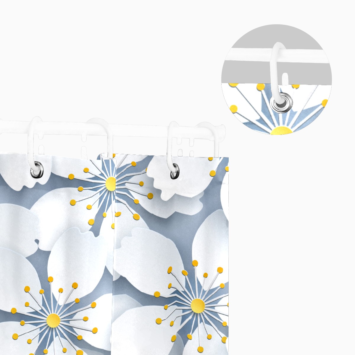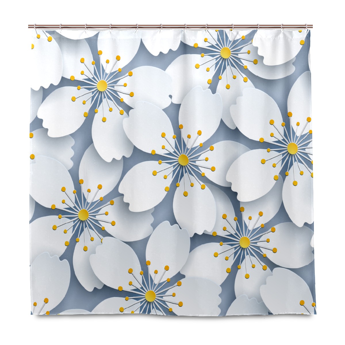 Shower Curtains for Bathroom Japanese White Cherry Blossom Pattern Waterproof Polyester Fabric 60 x 72 inches Decor Bathroom Curtains for Girls Boys with 12 Hooks