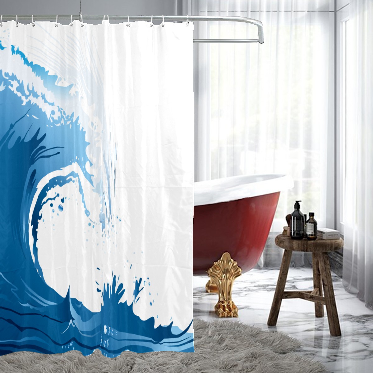 Shower Curtains for Bathroom Japanese Wave Outain Landscape Waterproof Polyester Fabric 60 x 72 inches Decor Bathroom Curtains for Girls Boys with 12 Hooks