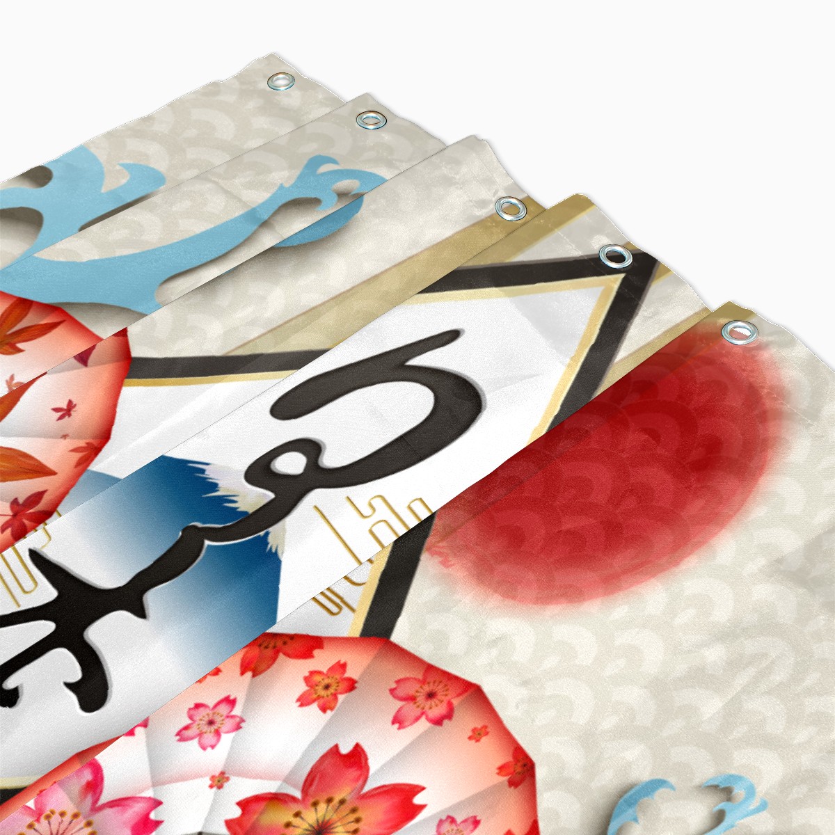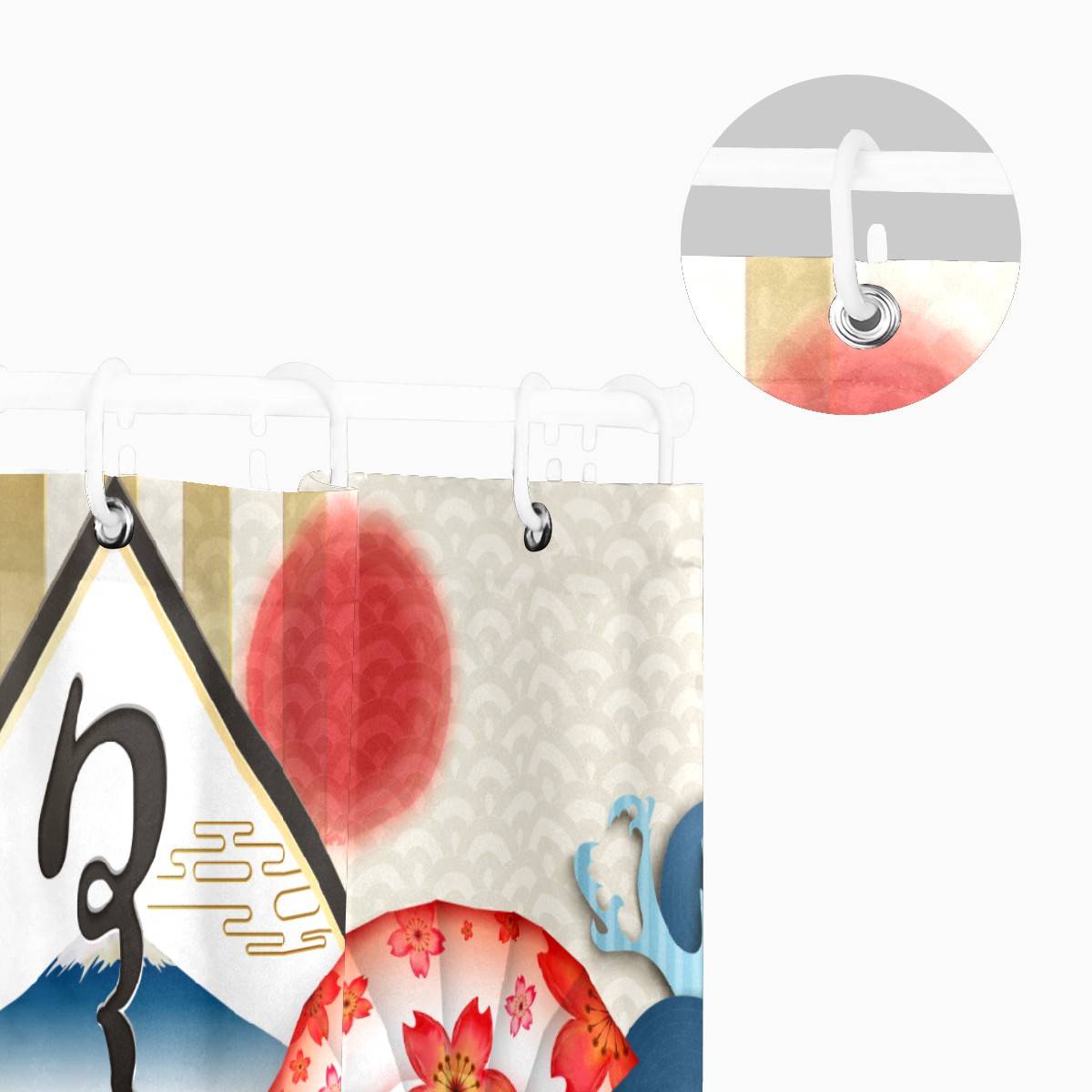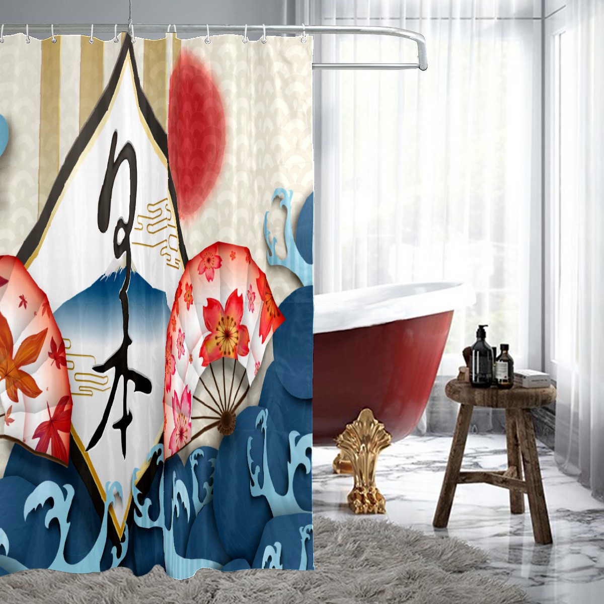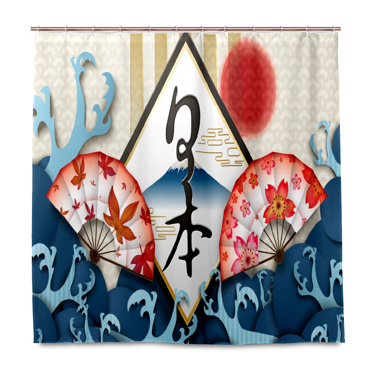 Shower Curtains for Bathroom Japanese Style Sun Fan Blossoms Wave Waterproof Polyester Fabric 60 x 72 inches Decor Bathroom Curtains for Girls Boys with 12 Hooks