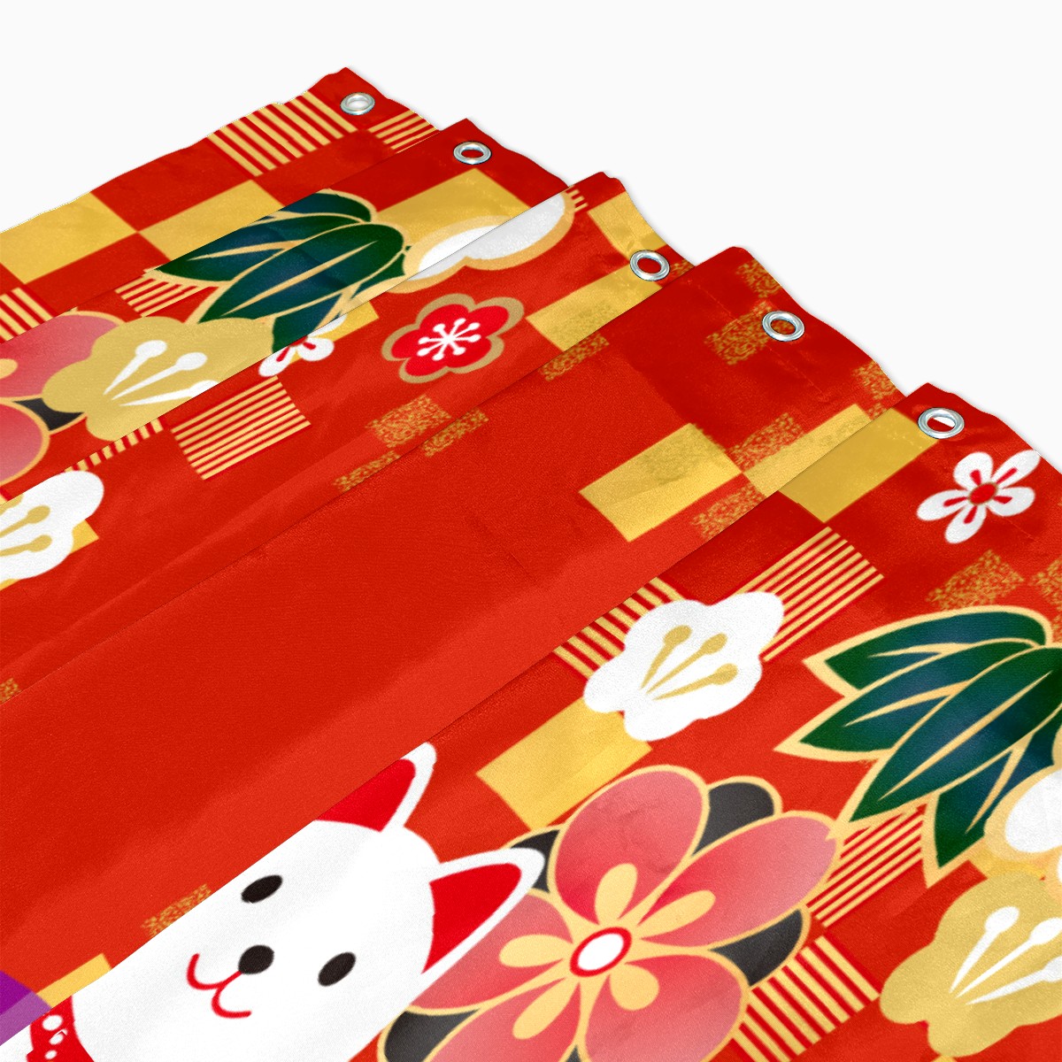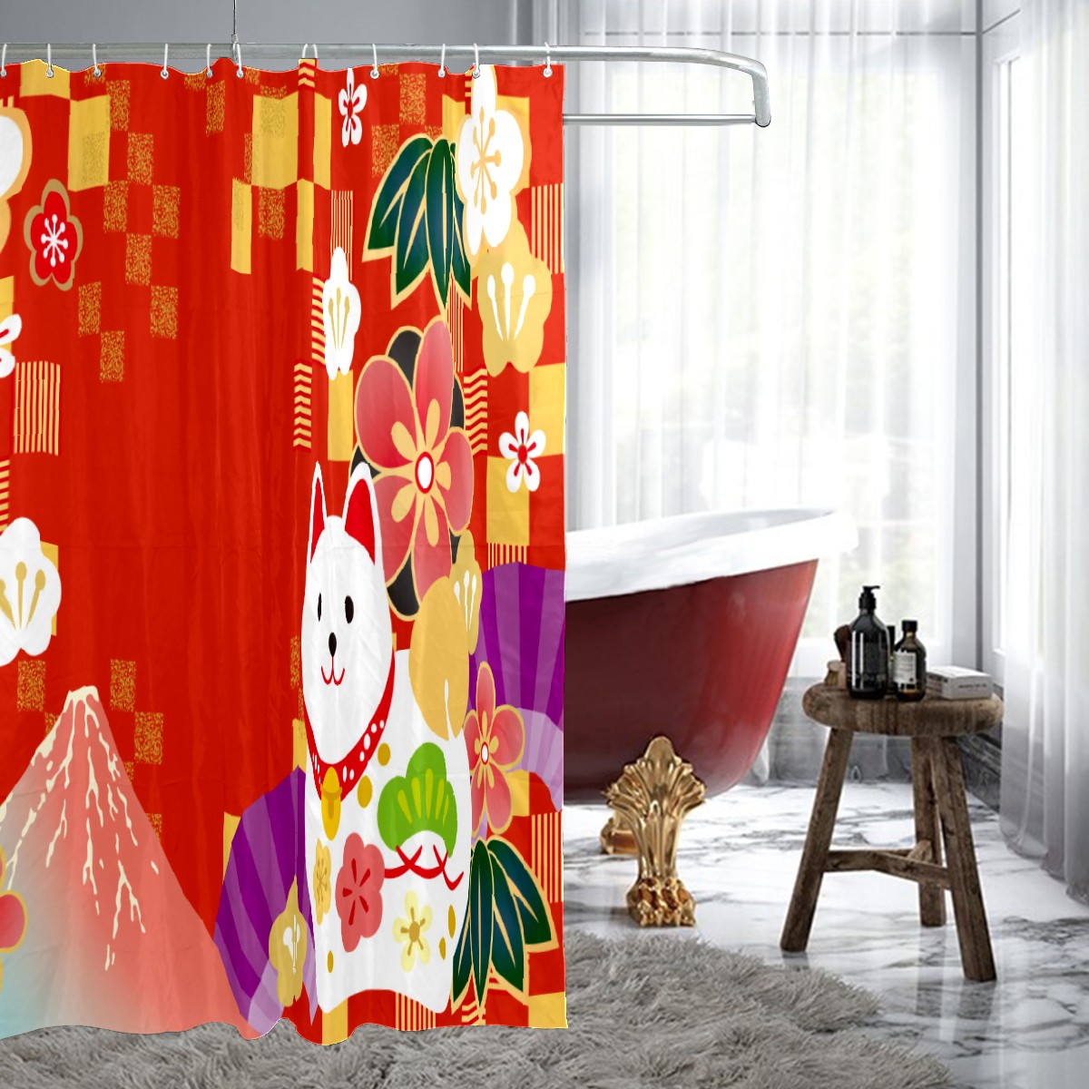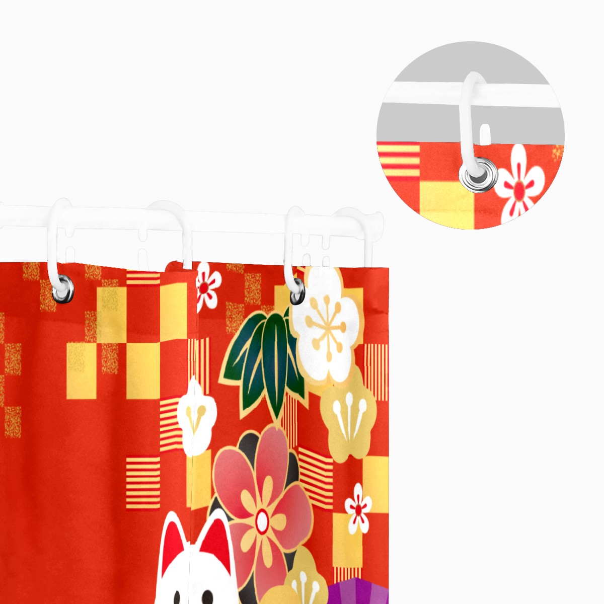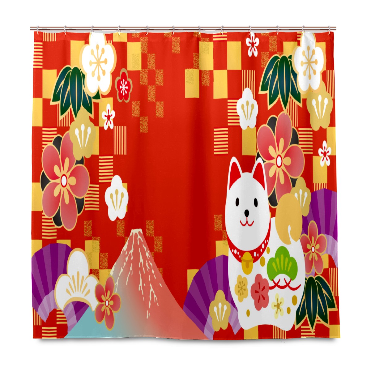 Shower Curtains for Bathroom Japanese Style Floral Lucky Cat Waterproof Polyester Fabric 60 x 72 inches Decor Bathroom Curtains for Girls Boys with 12 Hooks
