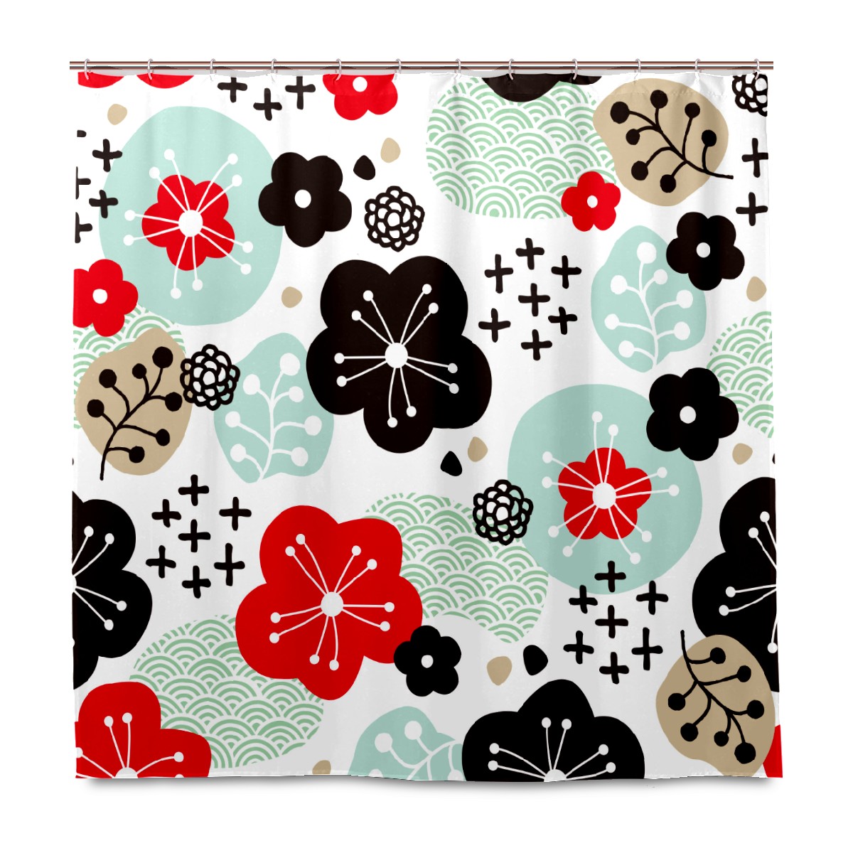 Shower Curtains for Bathroom Japanese Retro Cherry Blossoms Floral Pattern Waterproof Polyester Fabric 60 x 72 inches Decor Bathroom Curtains for Girls Boys with 12 Hooks