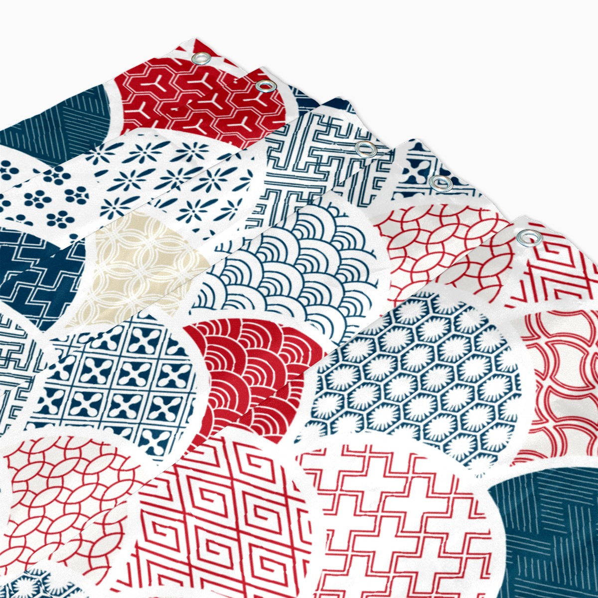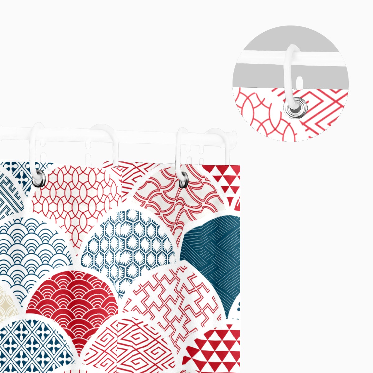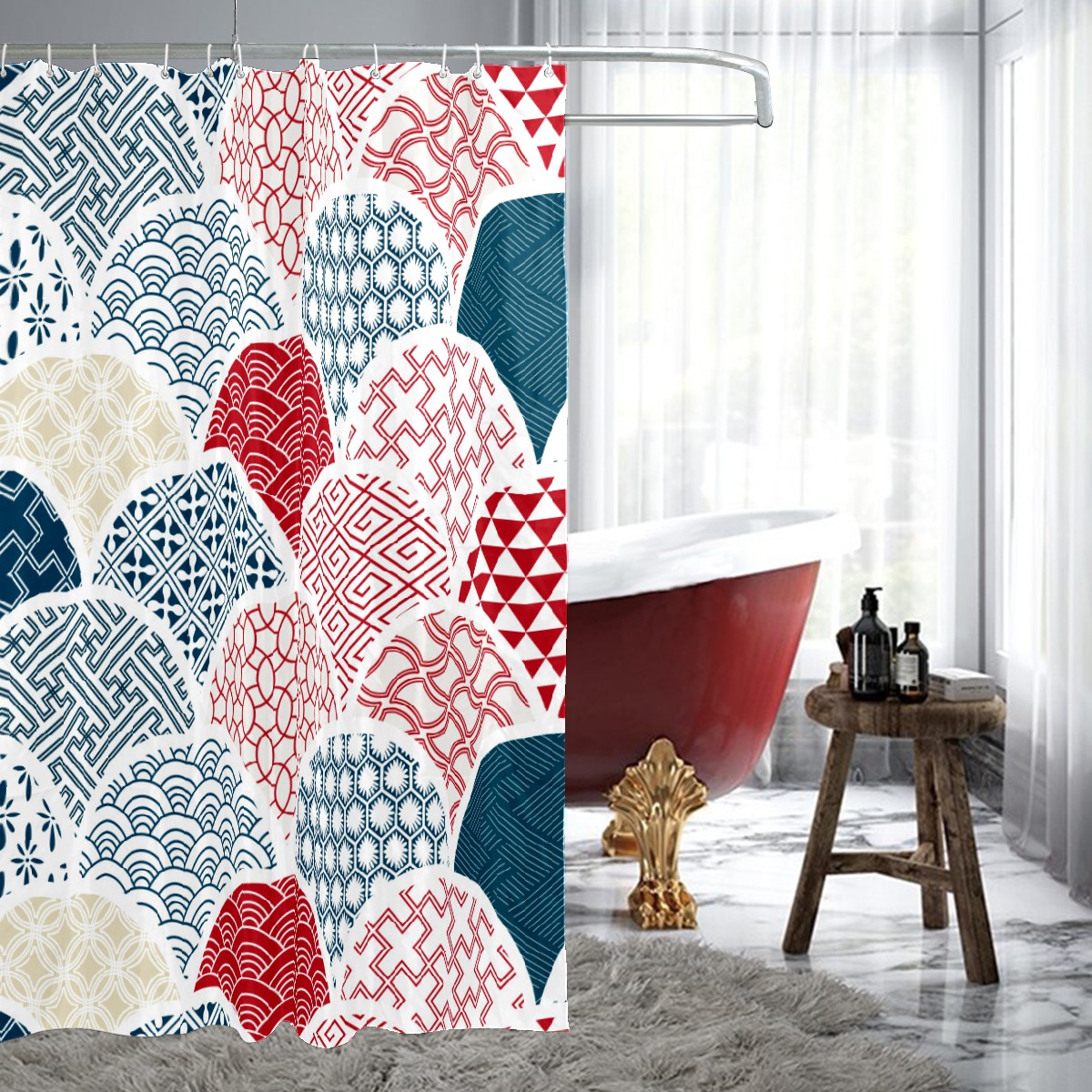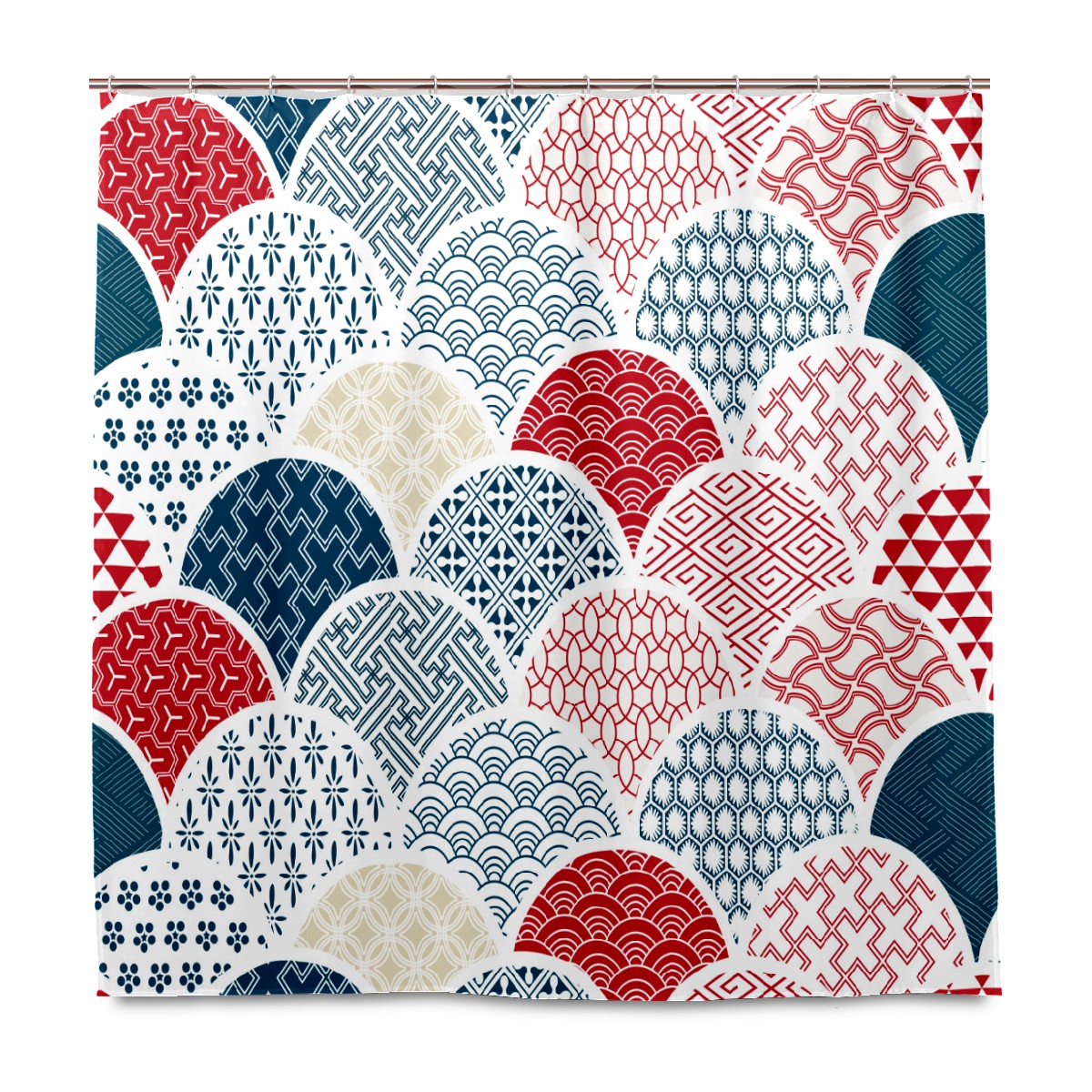 Shower Curtains for Bathroom Japanese Colorful Fish Scale Pattern Waterproof Polyester Fabric 60 x 72 inches Decor Bathroom Curtains for Girls Boys with 12 Hooks