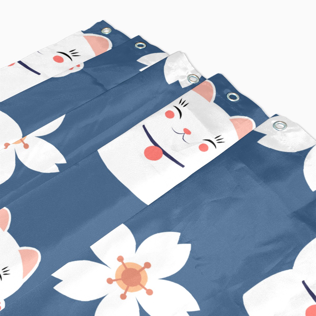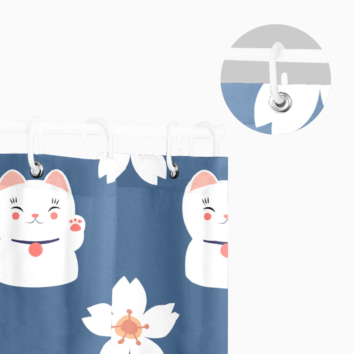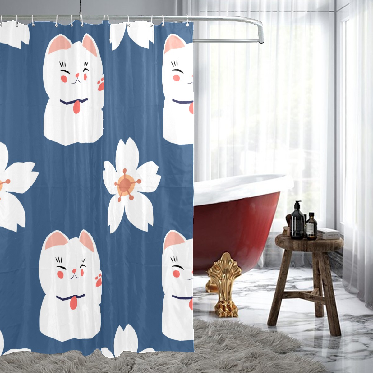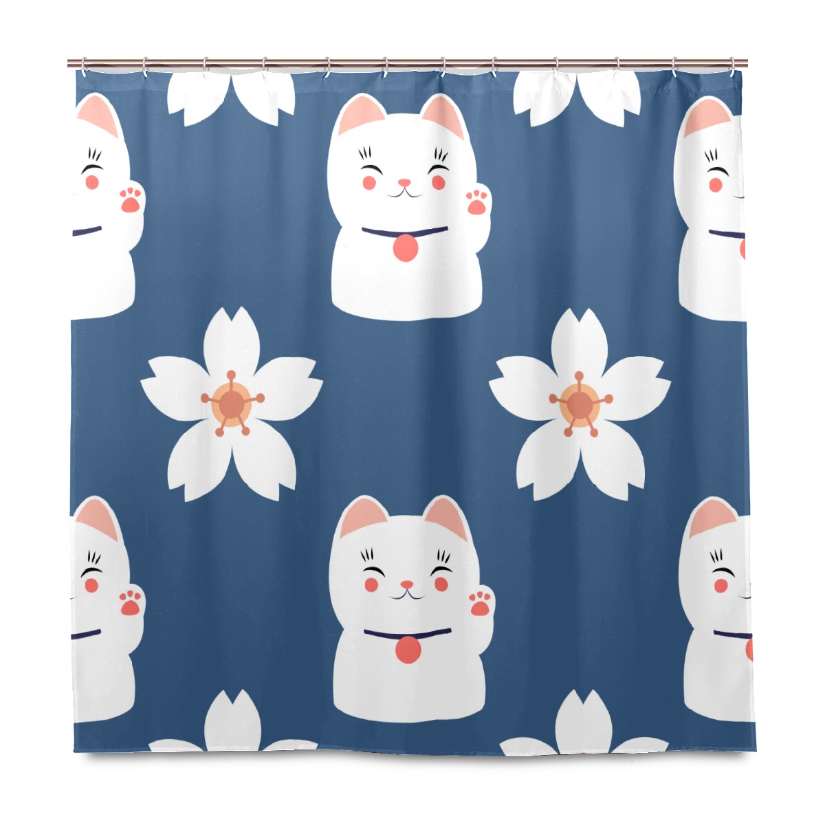 Shower Curtains for Bathroom Japanese Lucky Cats Cherry Blossoms Pattern Waterproof Polyester Fabric 60 x 72 inches Decor Bathroom Curtains for Girls Boys with 12 Hooks