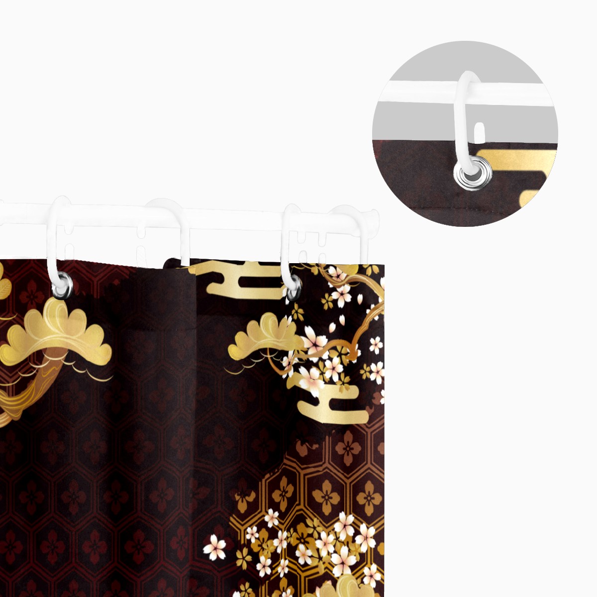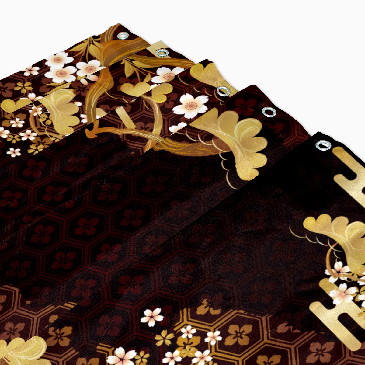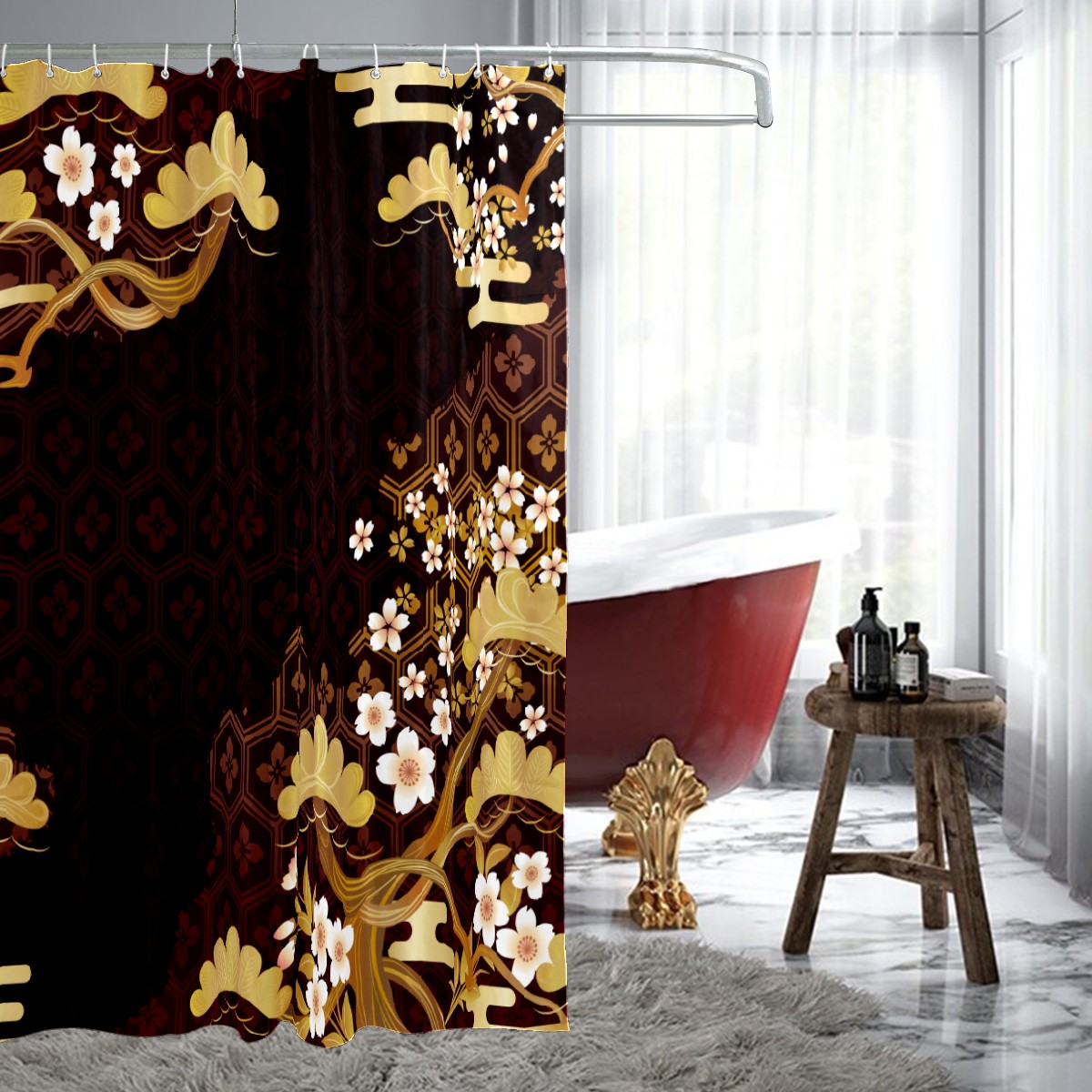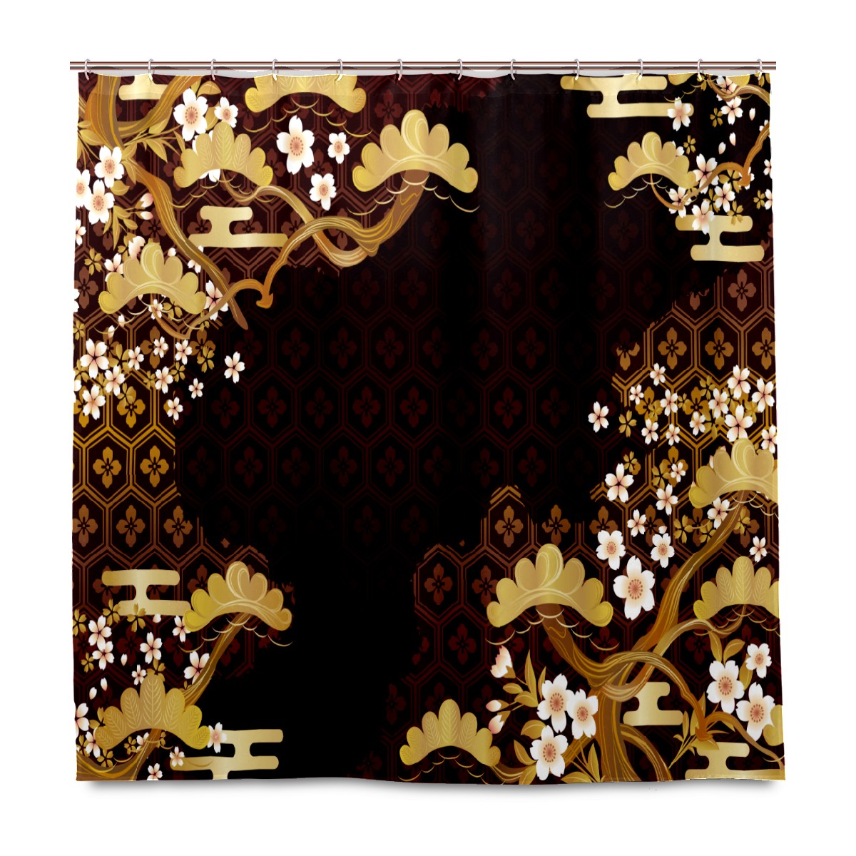 Shower Curtains for Bathroom Japanese Golden Floral Pattern Waterproof Polyester Fabric 60 x 72 inches Decor Bathroom Curtains for Girls Boys with 12 Hooks