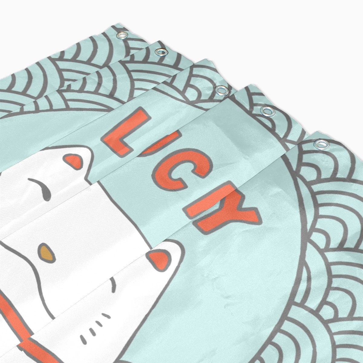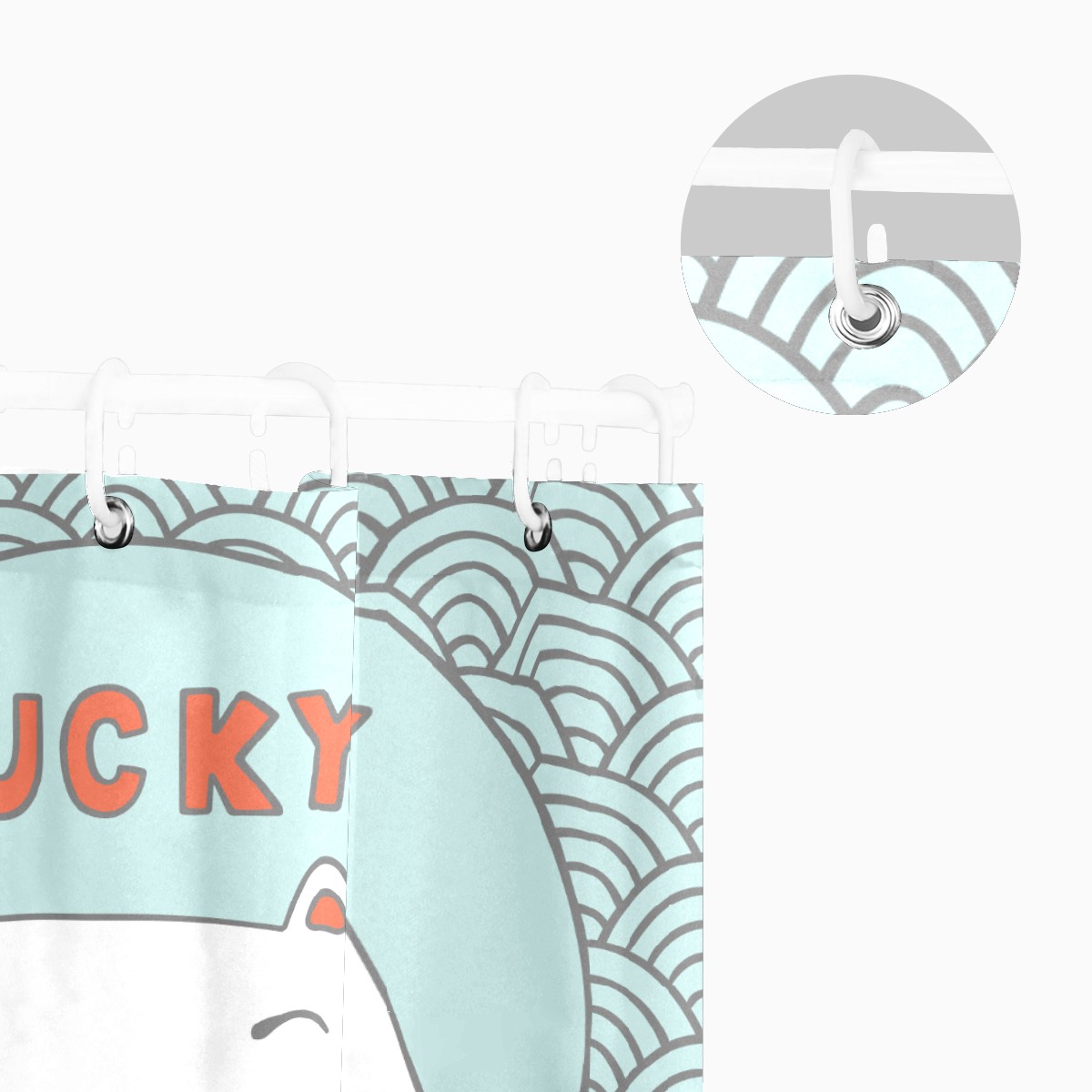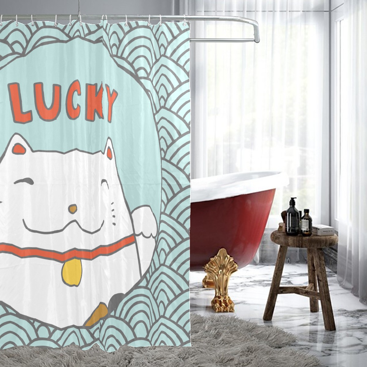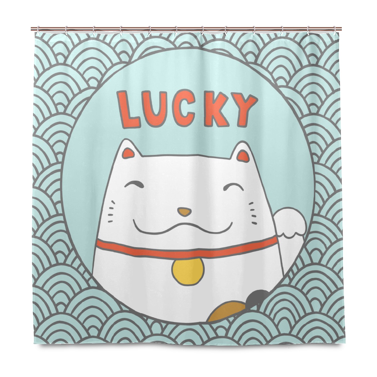 Shower Curtains for Bathroom Cute Lucaky Cat Japanese Scale Waterproof Polyester Fabric 60 x 72 inches Decor Bathroom Curtains for Girls Boys with 12 Hooks