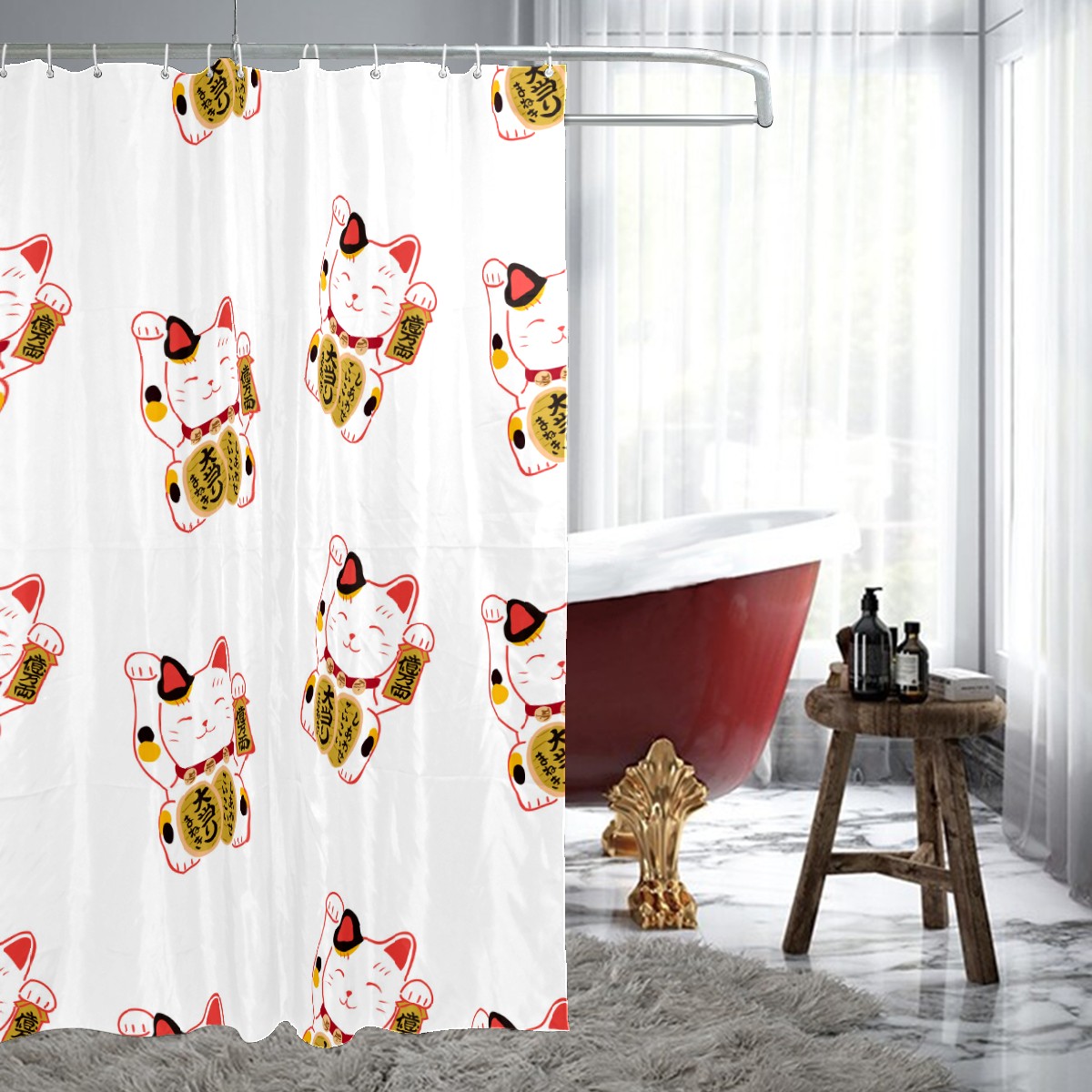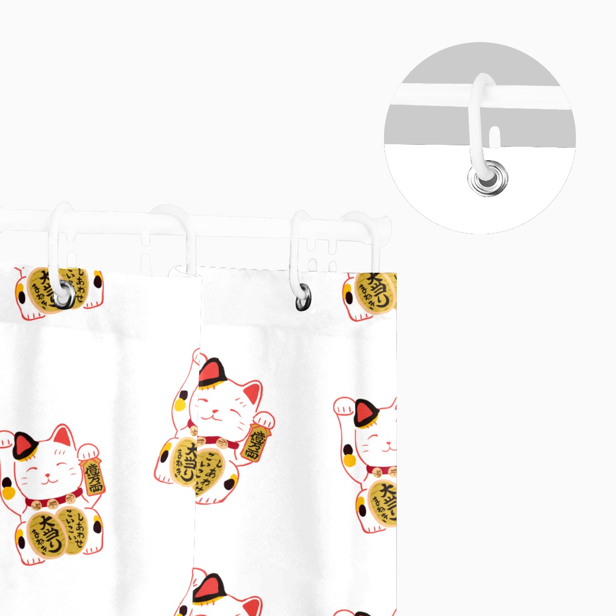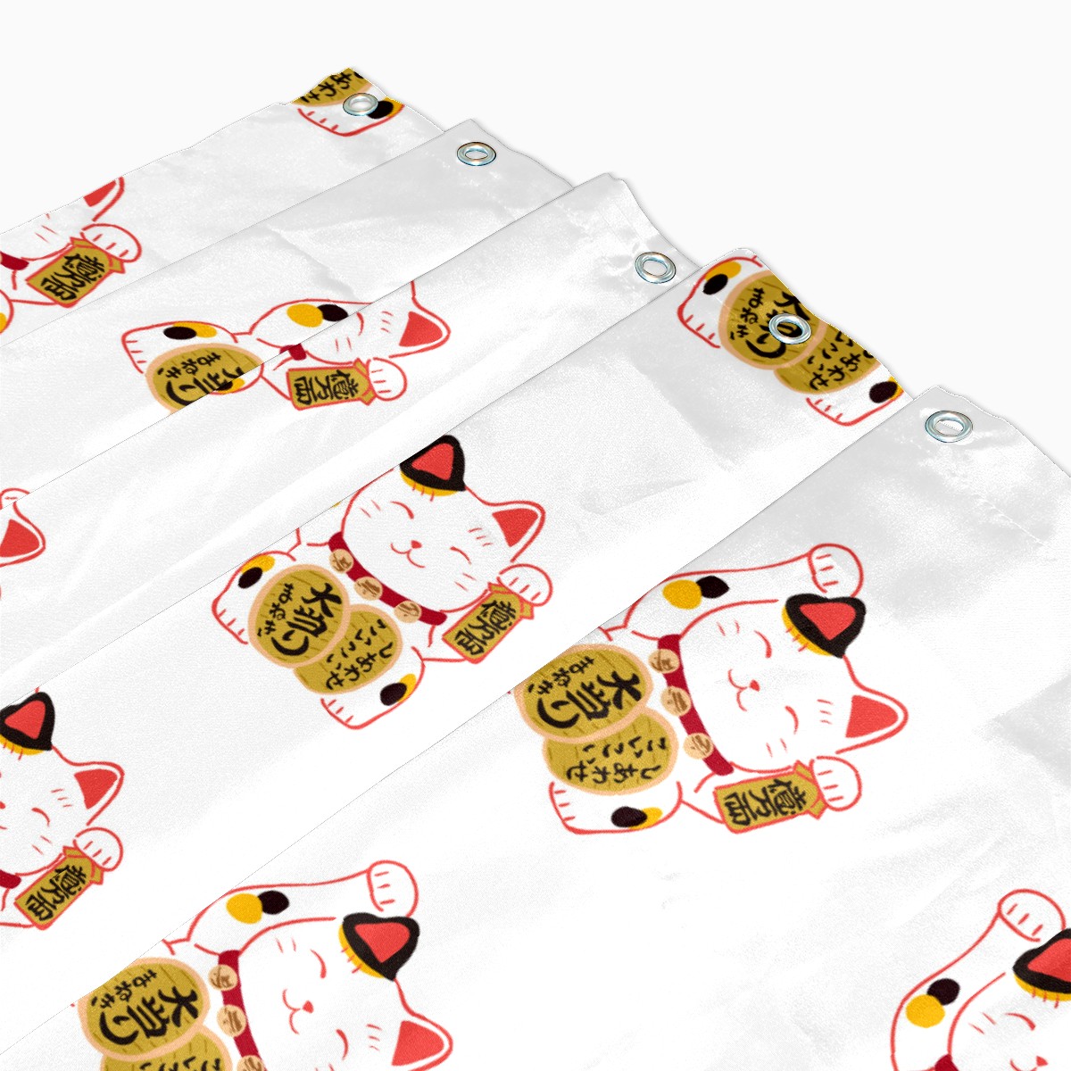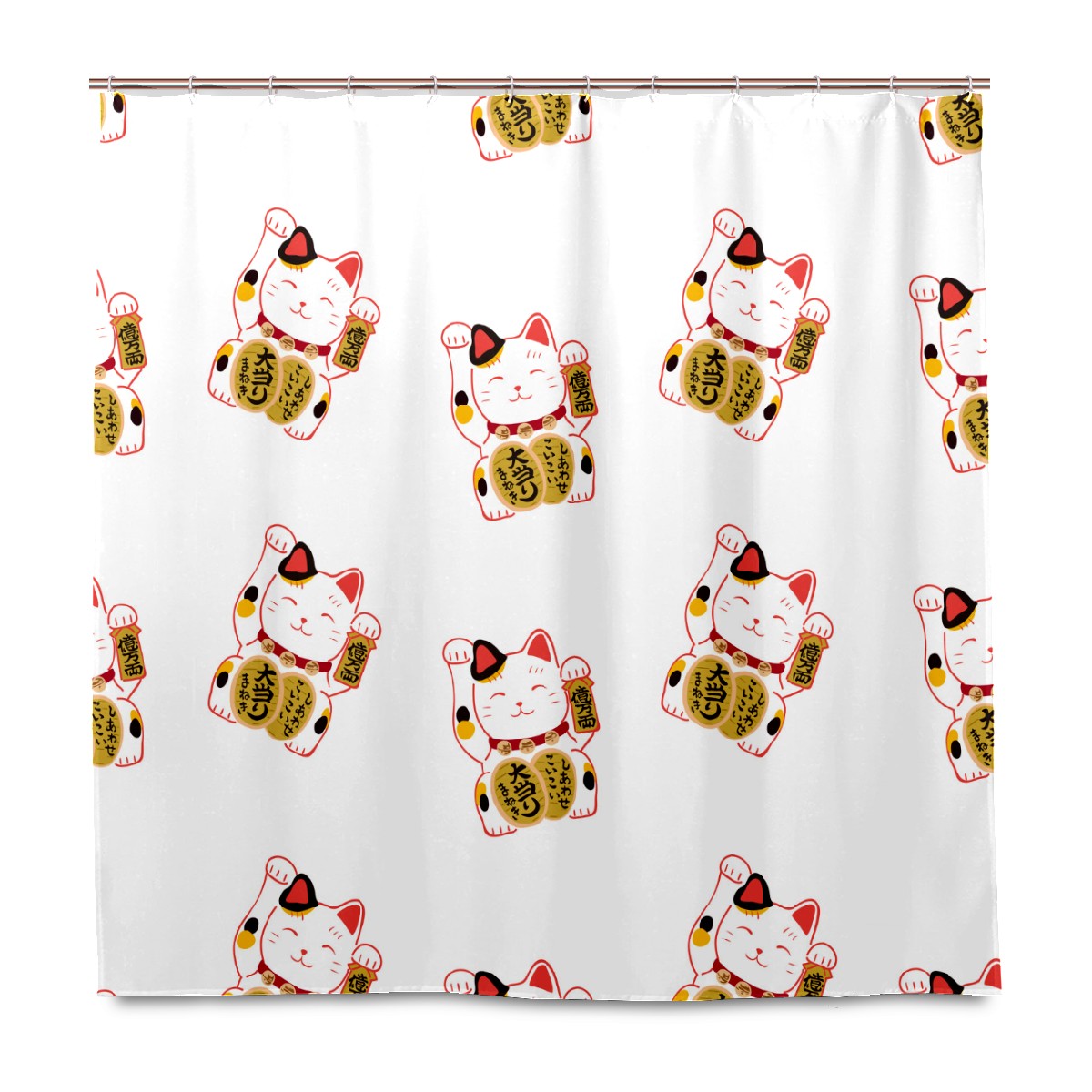 Shower Curtains for Bathroom Cartoon Japanese Lucky Cats Pattern Waterproof Polyester Fabric 60 x 72 inches Decor Bathroom Curtains for Girls Boys with 12 Hooks