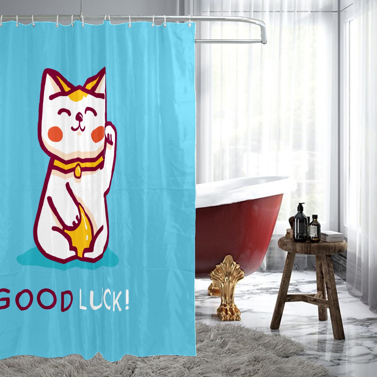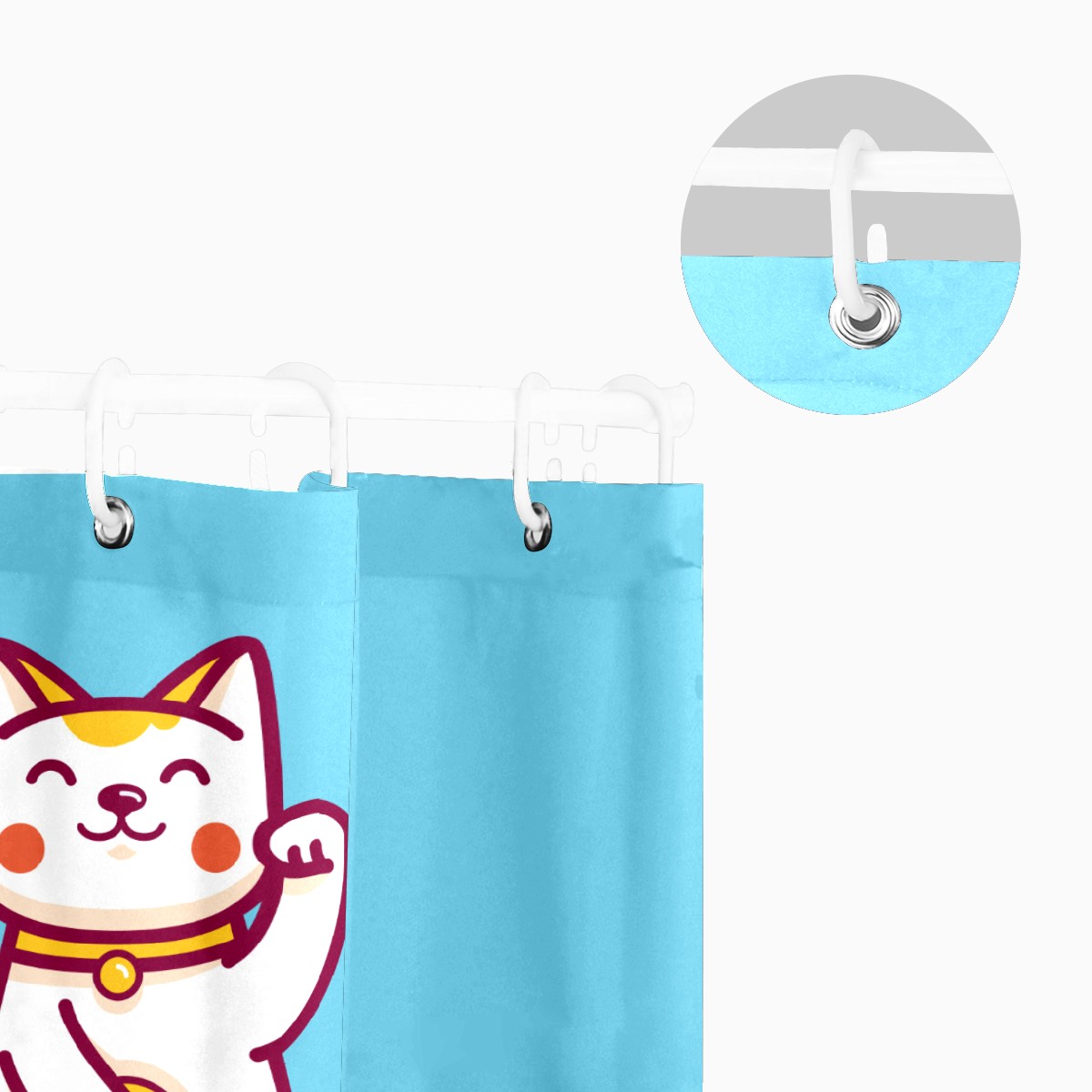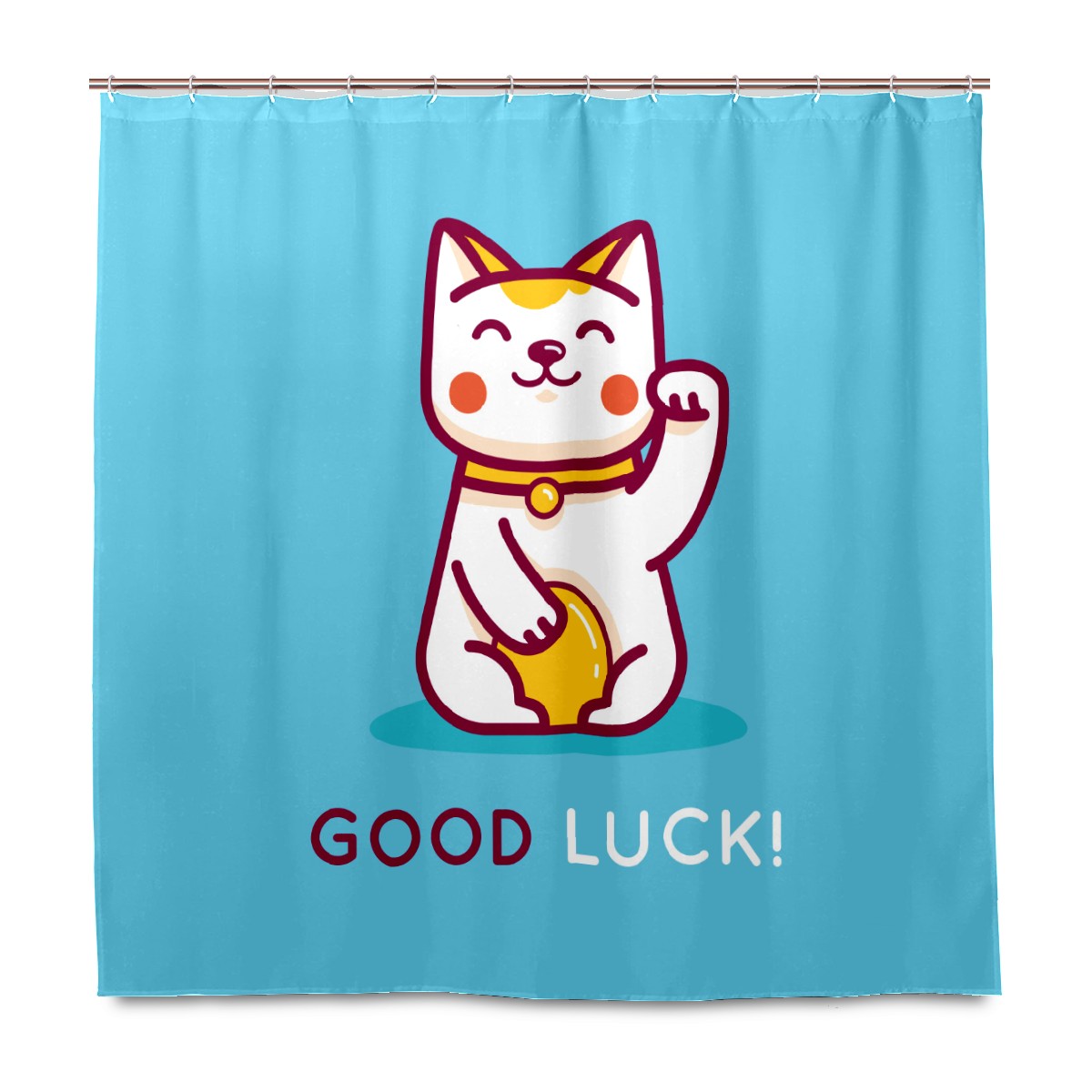 Shower Curtains for Bathroom Cute Cartoon Lucky Cat Waterproof Polyester Fabric 60 x 72 inches Decor Bathroom Curtains for Girls Boys with 12 Hooks