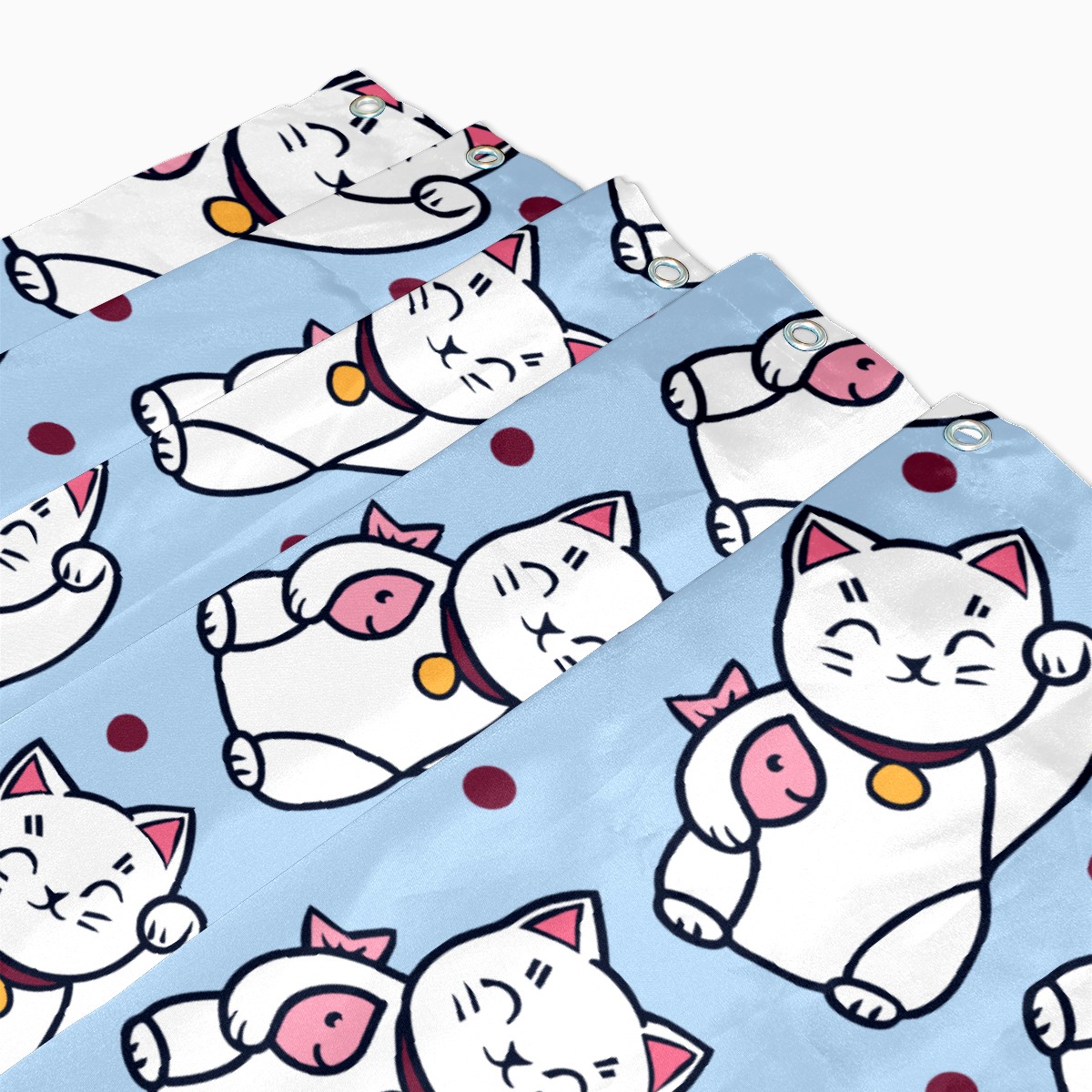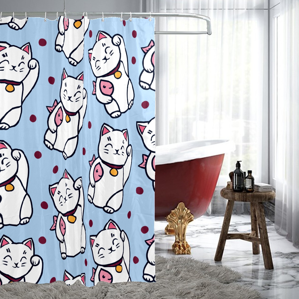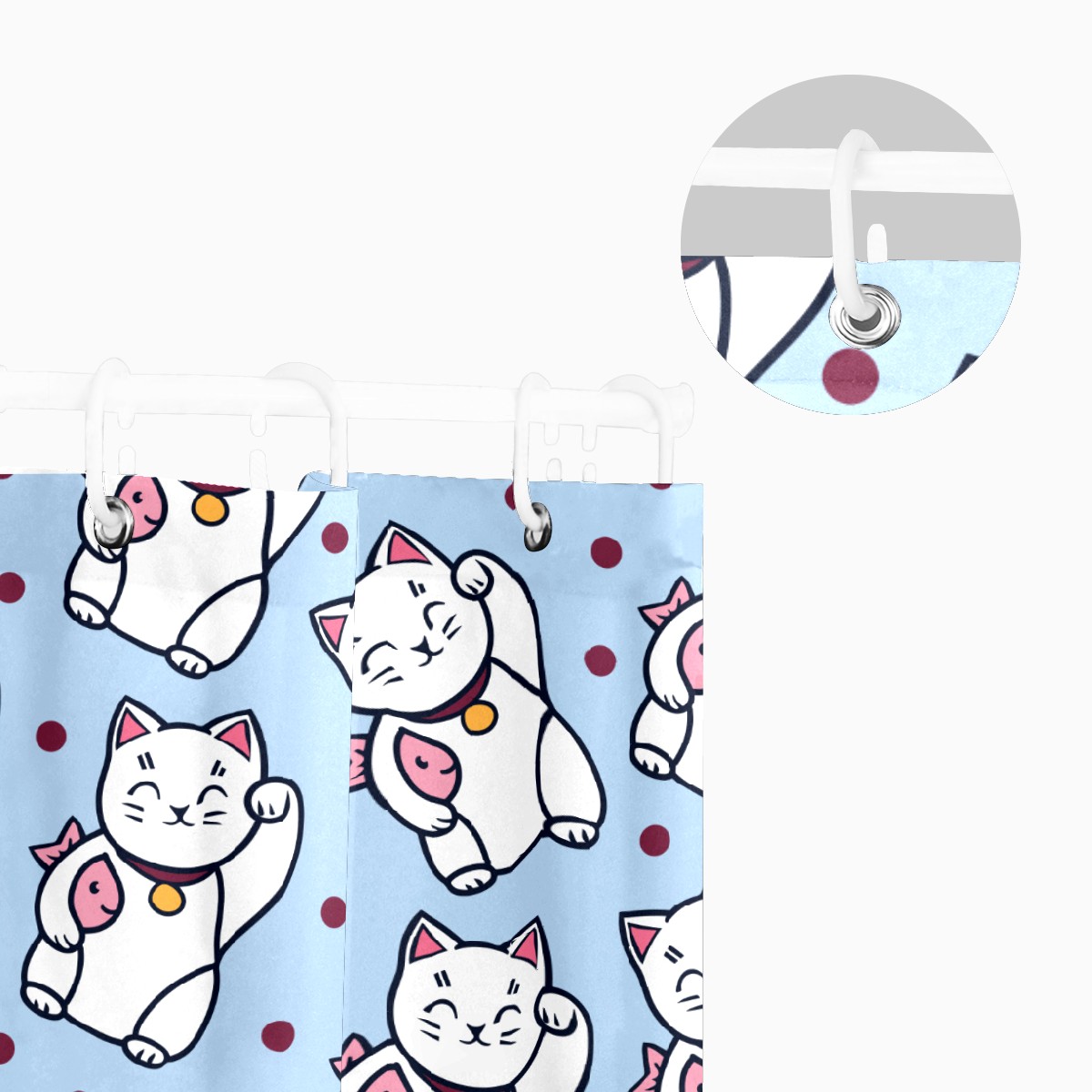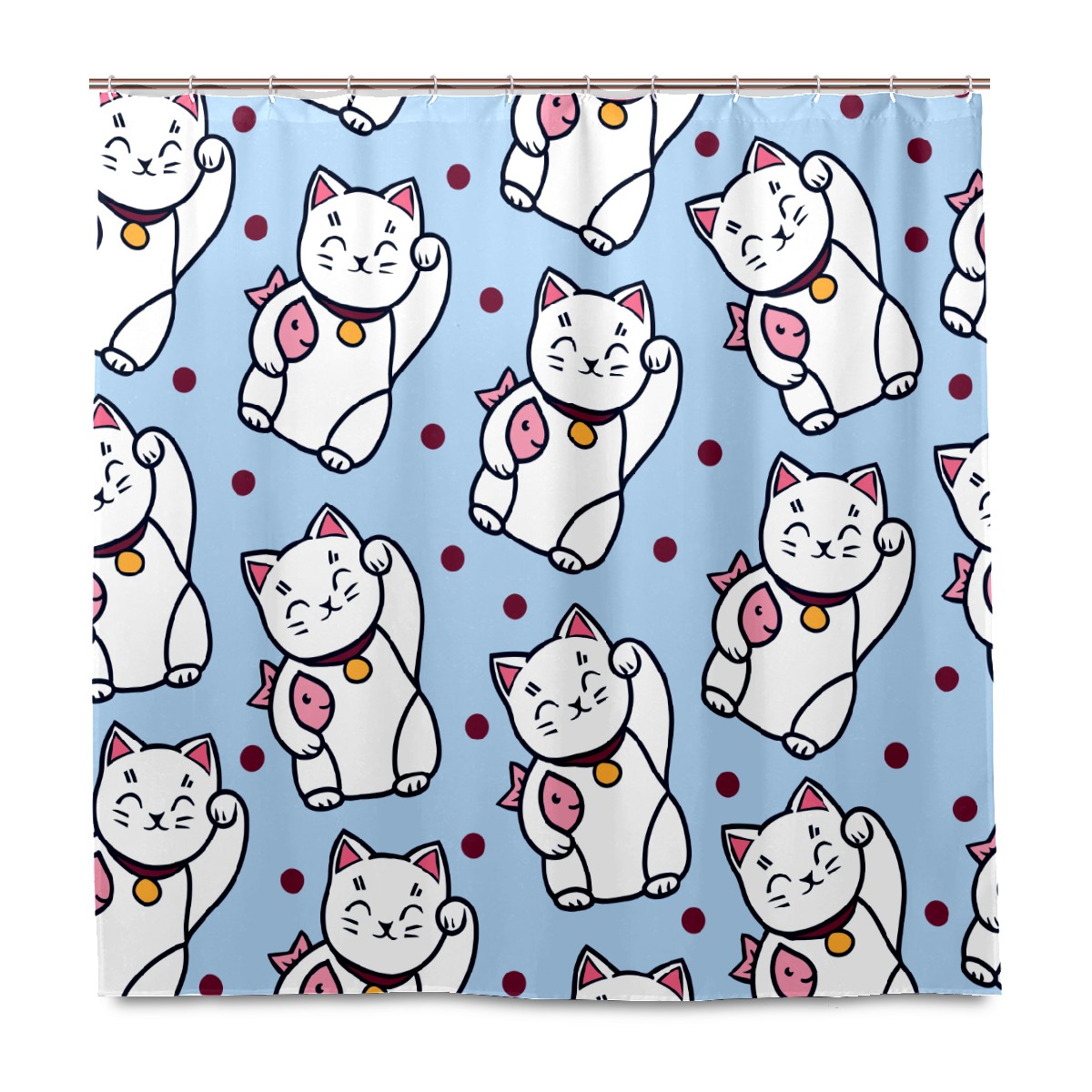 Shower Curtains for Bathroom Cartoon Japanese Lucky Cats Fish Pattern Waterproof Polyester Fabric 60 x 72 inches Decor Bathroom Curtains for Girls Boys with 12 Hooks
