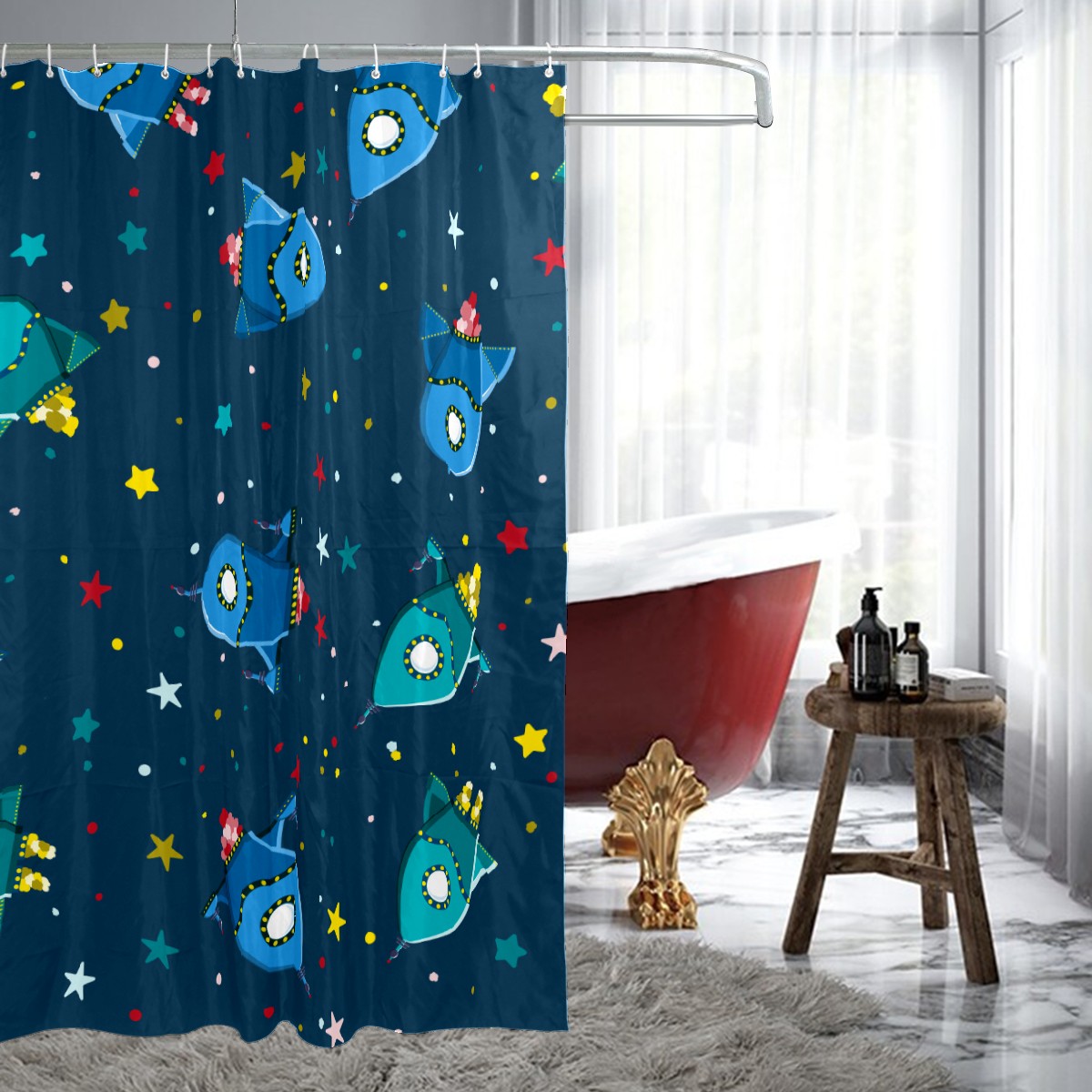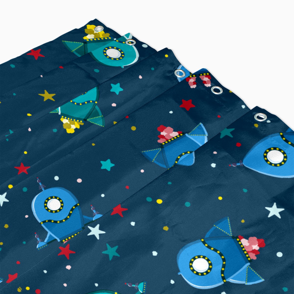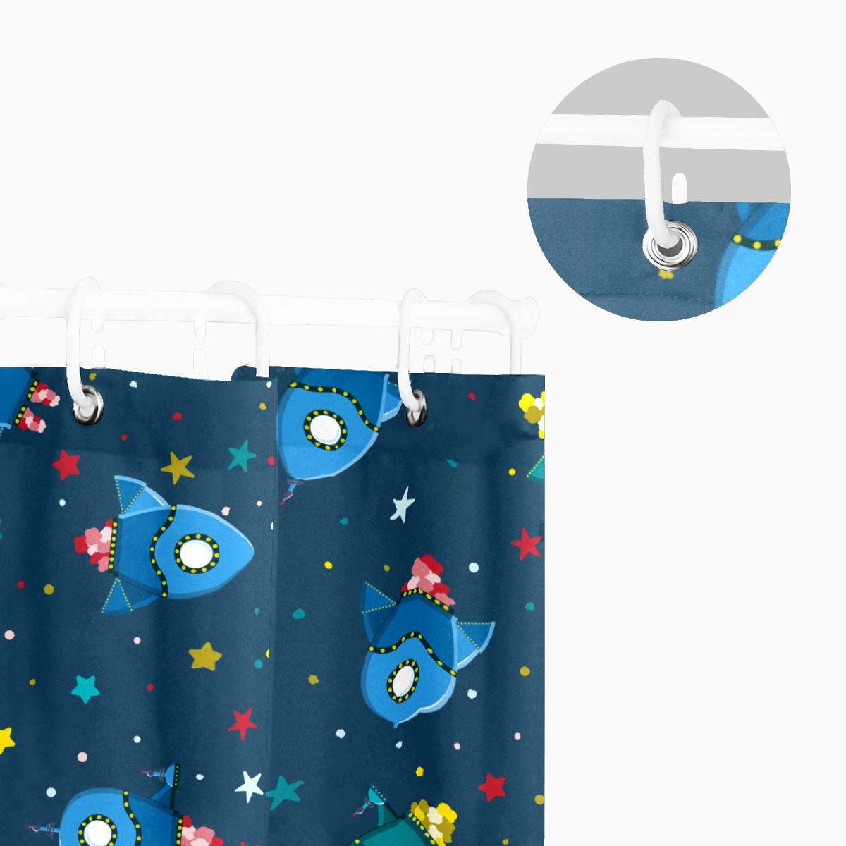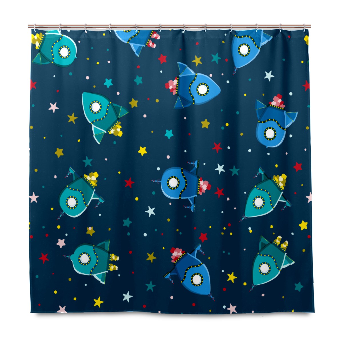 Shower Curtains for Bathroom Outer Spaceship Rockets Stars Pattern Waterproof Polyester Fabric 60 x 72 inches Decor Bathroom Curtains for Girls Boys with 12 Hooks