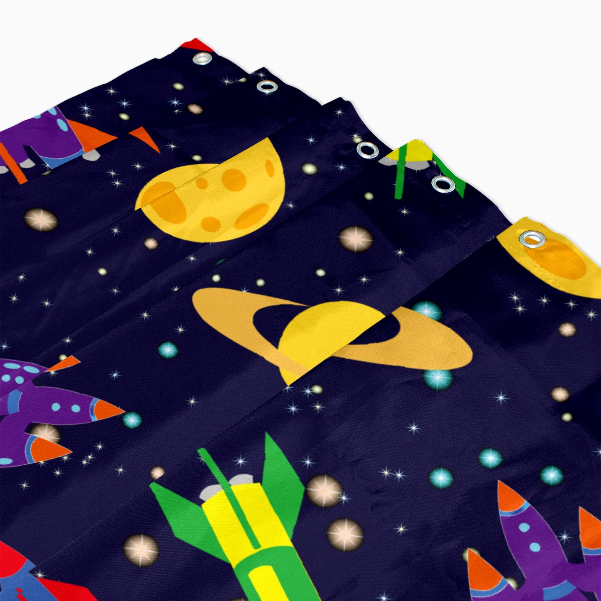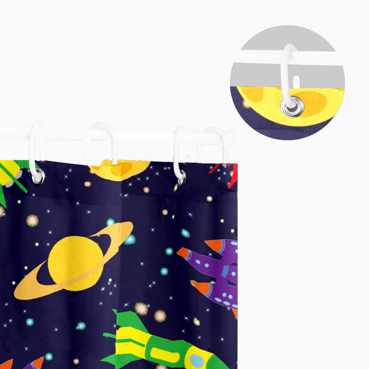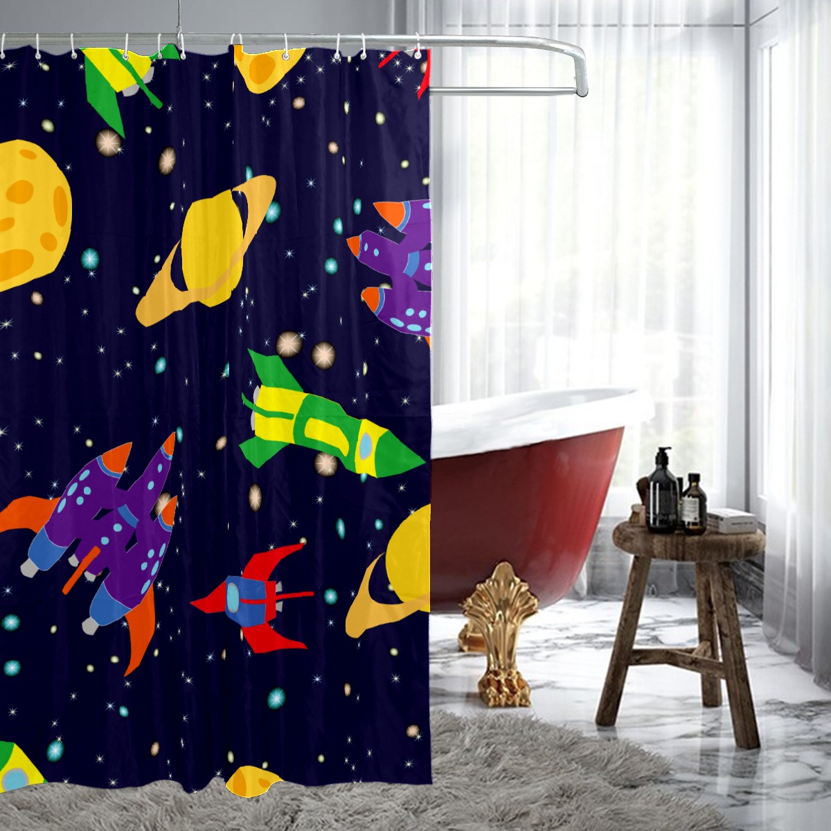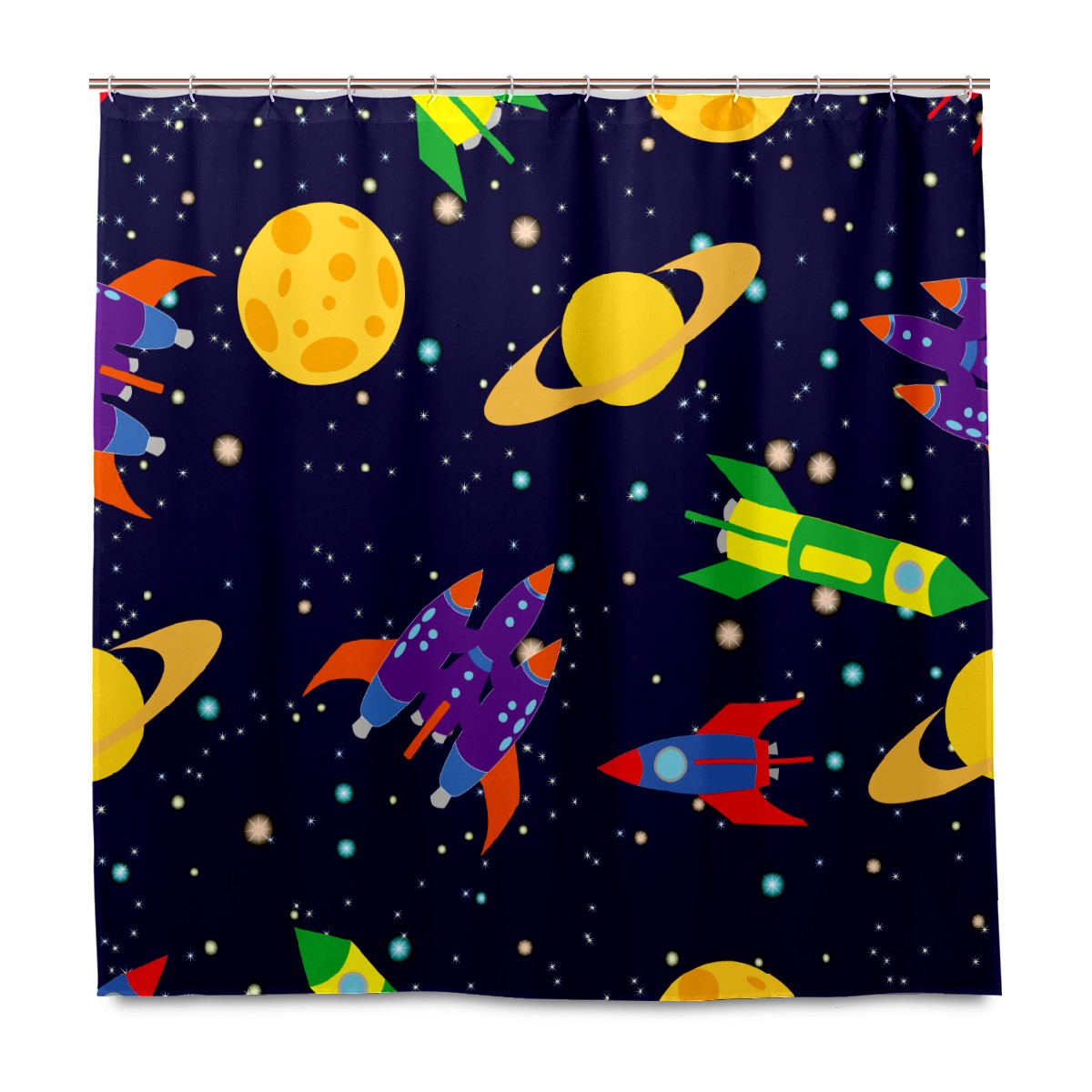 Shower Curtains for Bathroom Outer Space Rockets Planets Pattern Waterproof Polyester Fabric 60 x 72 inches Decor Bathroom Curtains for Girls Boys with 12 Hooks