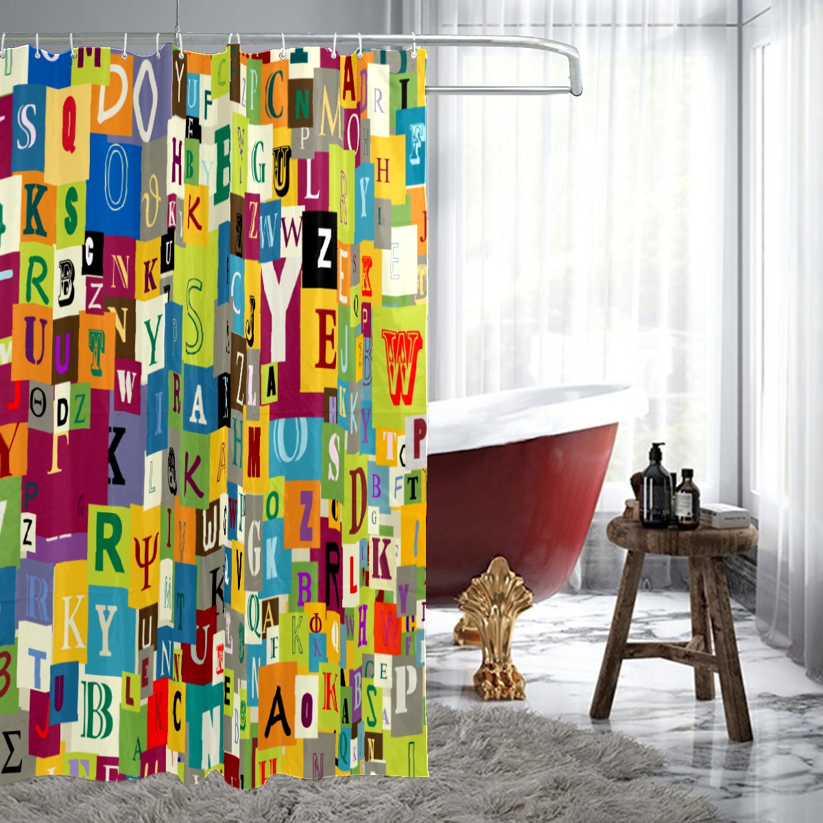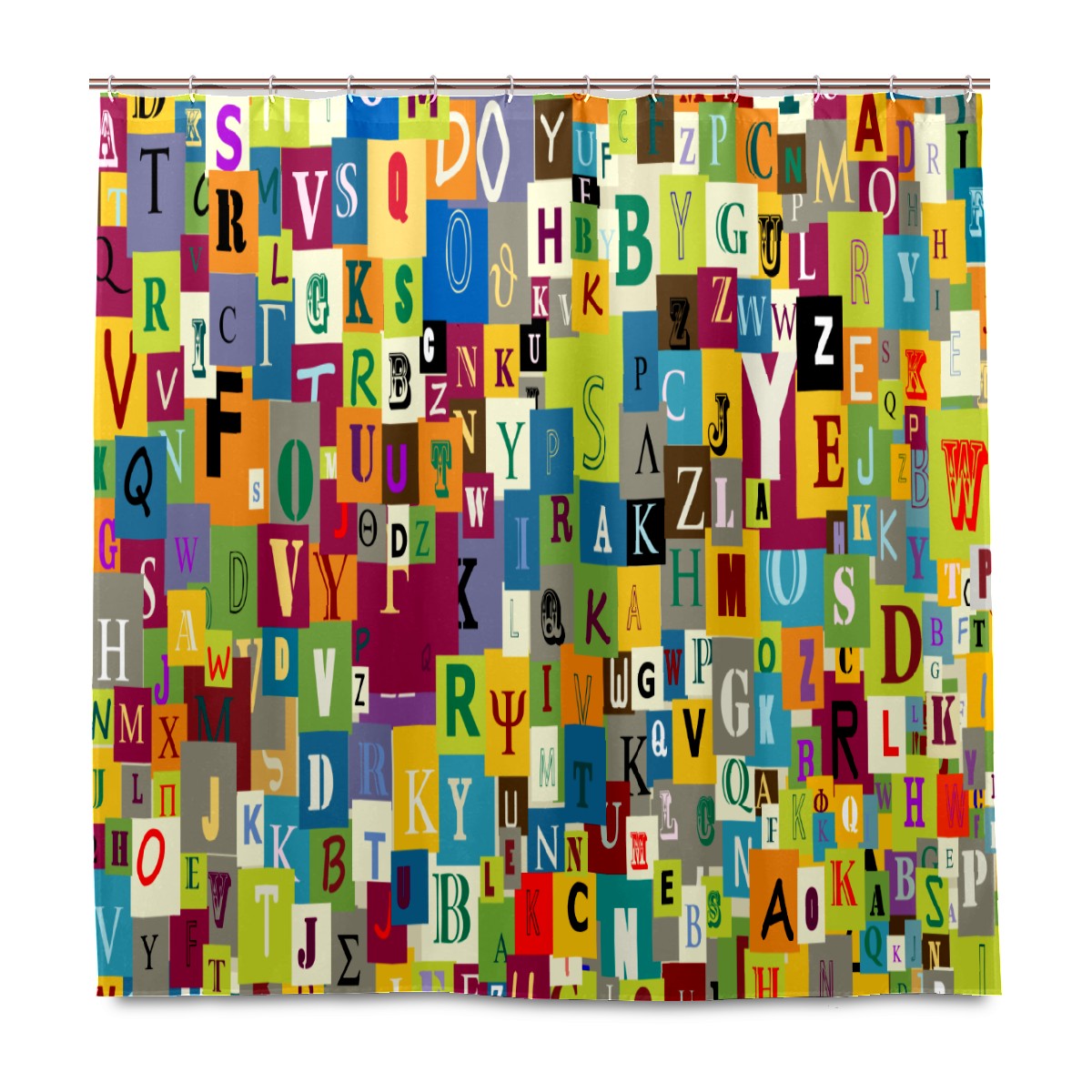 Shower Curtains for Bathroom Funny Cartooon Educational Alphabet Table Waterproof Polyester Fabric 60 x 72 inches Decor Bathroom Curtains for Girls Boys with 12 Hooks