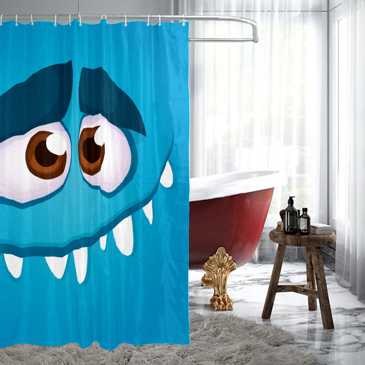 Shower Curtains for Bathroom Funny Cartoom Monster Blue Waterproof Polyester Fabric 60 x 72 inches Decor Bathroom Curtains for Girls Boys with 12 Hooks